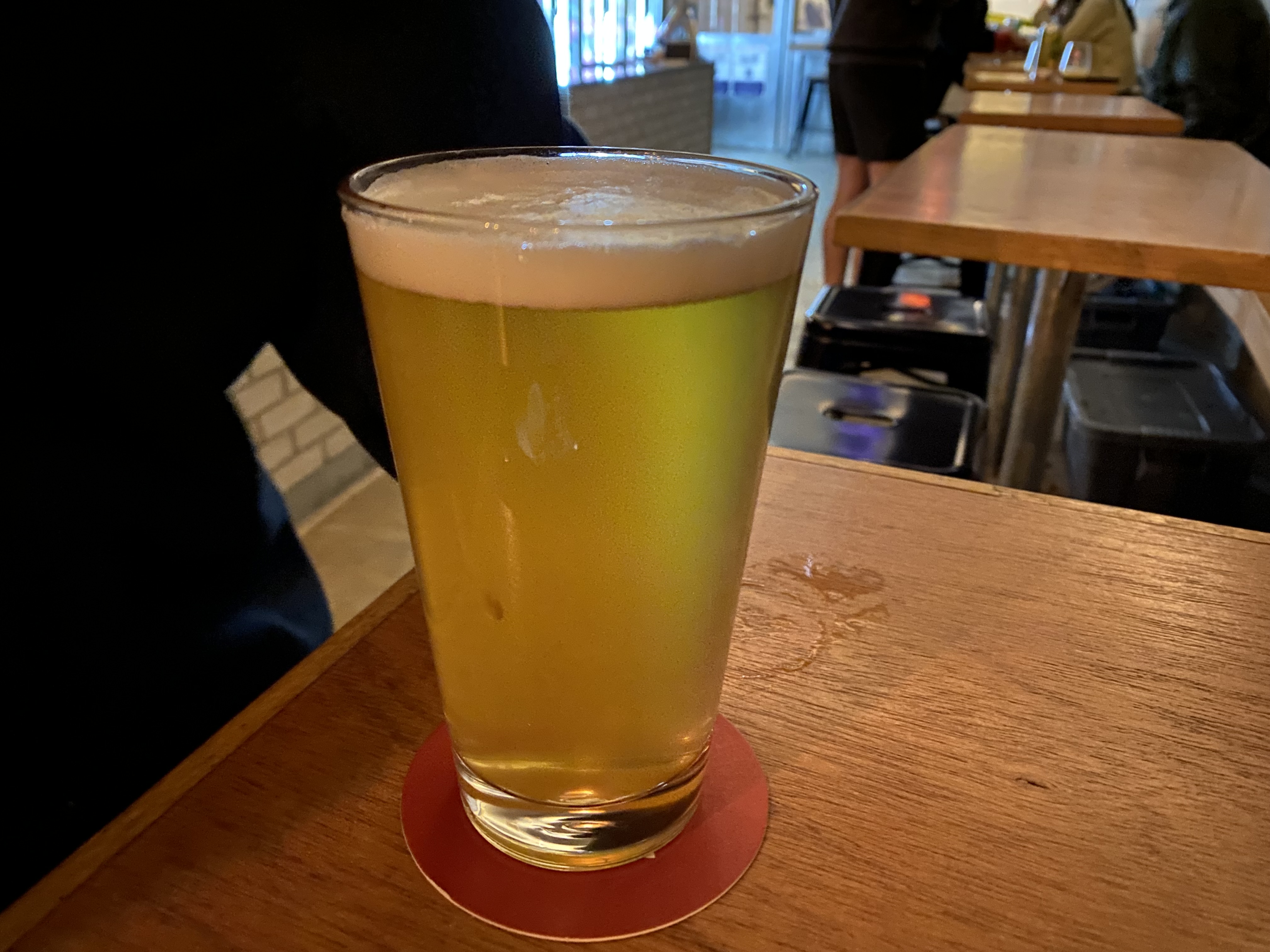 실내 매장 제일 안쪽에서 입구를 바라보며 찍은 사진입니다. 생맥주를 내리는 밸브가 여러 개 있는 것을 볼 수 있고 손님도 제법 많은 것을 볼 수 있습니다. 저 멀리 음료 냉장고가 있는데 여기에 다양한 캔맥주가 있습니다.