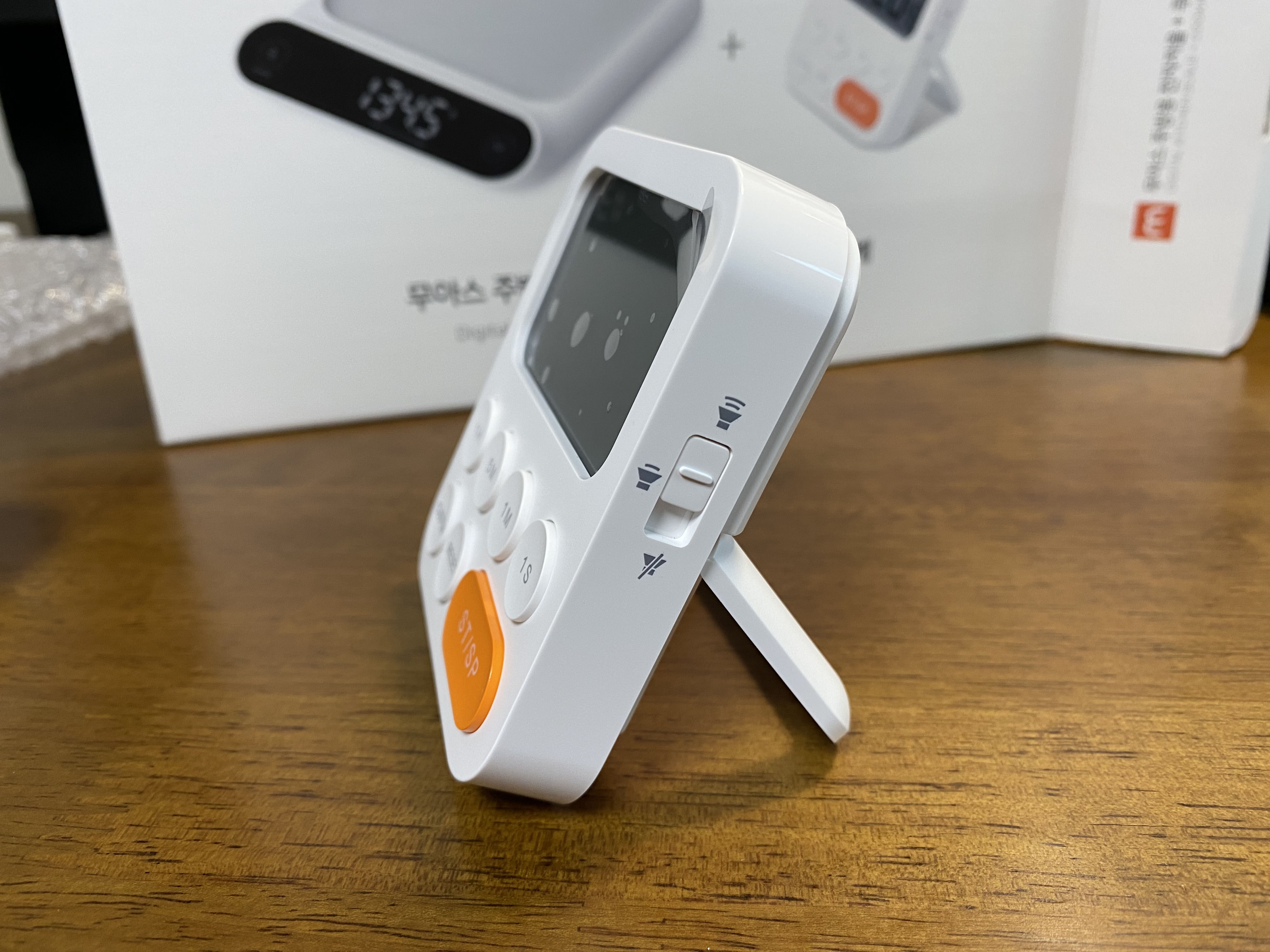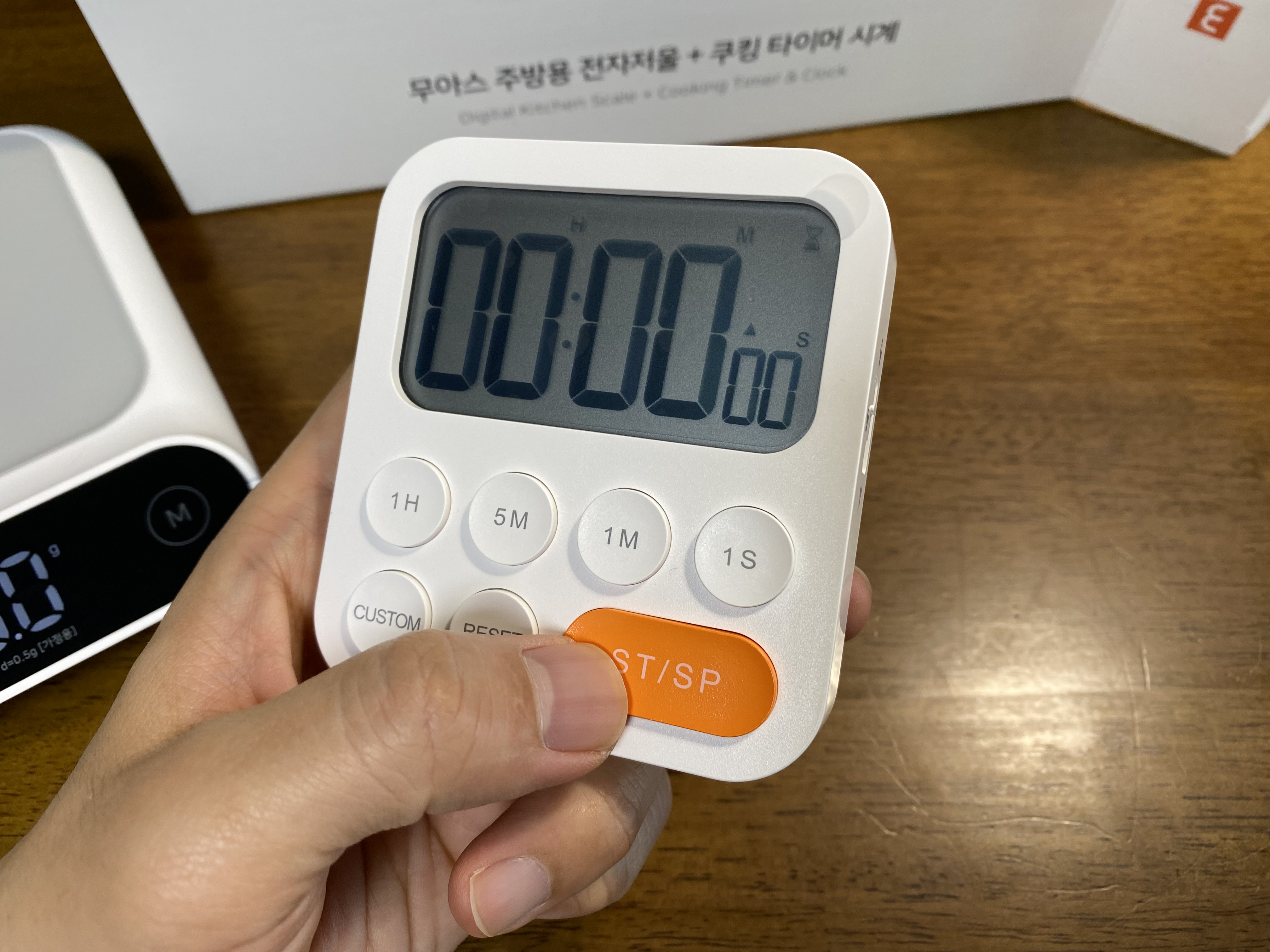 이건 무아스 원클릭 쿠킹 타이머 시계입니다. 이름에서도 알 수 있듯 시계 기능과 타이머 기능을 쉽게 사용할 수 있게 만들어진 제품입니다. 단 알람 기능은 없습니다.