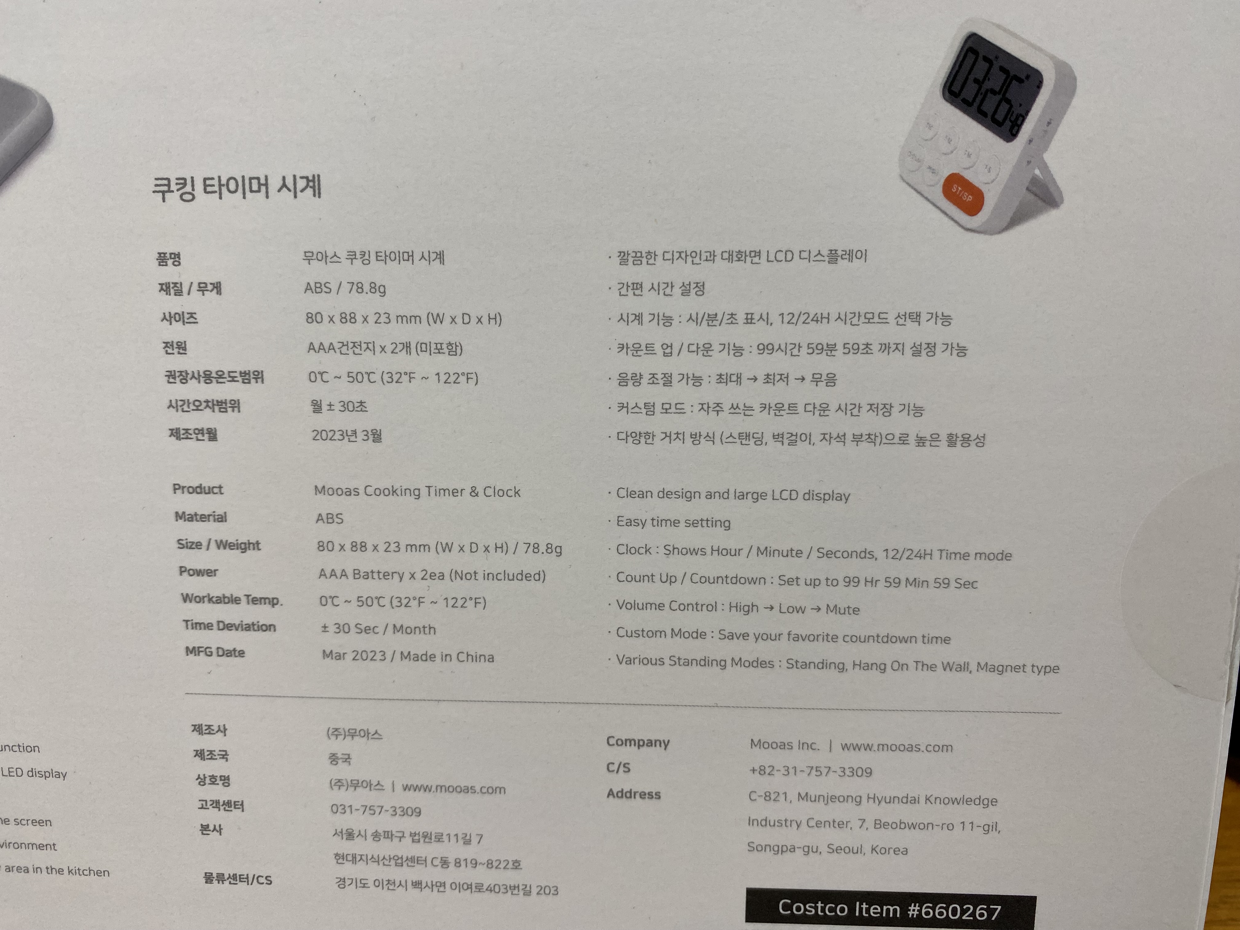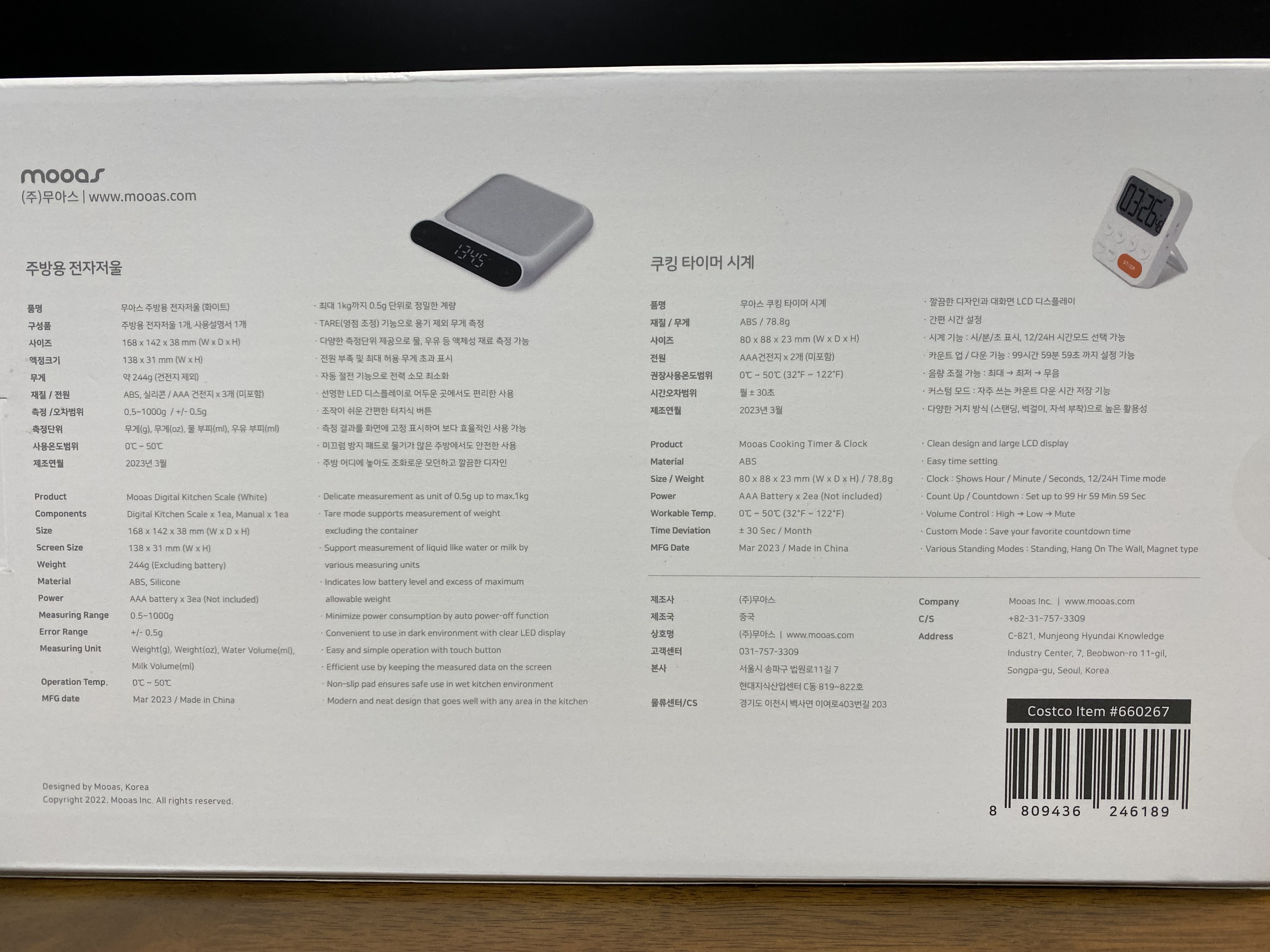 코스트코 무아스 주방용 전자저울 + 쿠킹 타이머 시계를 개봉한 모습입니다.