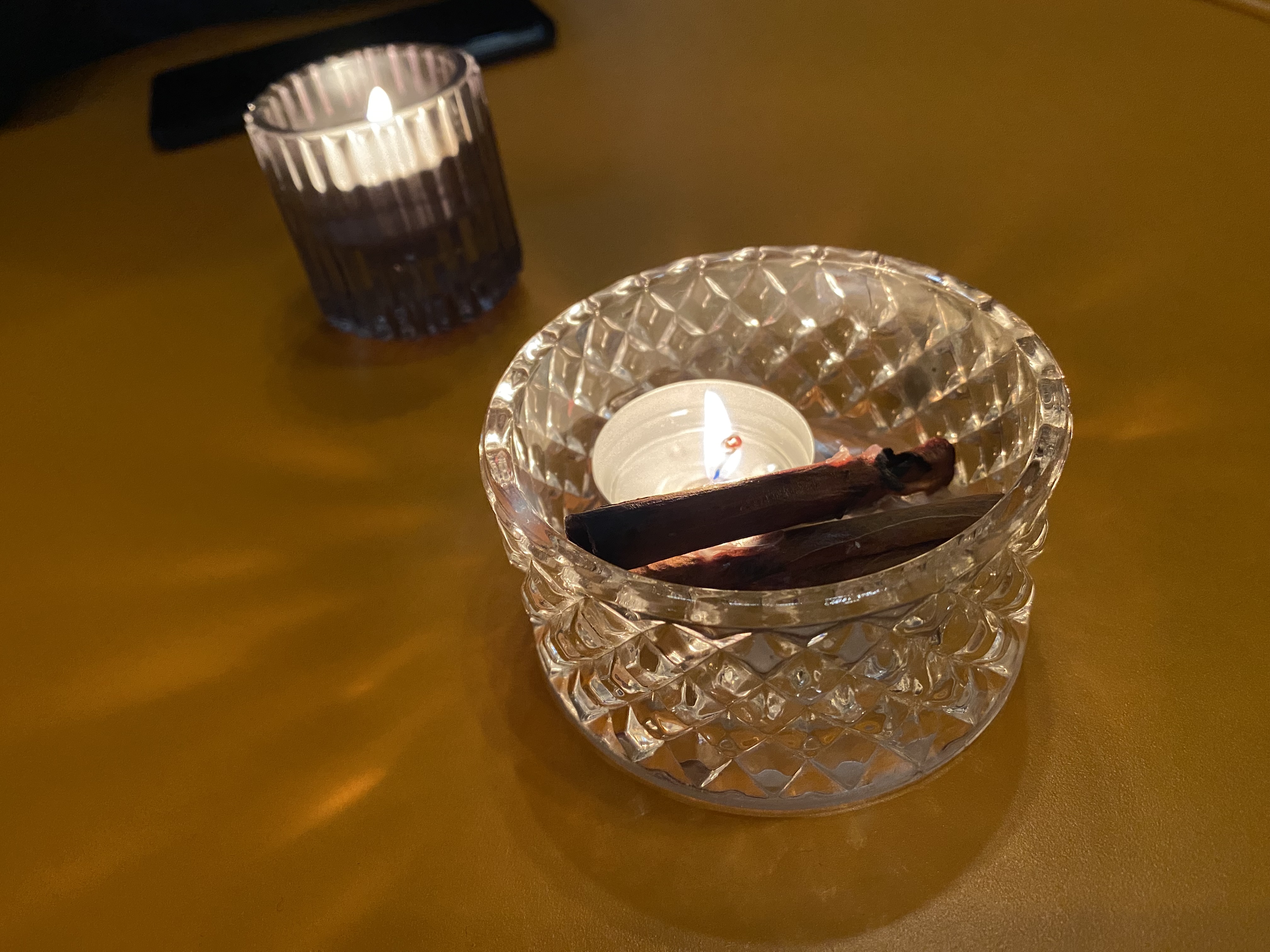테이블 위에는 작은 초와 시나몬(계피) 스틱이 놓여있습니다.