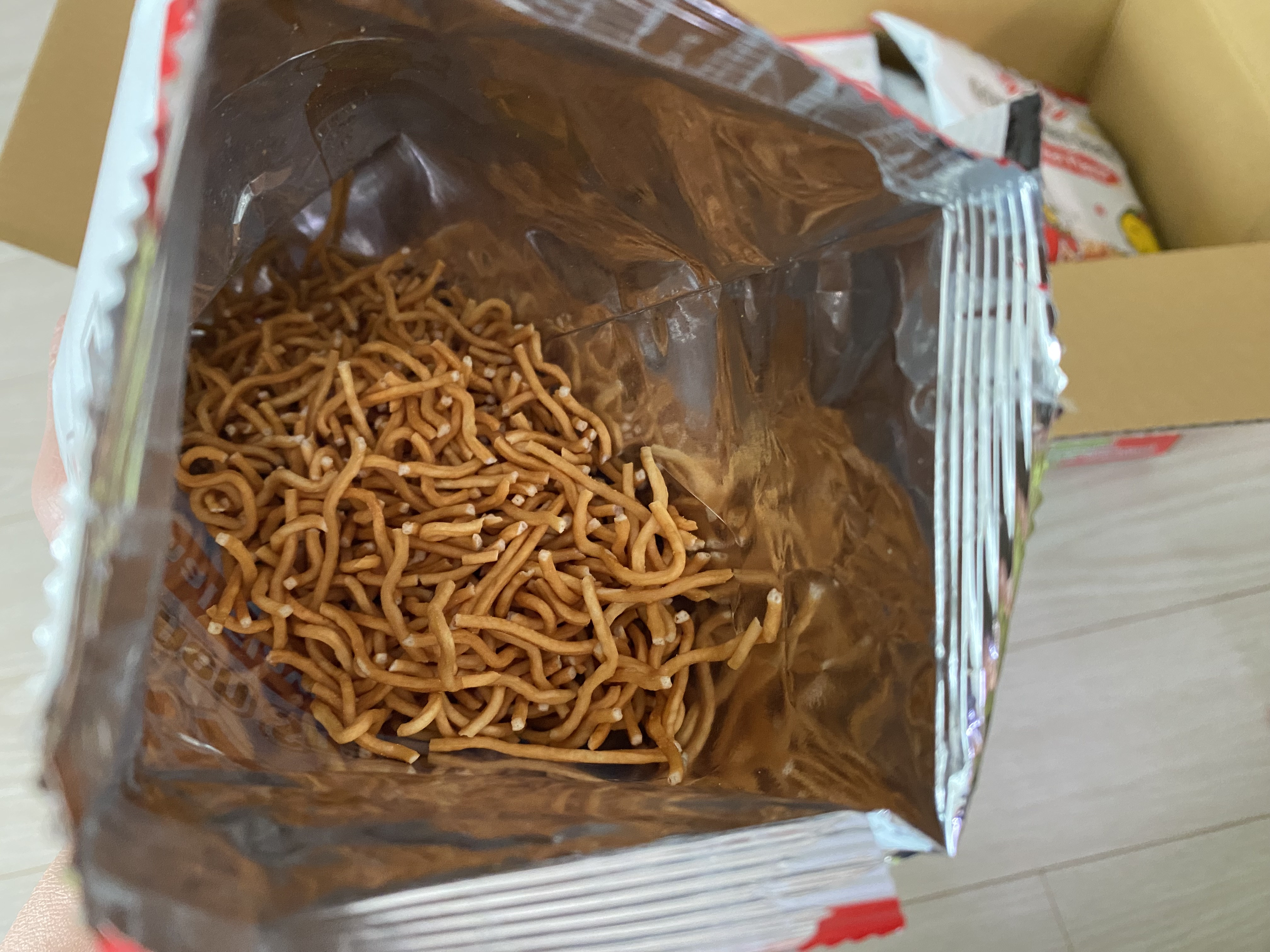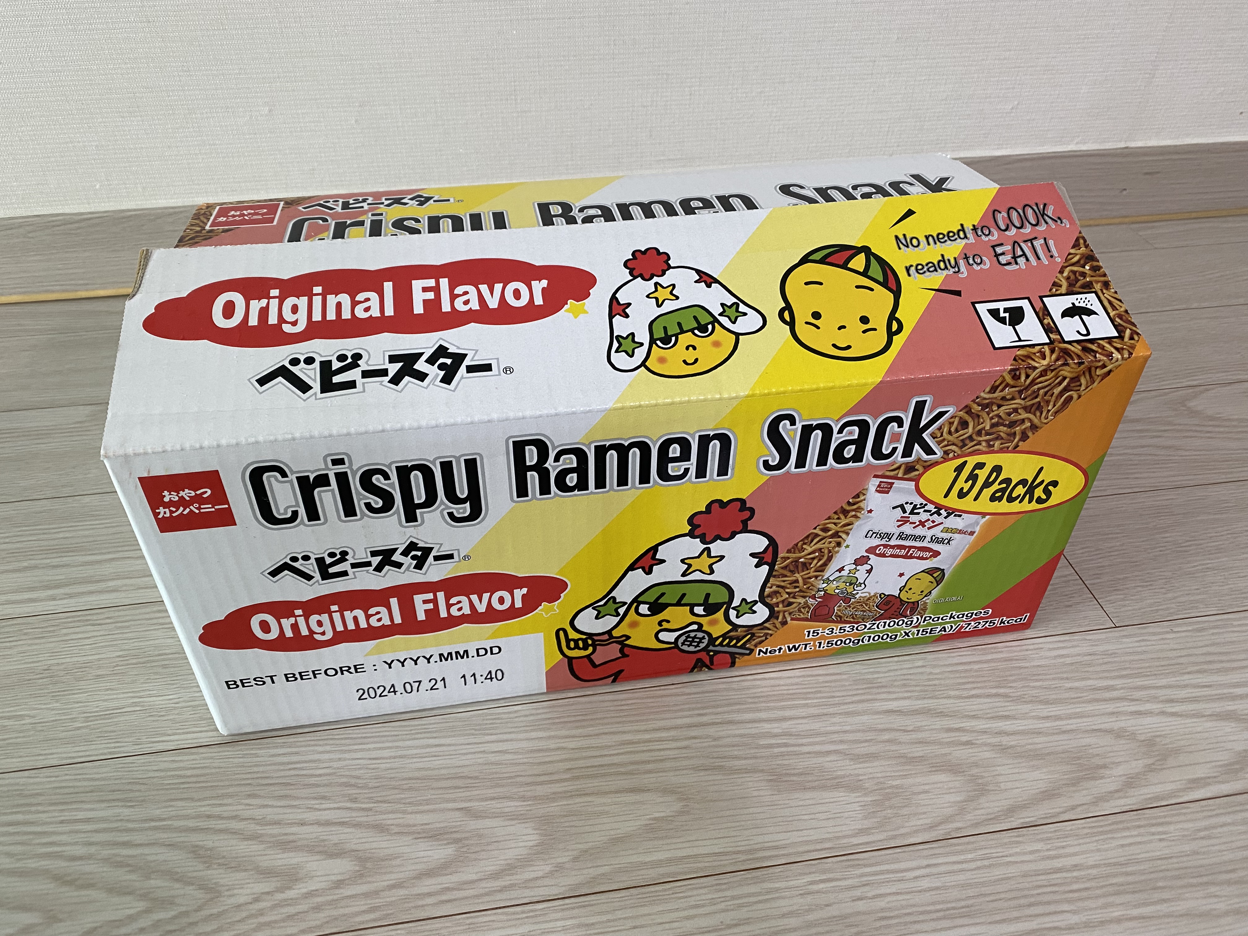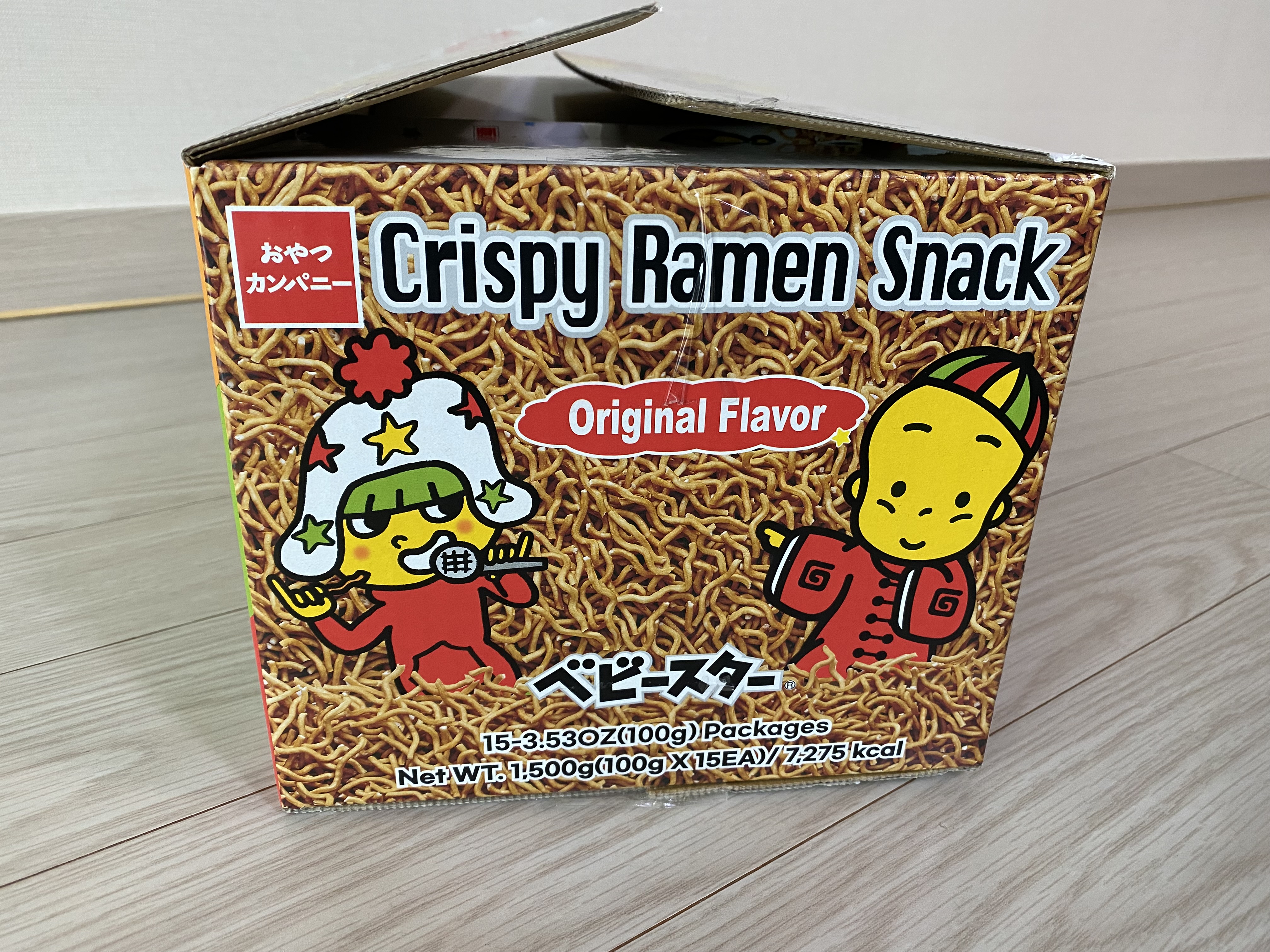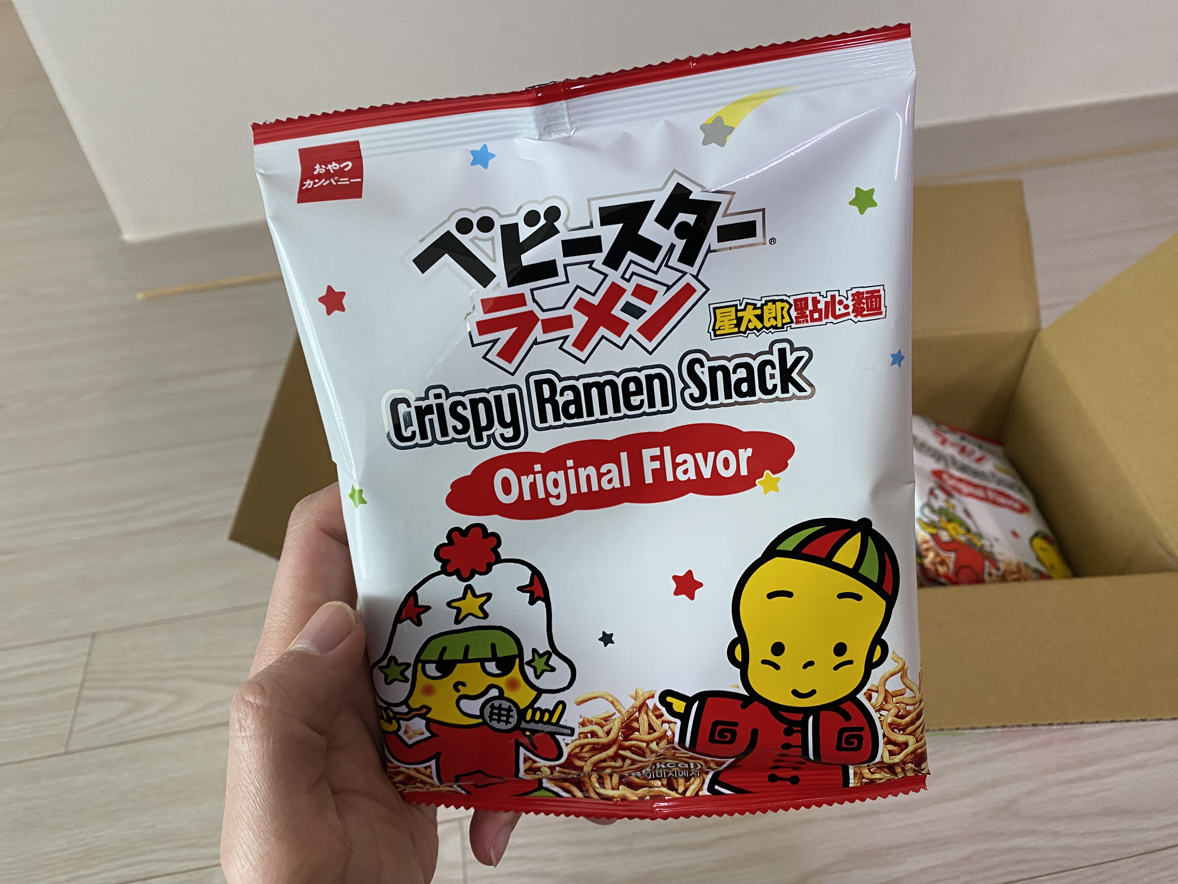 오야츠 베이비스타 라면 스낵을 개봉한 모습.