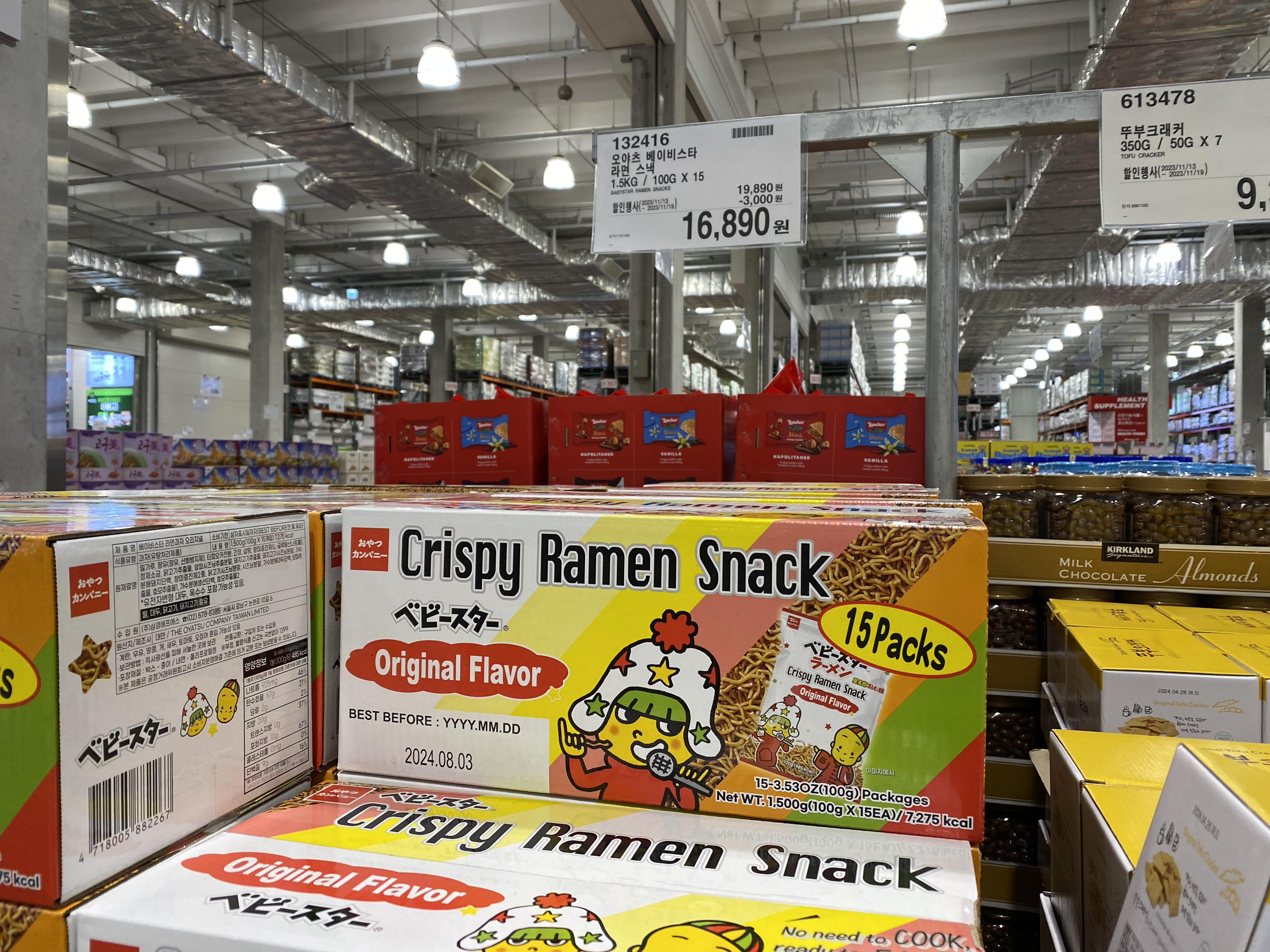 코스트코를 돌다가 할인하고 있는 과자가 있어 한번 사봤습니다. '오야츠 베이비스타 라면 스낵'인데 할인해서 16,890원입니다. 그 옆에 '뚜부크래커'도 있는데 이것도 같이 카트에 담았습니다 뚜부크래커는 예전부터 자주 사던 거라 믿고 샀지만 이 오야츠 베이비스타 라면 스낵은 과면 맛이 어떨지...