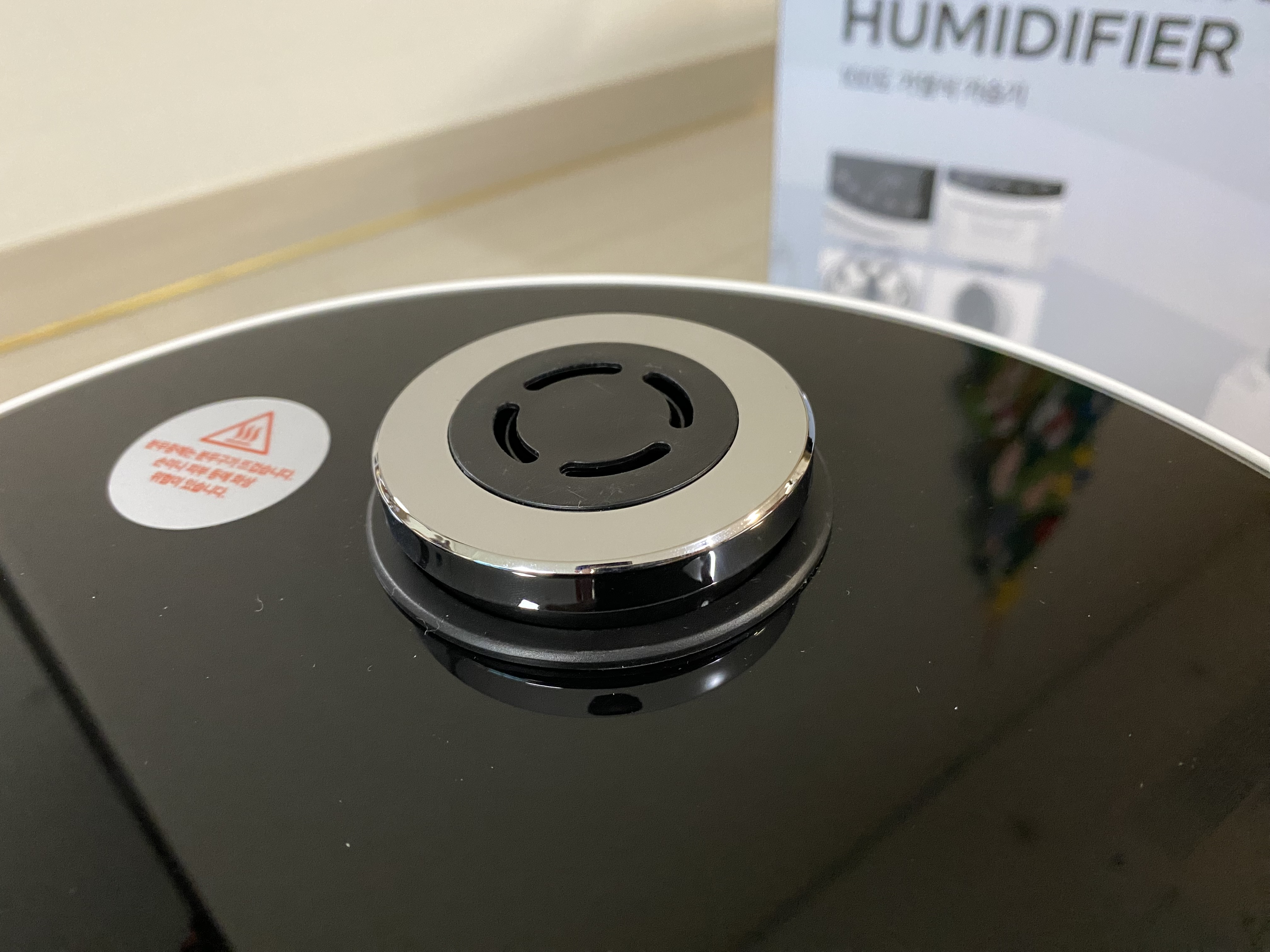 디자인은 심플해서 마음에 드는데 아주 고급스럽진 않습니다. 위쪽에는 정보를 표시해 주는 LED와 잠금, 분무량 조절, 전원, 습도조절, 타이머 버튼이 있습니다.
