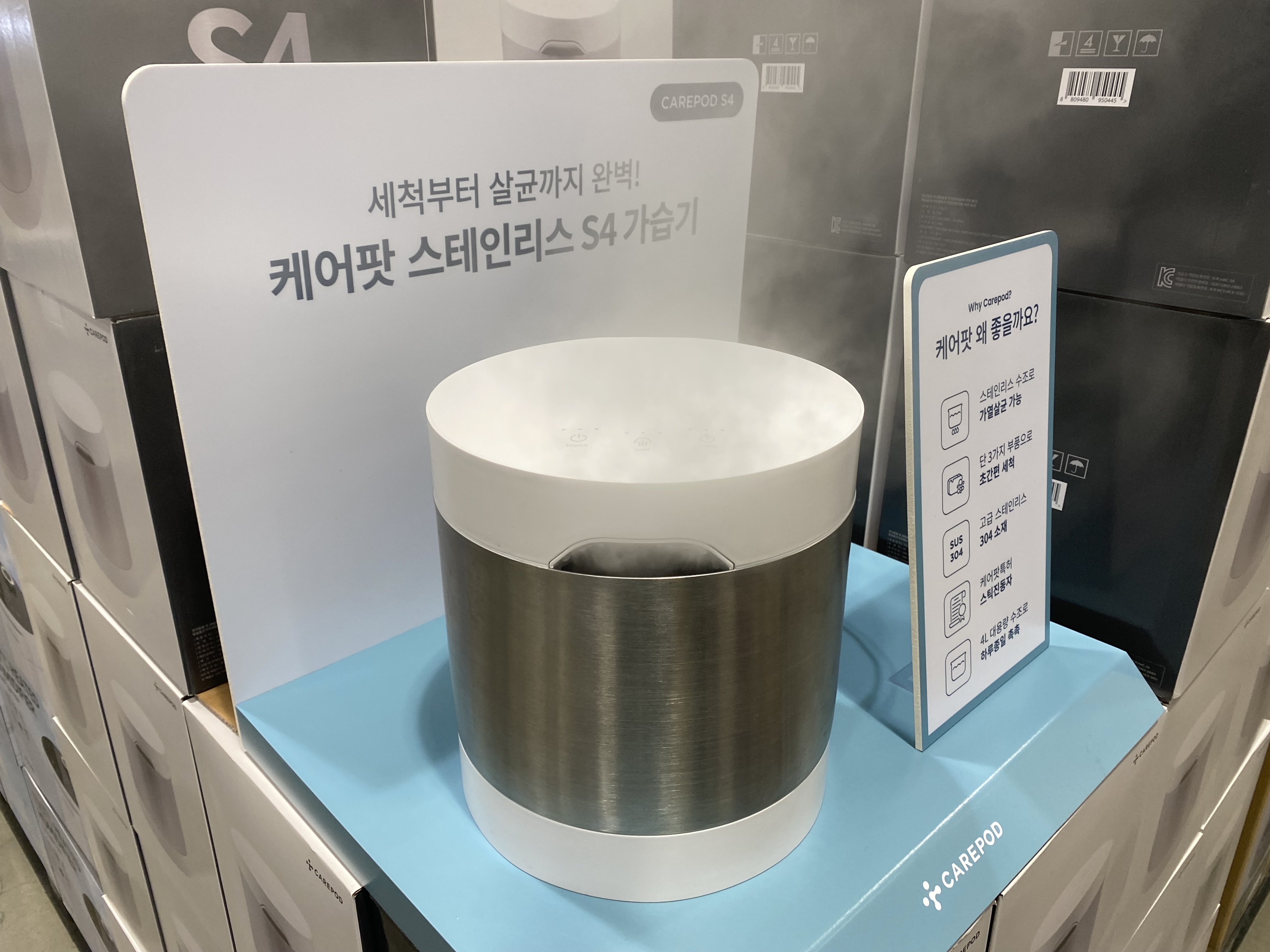 이번에 코스트코에 갔을 때 가습기가 눈에 확 들어오네요. 처음에 본 제품은 케어팟 스테인리스 S4 가습기. 처음에는 밥솥처럼 생겨서 가열식 가습기인 줄 알았는데 알고 보니 초음파식이었네요.
