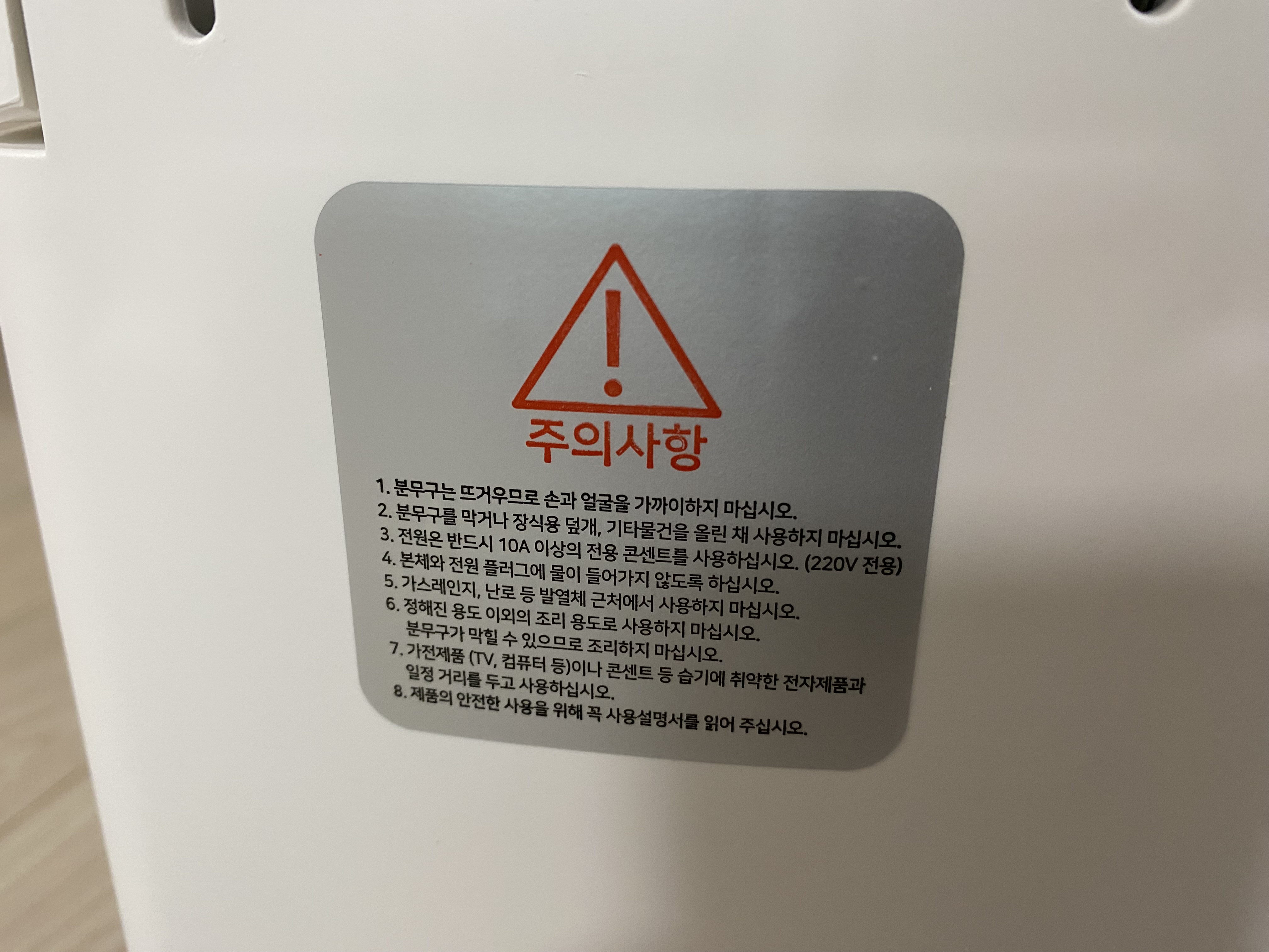 FROMB 프롬비 가열식 가습기 4L는 나름 전기를 많이 먹는 뜨거운 열을 발생시키는 제품이기 때문에 사용하기 전에 설명서를 꼼꼼하게 읽어볼 필요가 있습니다.