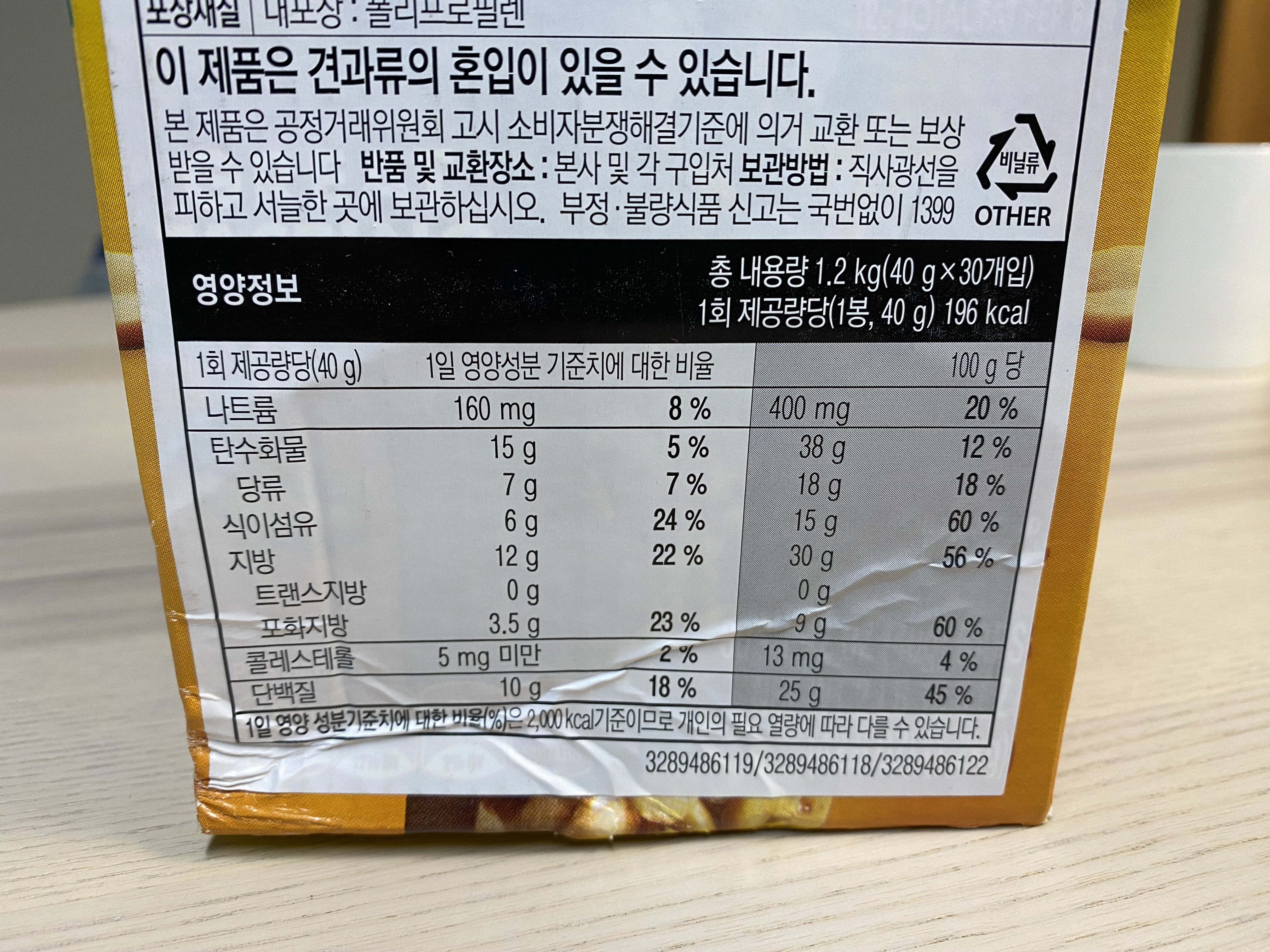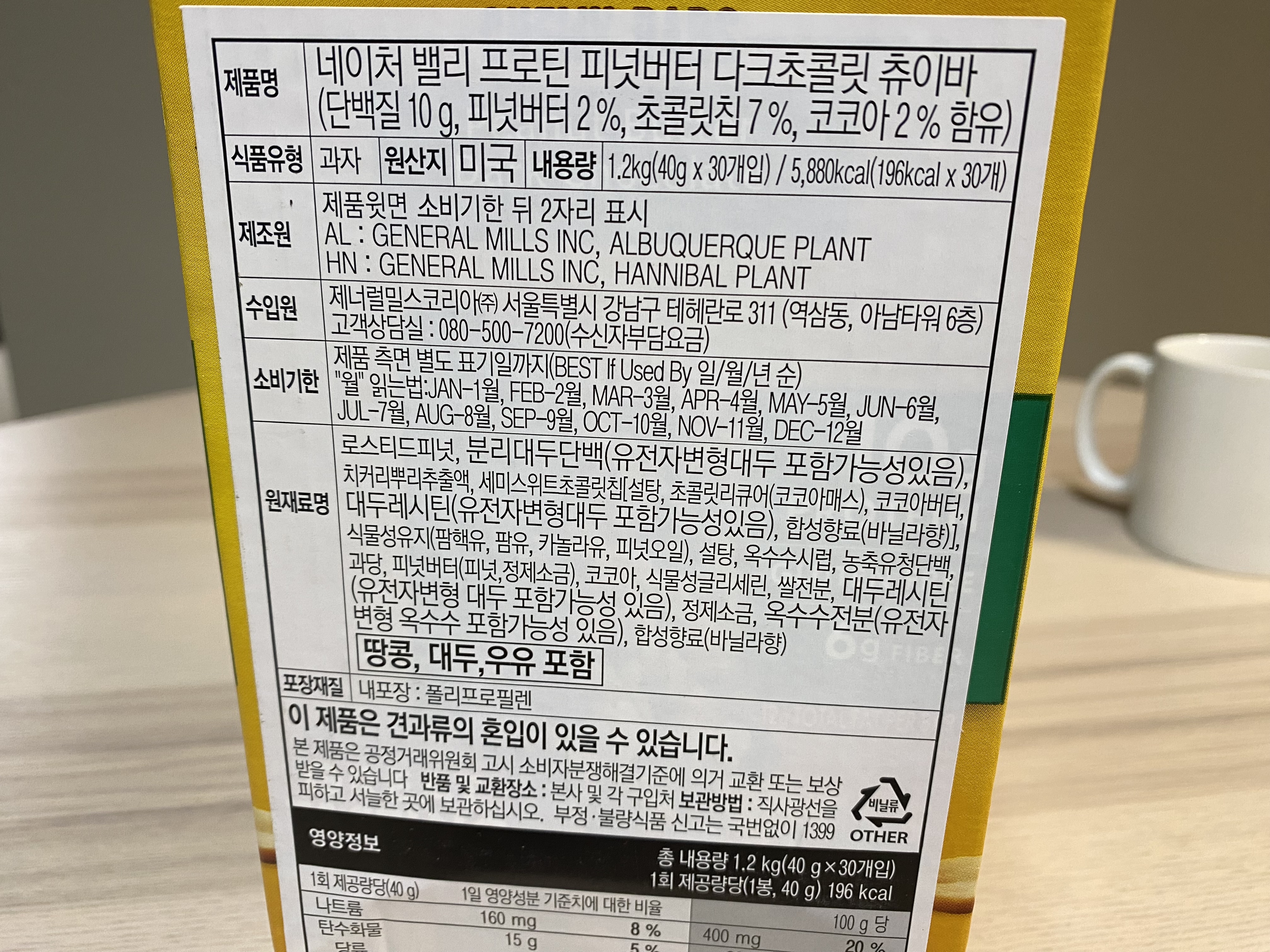 NATURE VALLEY 프로틴 바의 칼로리를 보니 190kcal로 공깃밥(250kcal)보다 칼로리가 적은 것을 볼 수 있네요. 확실히 이것만 먹는다면 다이어트가 될 것 같습니다. 하지만 저는 운동하고 나서 간식으로 먹을 거라...