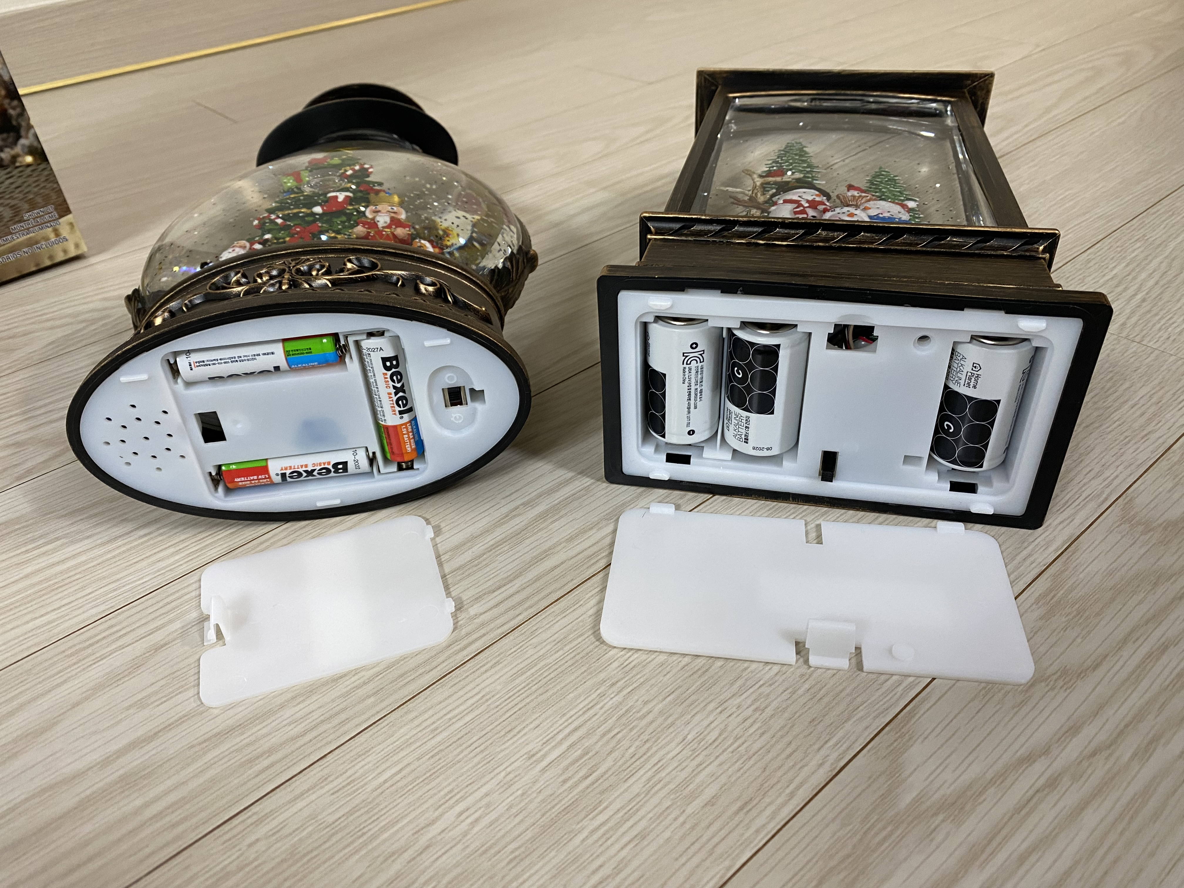 홀리데이 랜턴 라운드형은 AA 건전지가 들어가고 스퀘어형은 C 건전지가 들어갑니다. 제품 바닥의 구조상 그렇게 만들어진 것 같습니다. 아무래도 좀 더 큰 건전지가 들어가는 스퀘어형이 배터리가 오래갈 것 같은 느낌이 듭니다. 근데 집에 C 배터리가 있는 사람은 드물기 때문에 선물로 줄 거면 AA 배터리가 들어가는 라운드형이 괜찮을 것 같습니다.