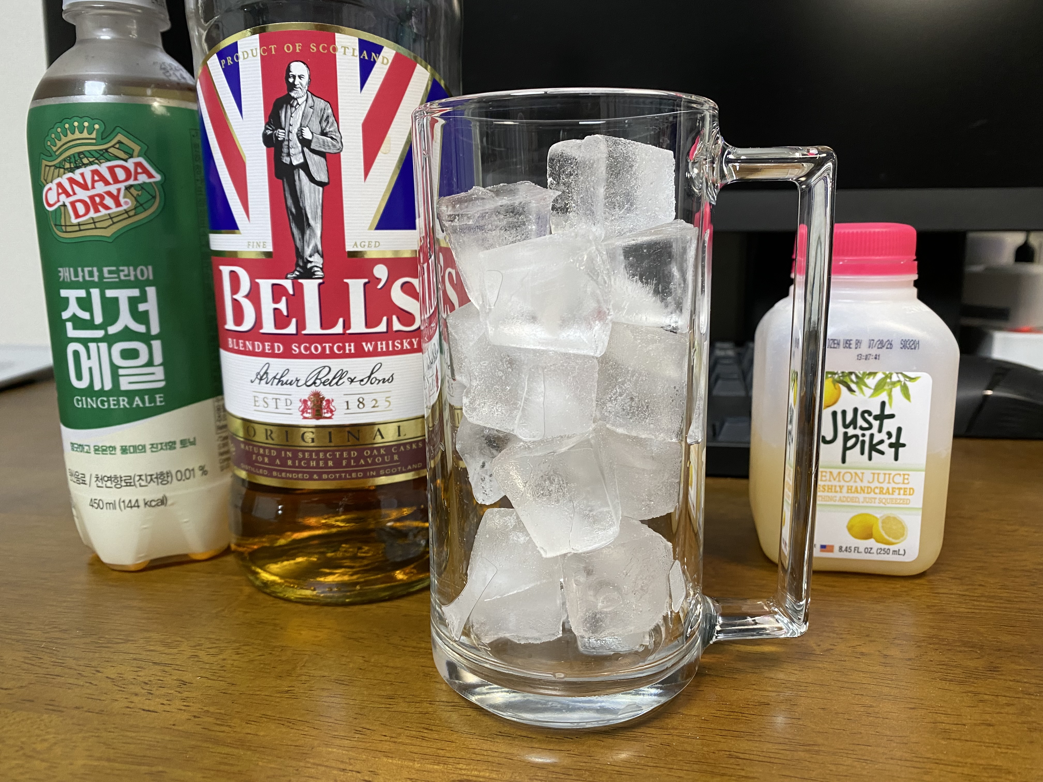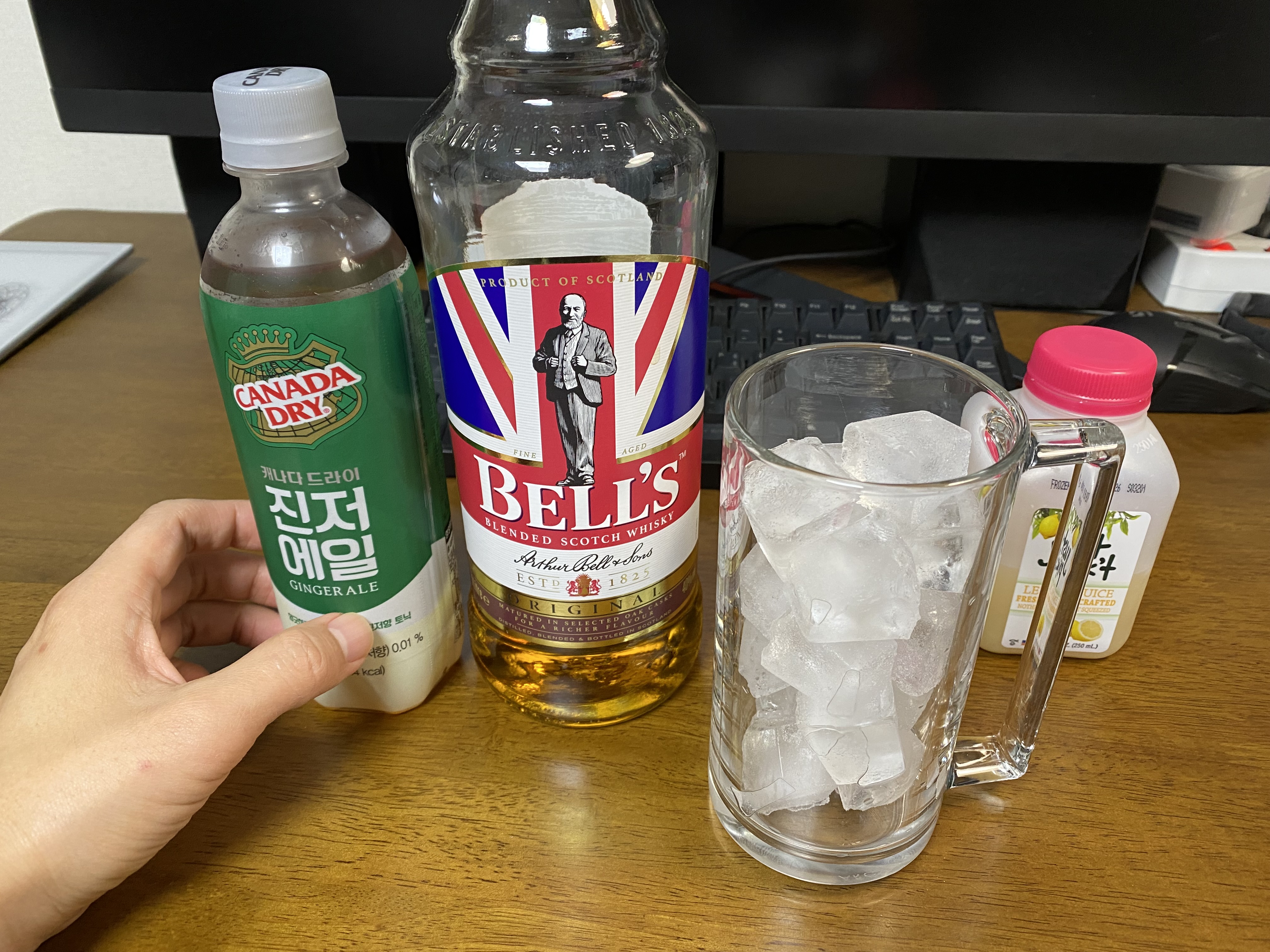 깔끔하게 위스키, 진저에일 조합도 좋지만 심심하다면 레몬즙같은걸 추가하는 것도 풍미를 더하는 길입니다. 레몬 조각을 잘라 넣는 게 정석인데 저는 귀찮아서 레몬즙을 삽니다. 많이 넣으면 맛이 변질되니 필요하면 조금만 넣어드세요.