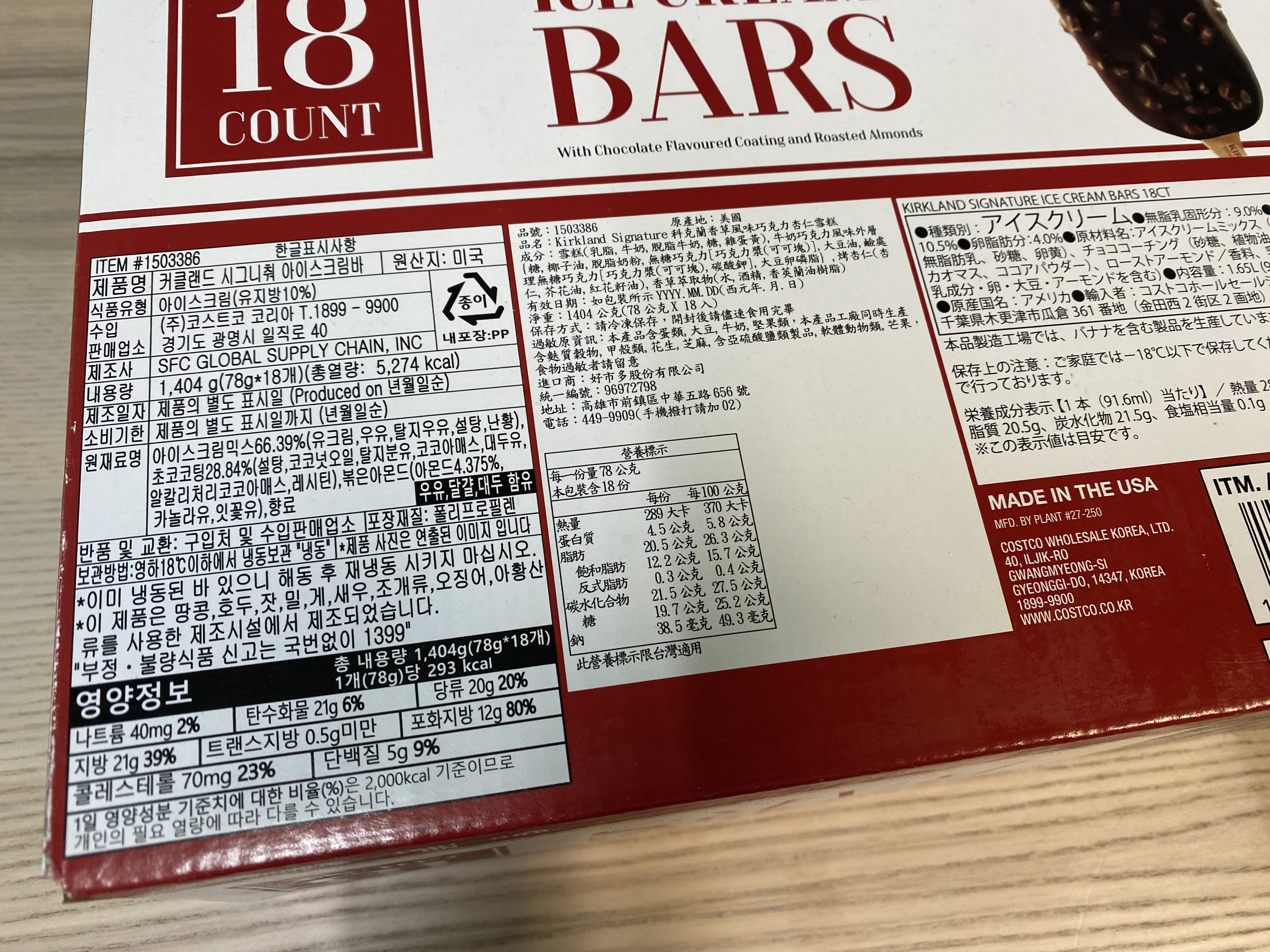 코스트코 커클랜드 시그니춰 아이스크림 바. 다 좋은데 너무 많이 먹어서 건강을 해칠까 두려운게 흠이라면 흠. 이런저런 건강 관련 글을 보면 세상에서 가장 해로운 음식중에 하나가 아이스크림이라고 합니다. 적당히 먹읍시다. 마지막 결론. 재구매 의사 있음.