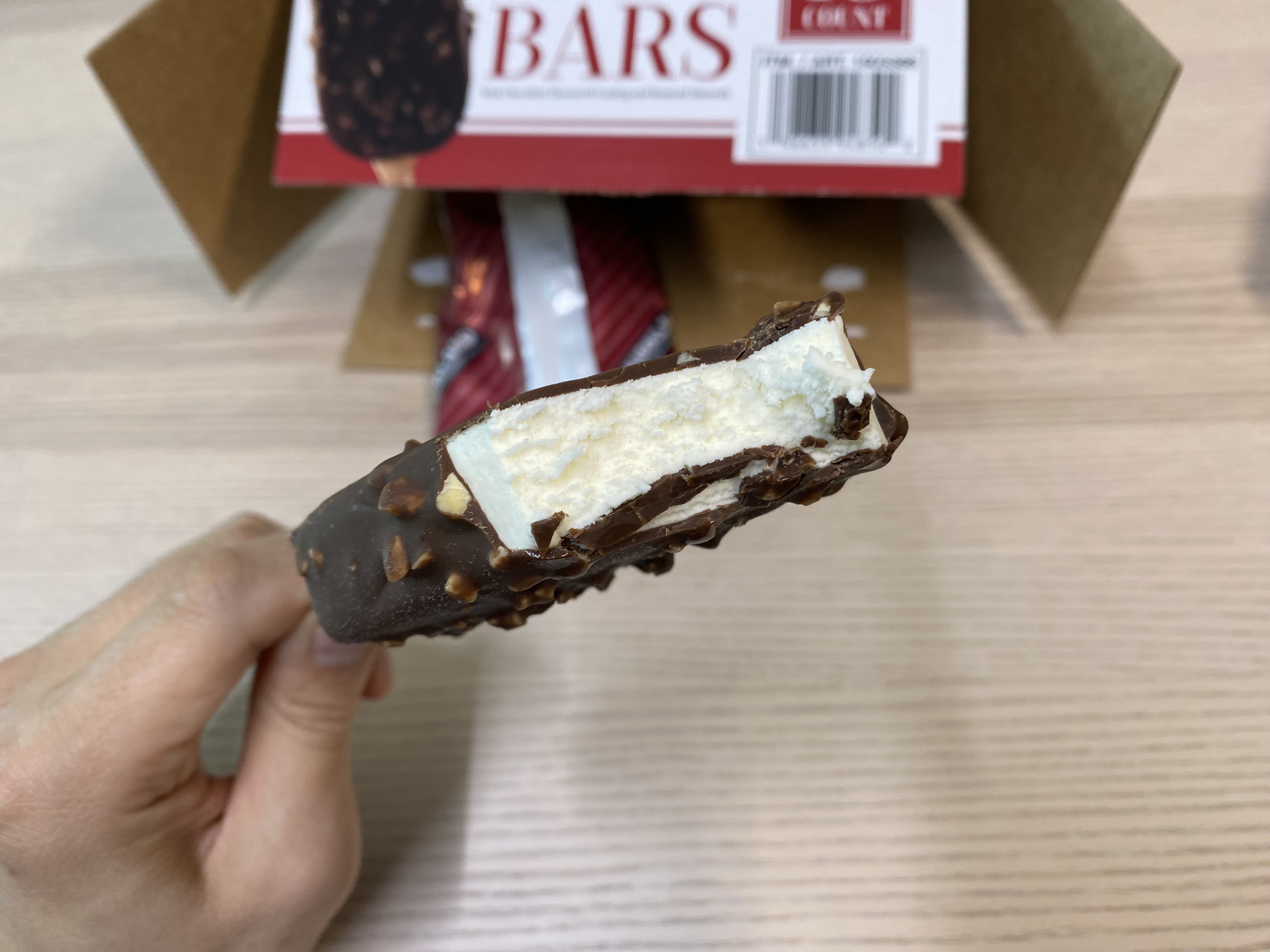 커클랜드 시그니춰 아이스크림 바 맛은 우리가 잘 아는 맛있는 초코 아이스크림바 맛 그대로 입니다. 초코 두께도 적절하고 아몬드도 적절히 씹히고 좋습니다. 밸런스가 잘 잡힌 아이스크림이라고 할 수 있습니다.