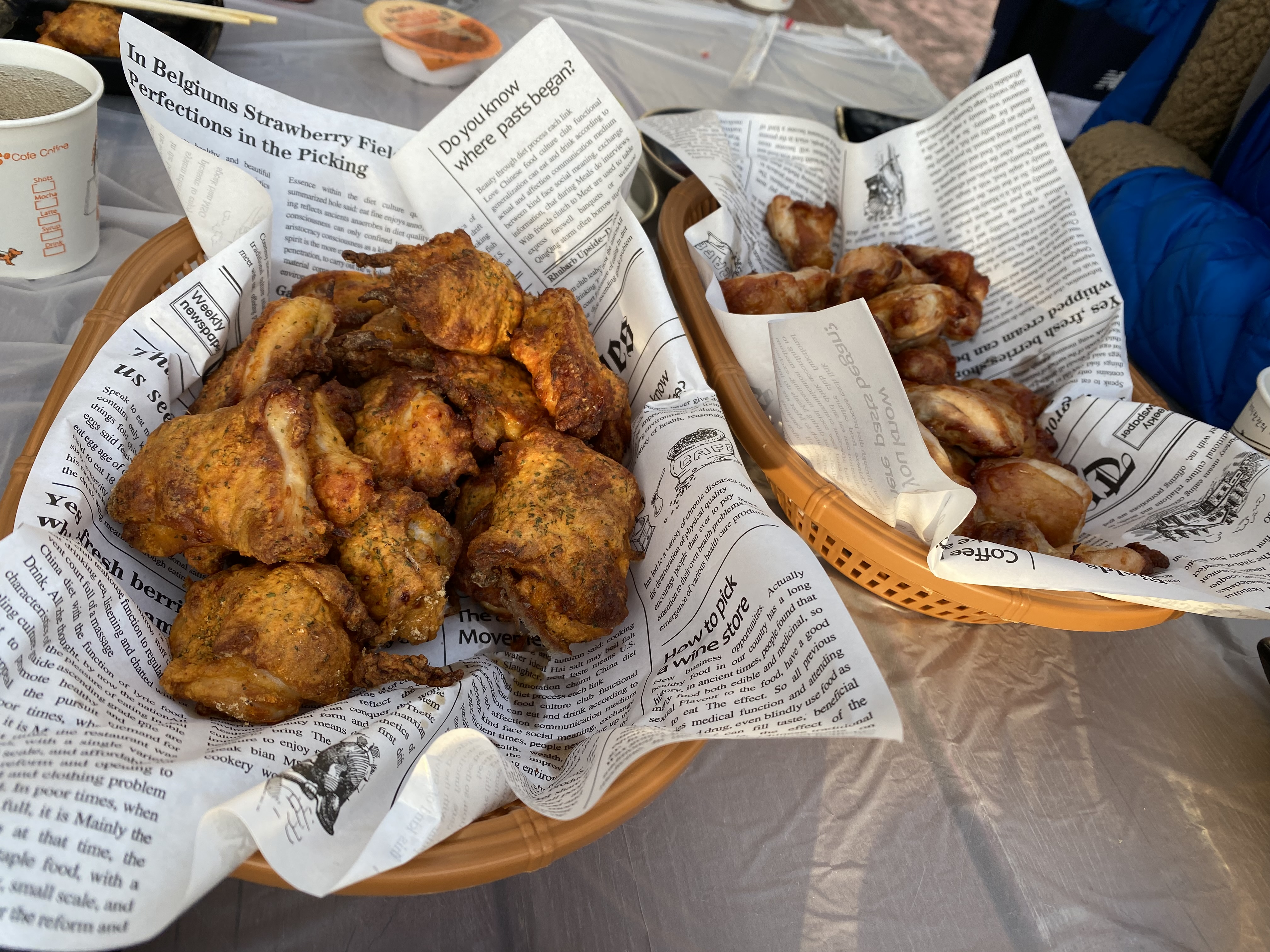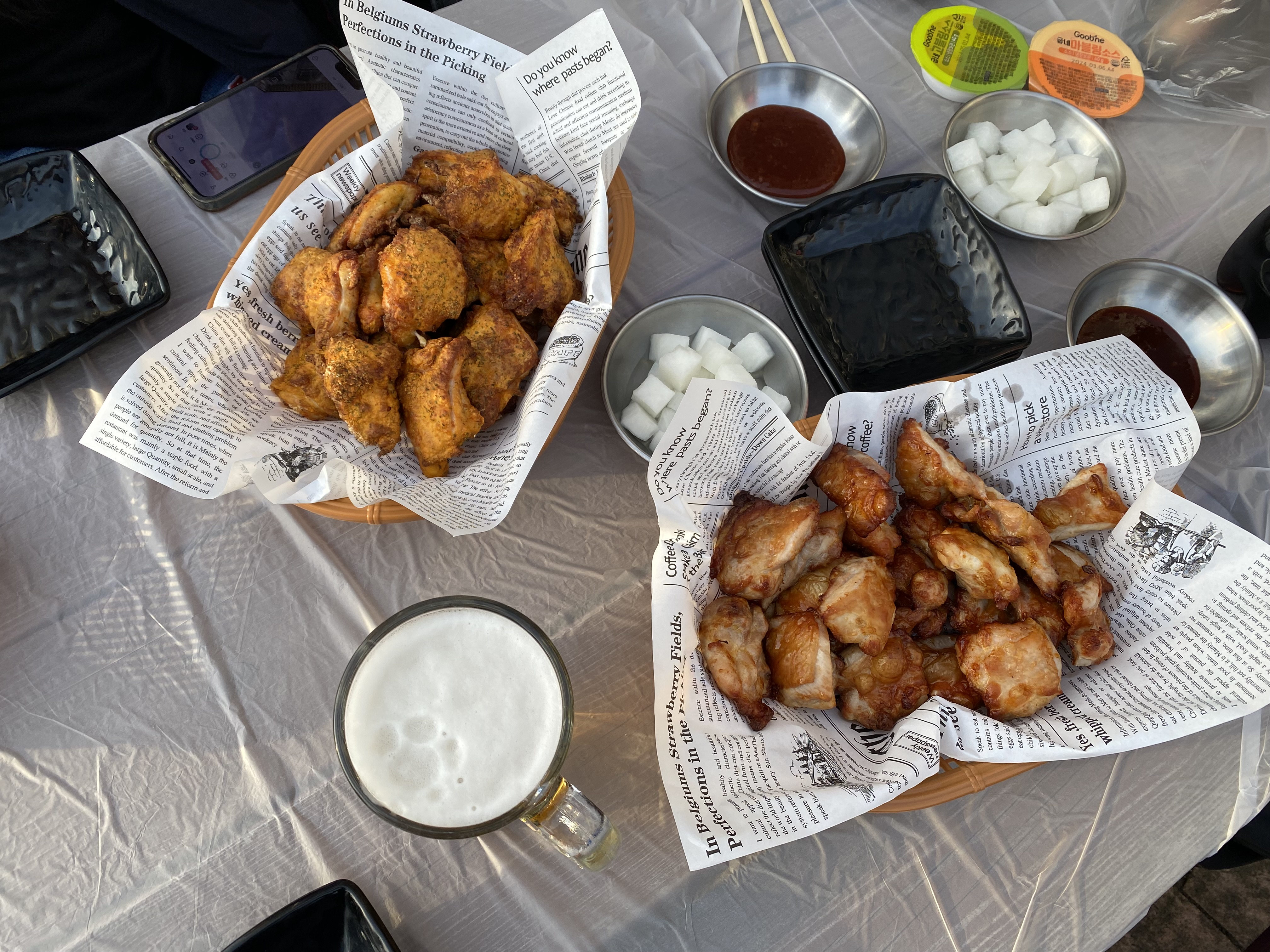 드디어 굽네치킨 경주보문점 야외에 치킨을 펼쳤습니다. 오리지널과 고추바사삭.