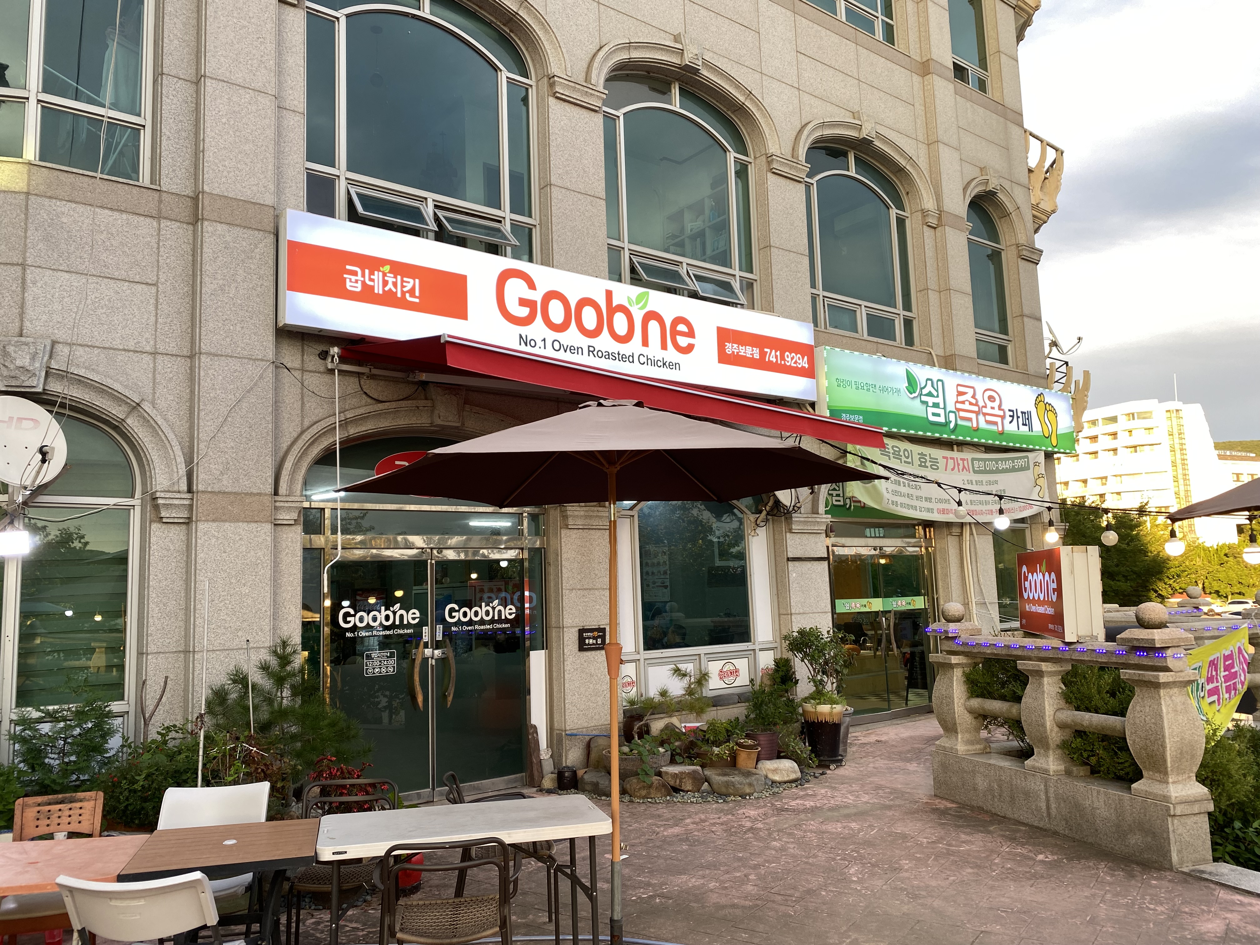 굽네치킨 경주보문점은 야외에서도 치킨을 뜯을 수 있습니다.