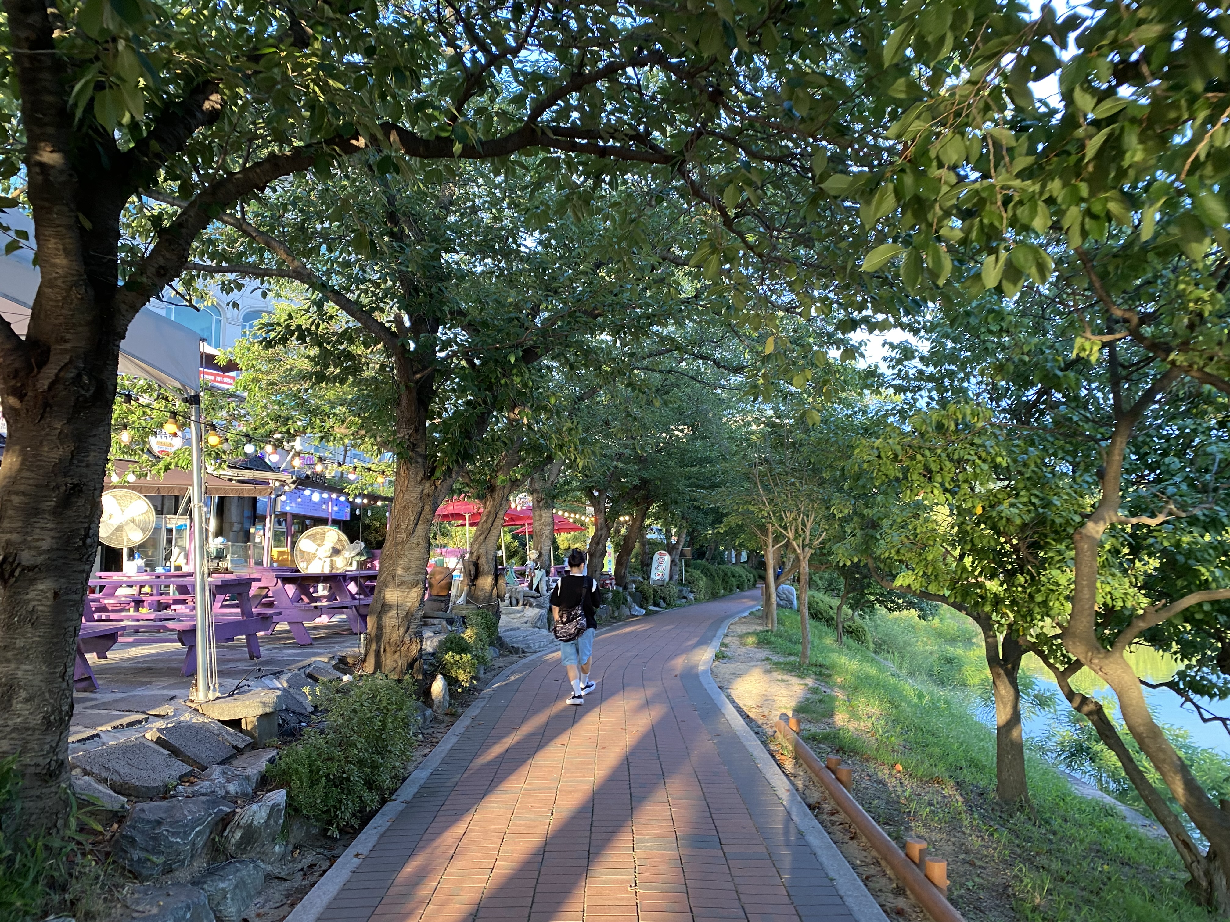 굽네치킨 매장 앞은 넓어서 아이들이 돌아다닐 수 있습니다. 먹고 돌아다니고 먹고 돌아다니고. 층간 소음이여 안녕. 그렇다고 해서 너무 떠들면 곤란하겠지요. 그리고 계단을 조금만 내려가면 보문호가 펼쳐지는데 풍류를 제대로 즐길 수 있는 곳입니다.