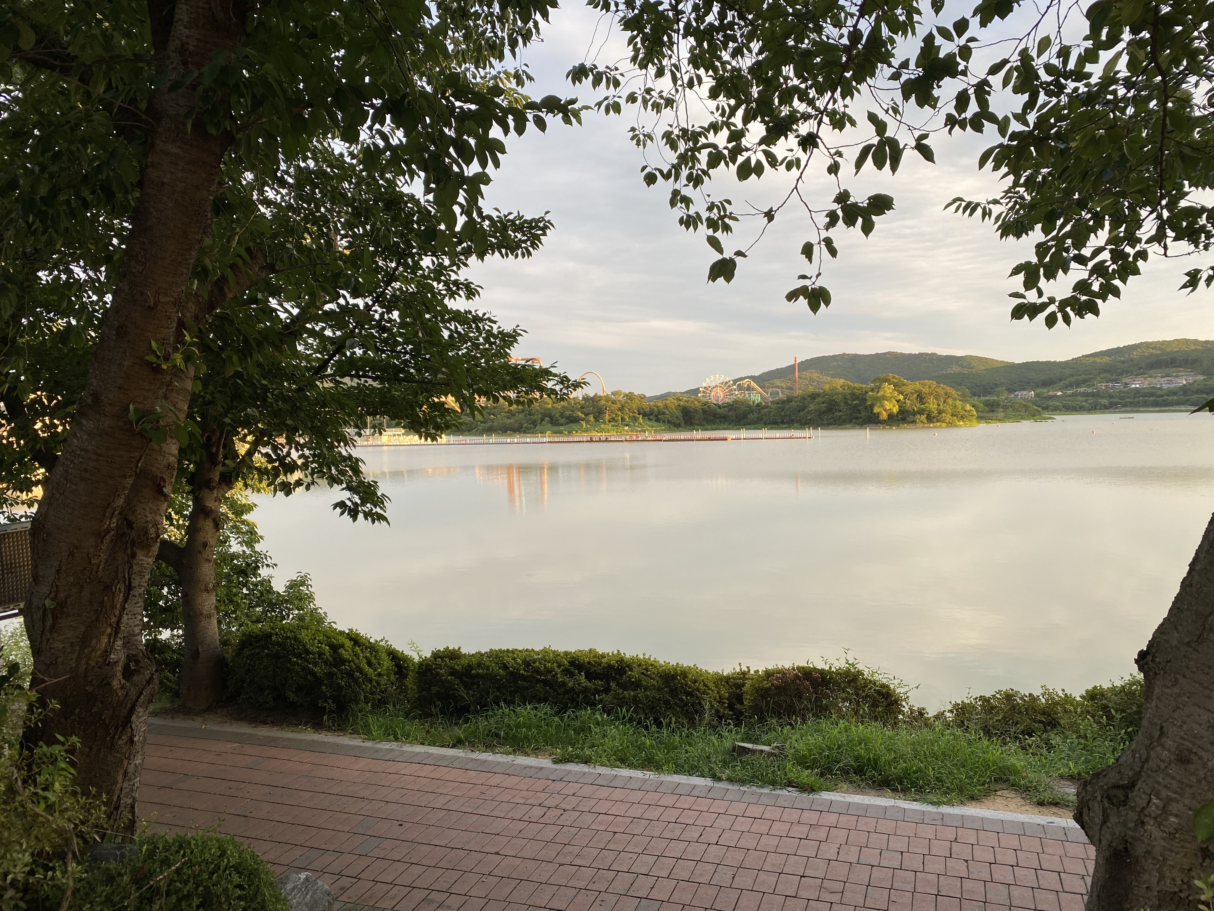 굽네치킨 매장 앞은 넓어서 아이들이 돌아다닐 수 있습니다. 먹고 돌아다니고 먹고 돌아다니고. 층간 소음이여 안녕. 그렇다고 해서 너무 떠들면 곤란하겠지요. 그리고 계단을 조금만 내려가면 보문호가 펼쳐지는데 풍류를 제대로 즐길 수 있는 곳입니다.