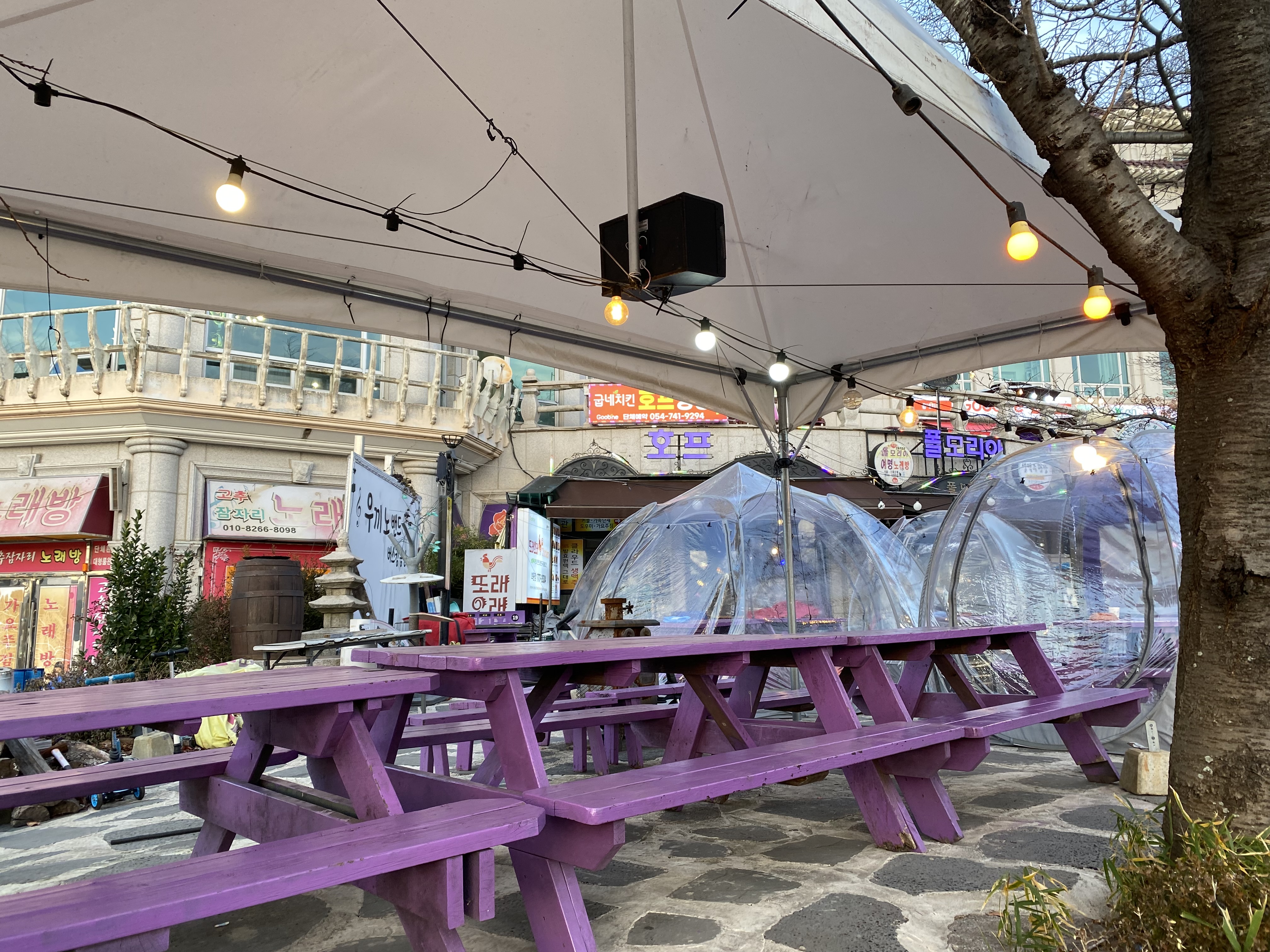 경주 소노벨 리조트 주변에 먹고 즐길 수 있는 곳이 있습니다. 식당, 술집, 편의점, 노래방 등. 야외에서 마시고 놀 수 있는 술집도 있습니다. 밤에 가족, 친구들과 한잔하기 좋은 곳이지요. 예전에는 경주에 사람이 참 많다고 생각했는데 인구가 많이 줄어서 그런지 요즘은 상권이 많이 죽었다는 생각이 듭니다. 옆에 비어있는 콩코드 호텔을 보고 있으면 마음이 짠합니다.