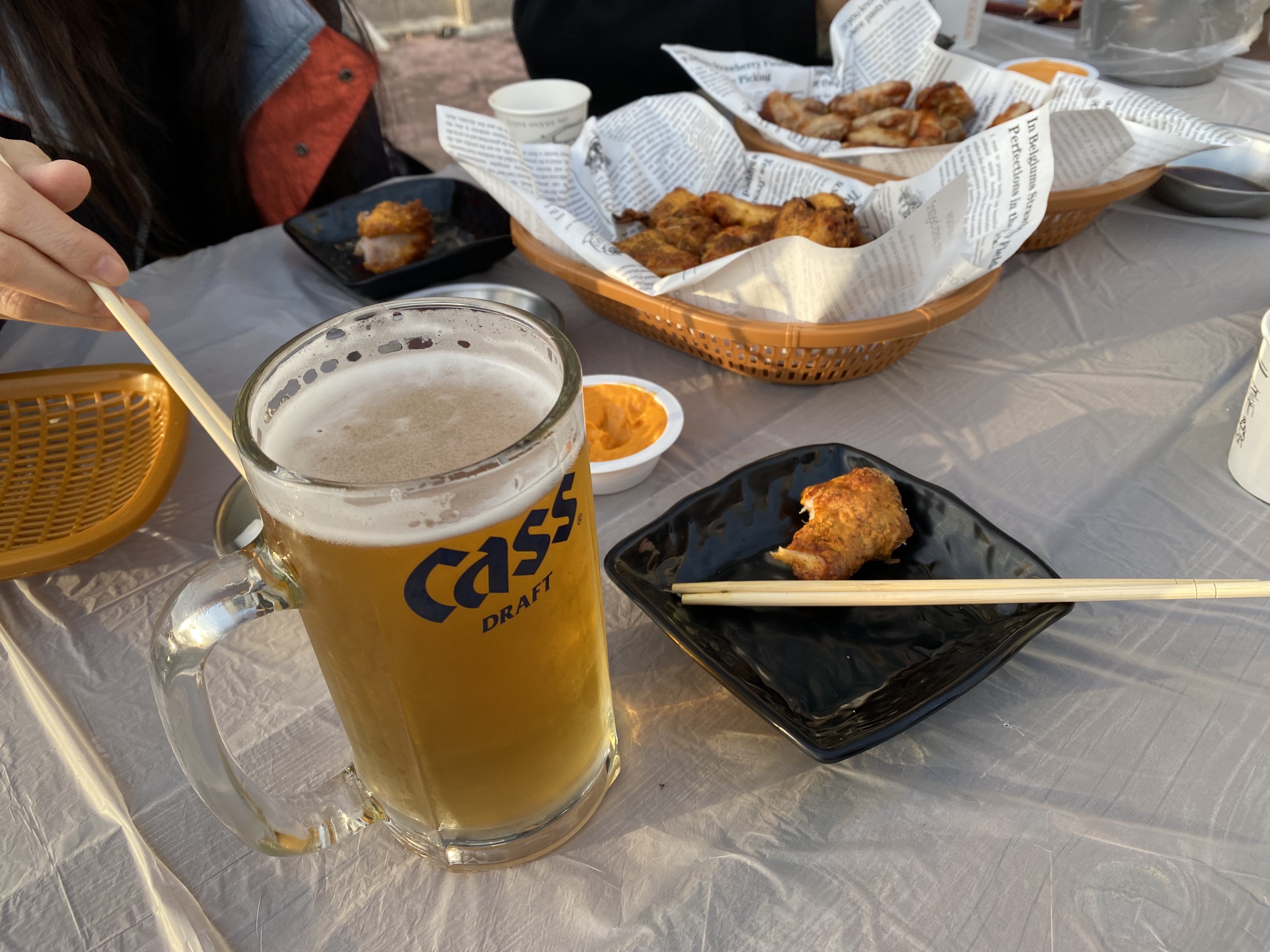 이날은 겨울이지만 날씨가 많이 풀려서 야외에서 생맥주도 한잔했습니다. 치킨도 맛있고 맥주도 맛있고. 토요일 주말이라 그런지 굽네치킨 바로 밑 보문호 근처 광장에서 70, 80 라이브 공연도 하고 있었습니다. 70 80 노래를 선호하는 편은 아닌데 이런 곳에서 들으니 운치 있고 좋았습니다. 야외에서 치맥을 즐기며 노래를 들을 수 있다니. 캬~