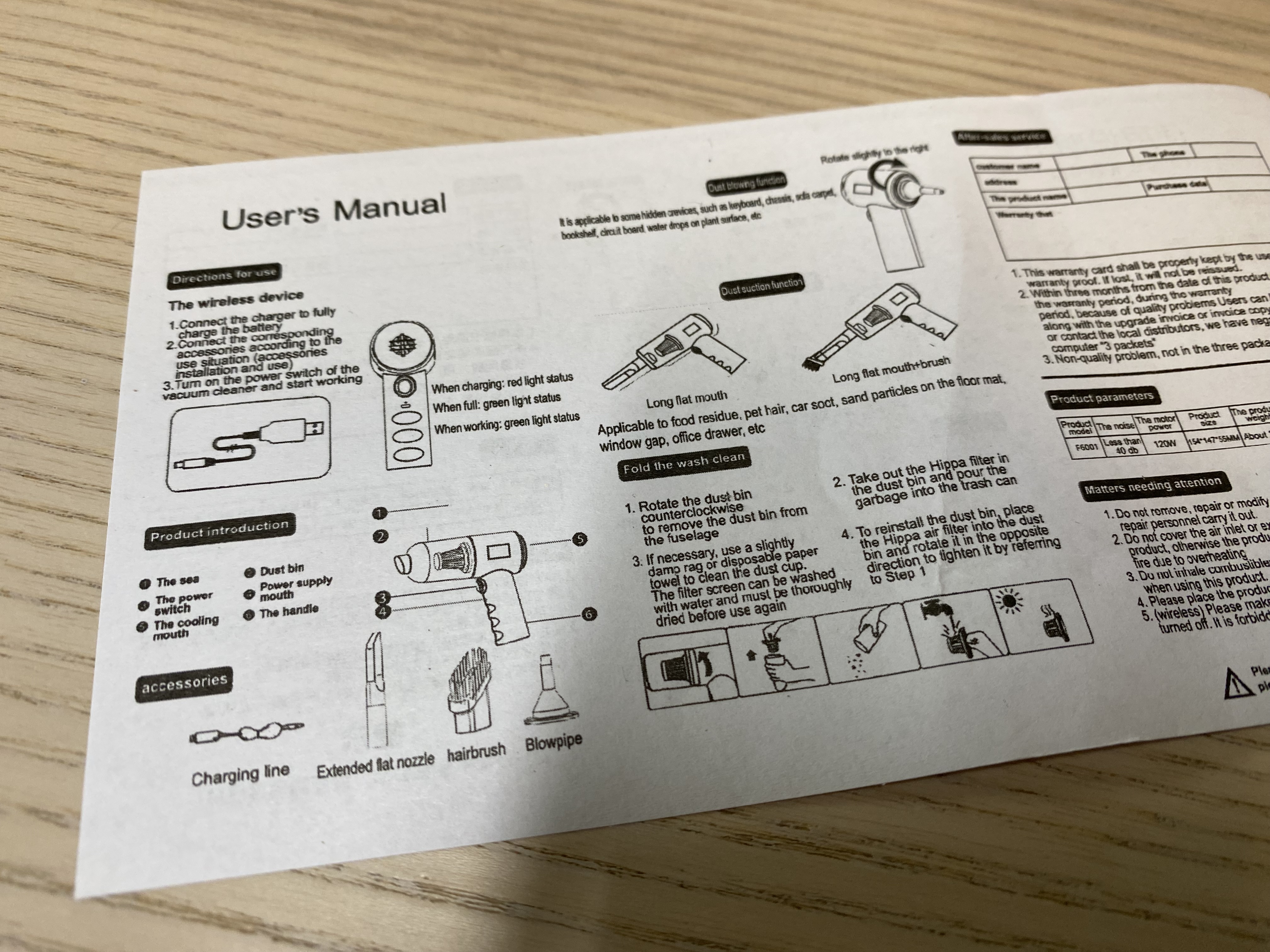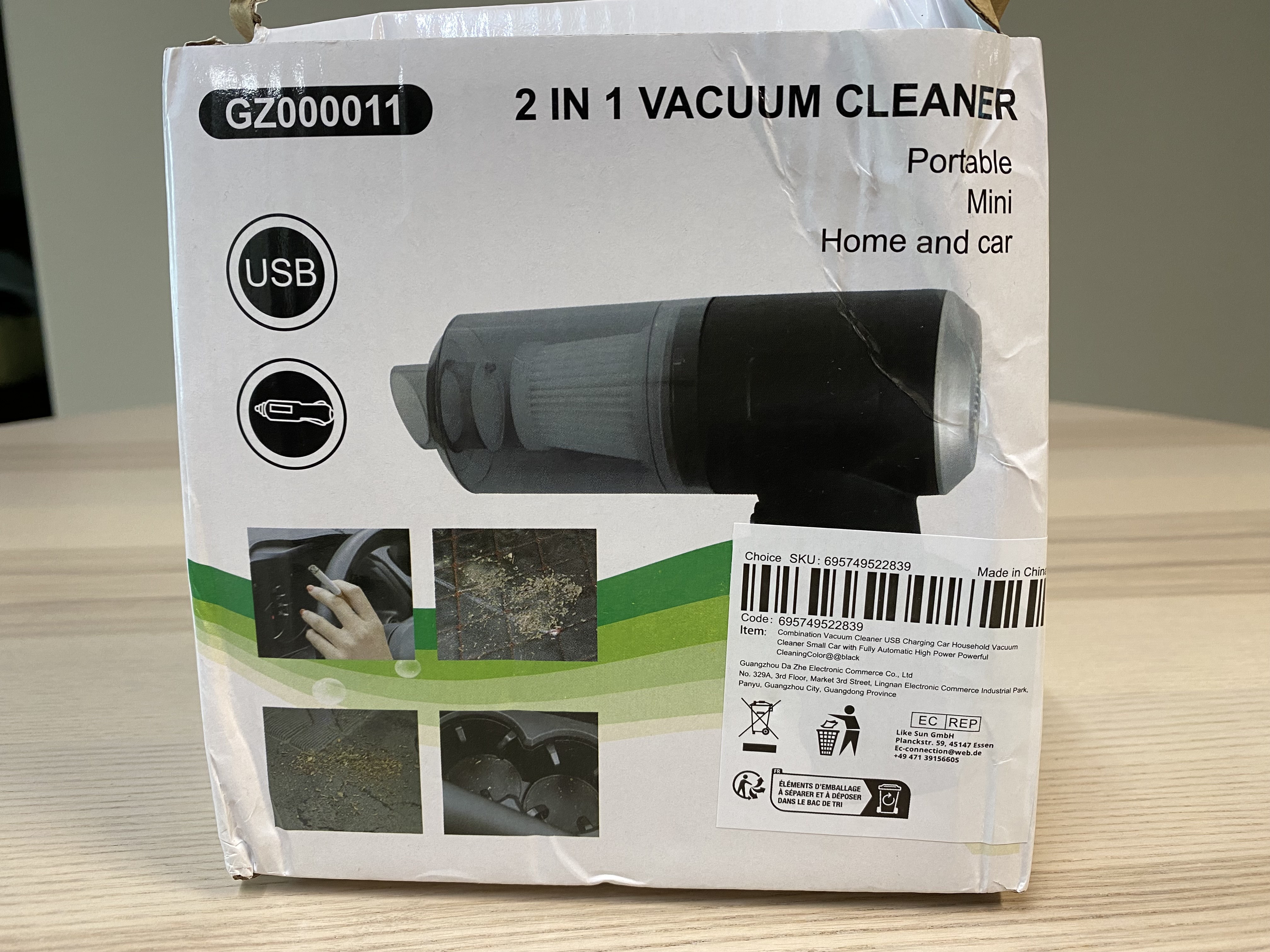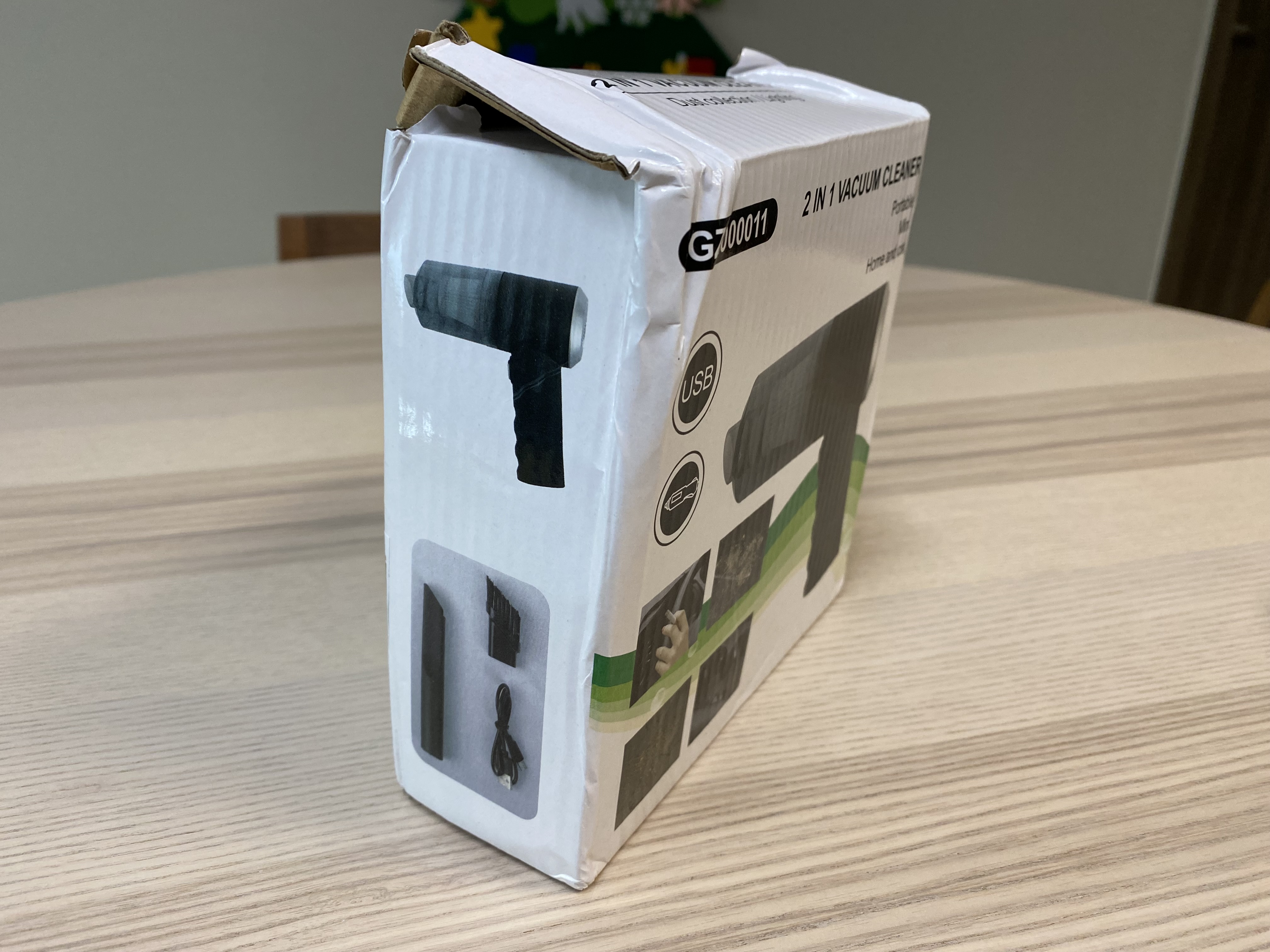 박스 위에 박스가 아니라 봉지에 포장되어 와서 그런지 제품 박스가 엉망입니다. 다행히 제품에는 문제가 없었네요. 제가 구매한 이 제품은 알리에서 '1PC 무선 진공 청소기 듀얼 사용 홈 및 자동차 120W 고성능 강력한 진공 청소기 블랙'라고 적혀있는 제품입니다.