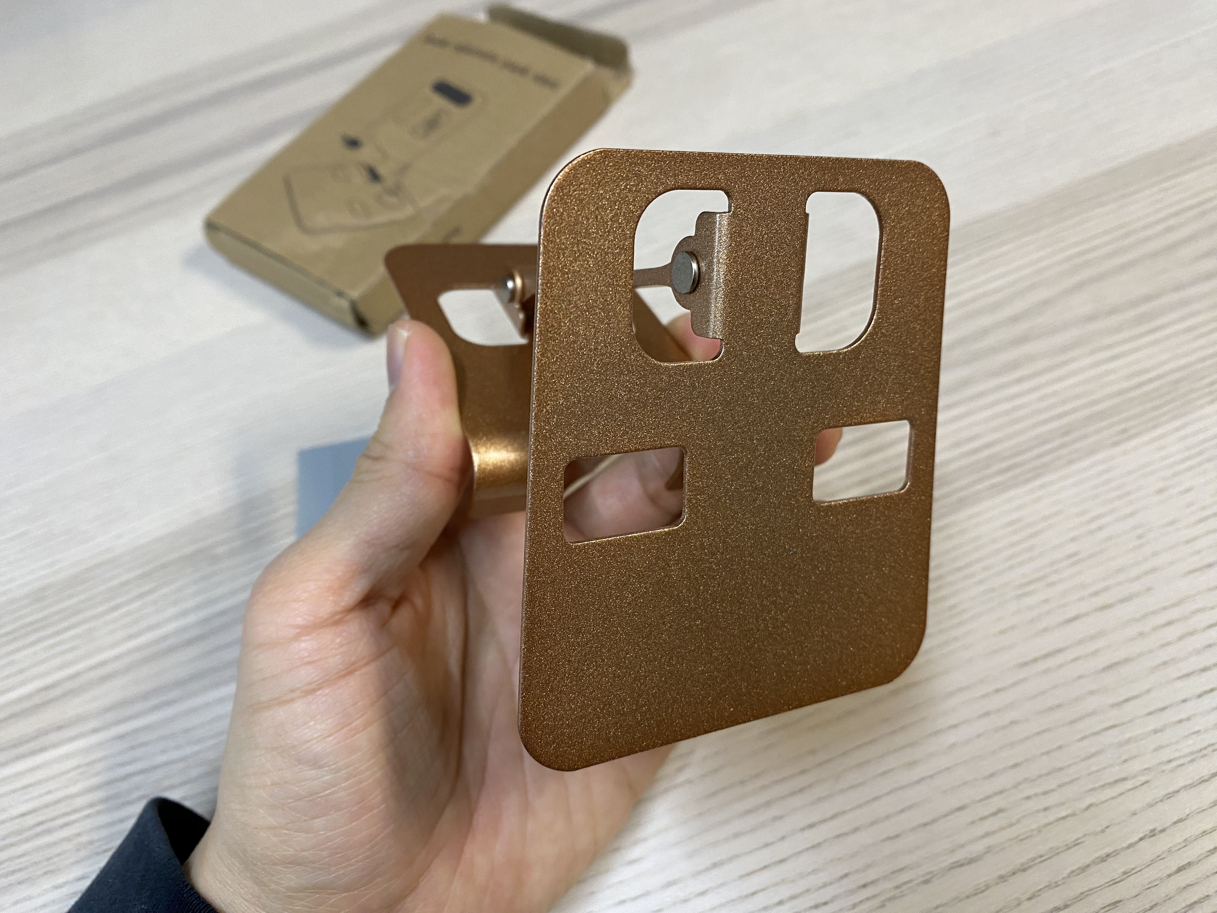 거치대를 접고 펴는데 힘이 많이 들어갑니다. 나쁘게 말하면 뻑뻑하다고 할 수 있고 좋게 말하면 견고하다고 볼 수 있을 것 같습니다. 접는 부분은 생각보다 나쁘지 않습니다.