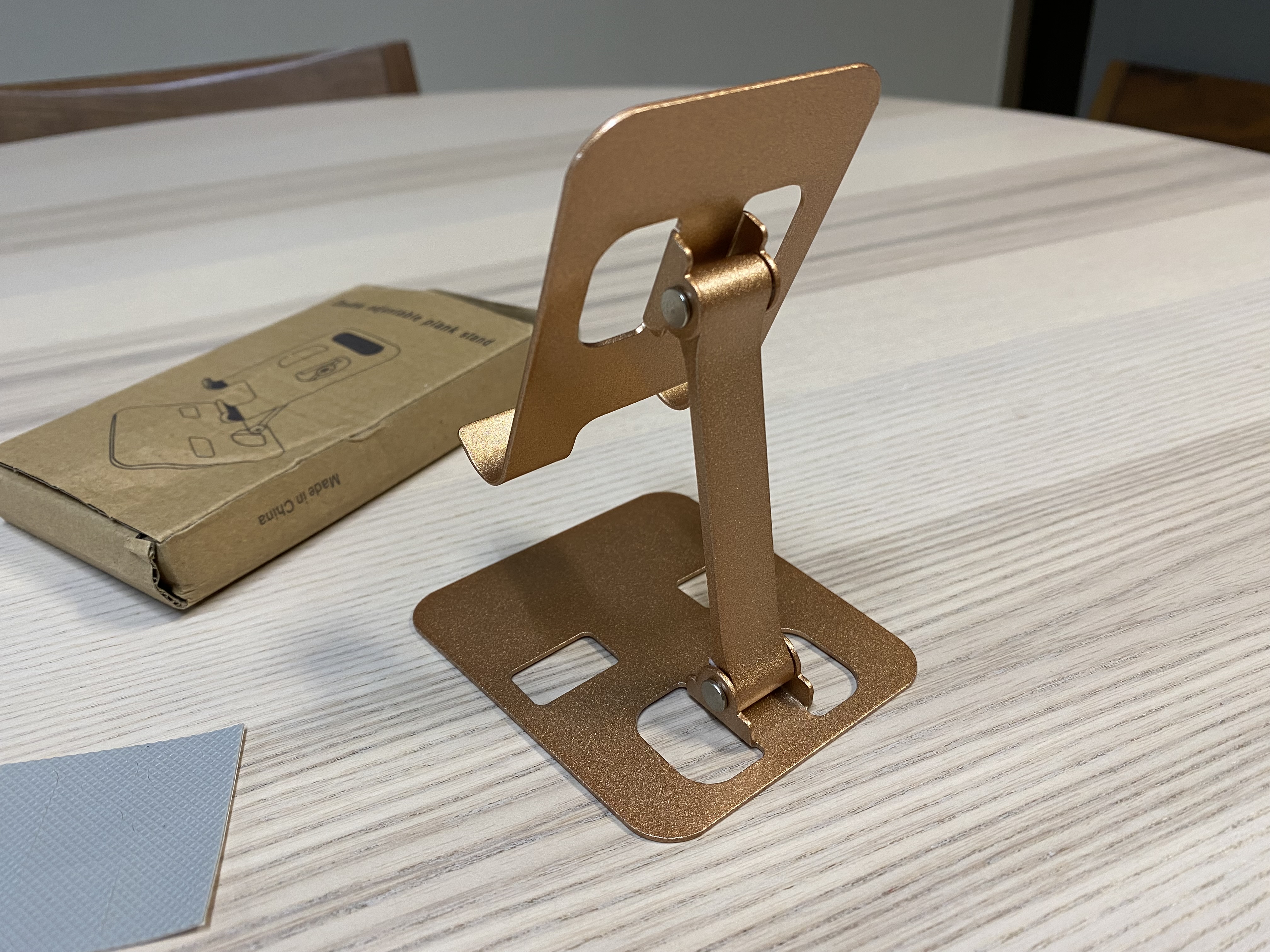 알리익스프레스 알루미늄 스마트폰 거치대. 튼튼해 보이고 저렴해서 샀는데 튼튼하기만 하고 별로 쓸모가 없어서 사용을 거의 안 하고 있습니다. 높이 조절 불가에 뒤를 받쳐주는 부분이 너무 작아서 각도를 기울이거나 태블릿, 전자책처럼 큰 제품을 거치하기도 어렵네요. 딱 작은 스마트폰을 안정적으로 받치는 용도로 써야 할 것 같습니다.