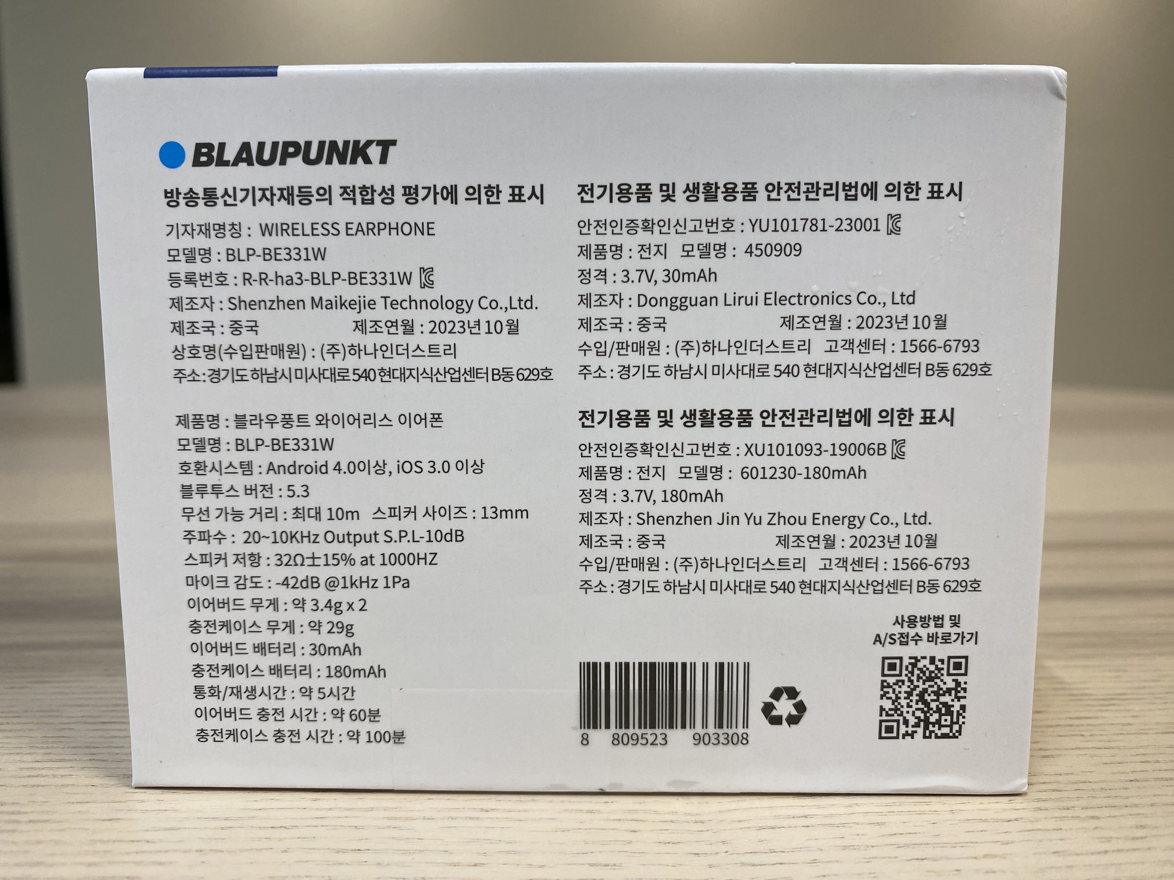 애플 에어팟과는 달리 블라우풍트 로고가 진하게 들어있는 것을 볼 수 있습니다.