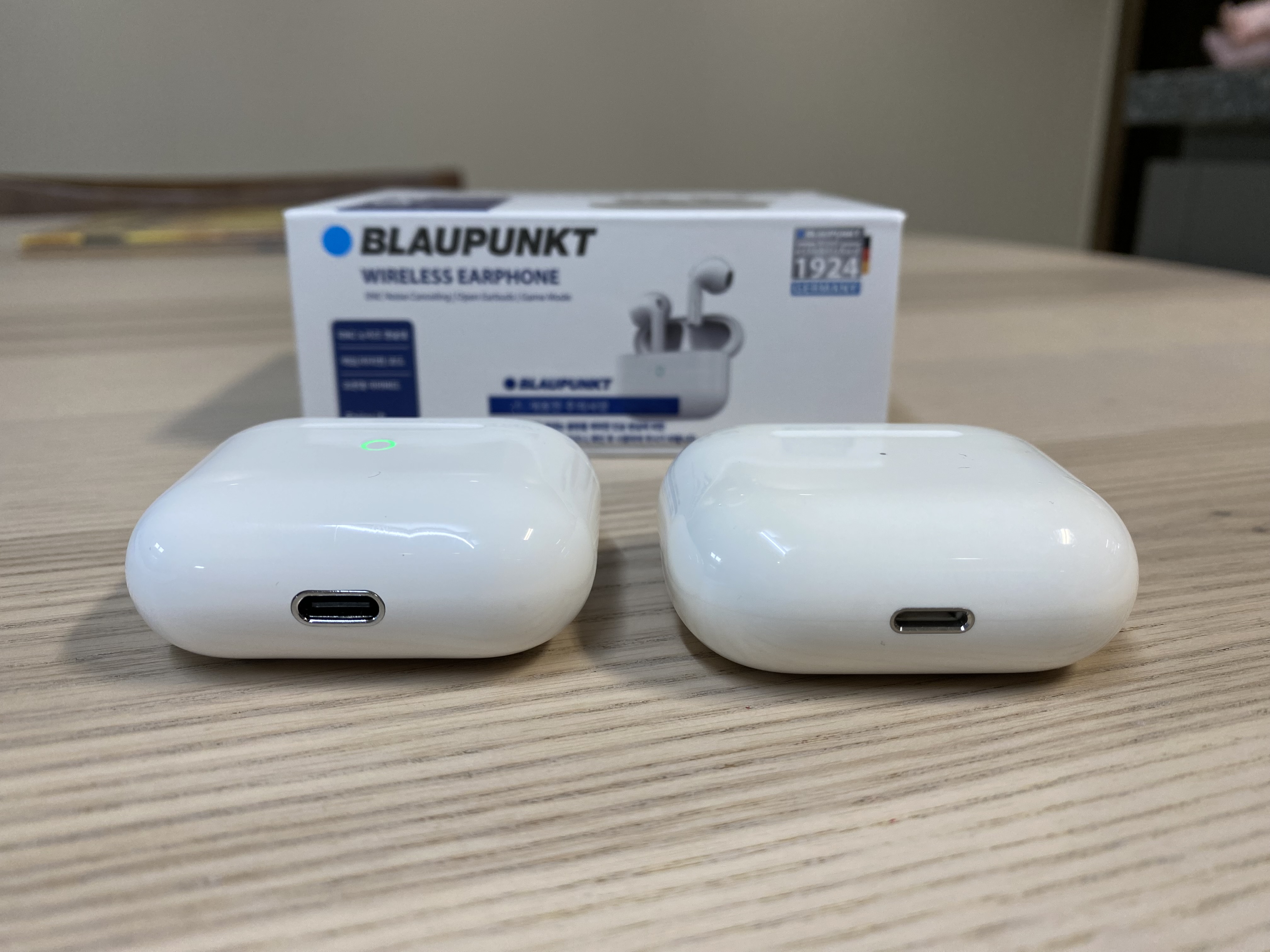 블라우풍트와 에어팟 이어폰 외관 비교 컷