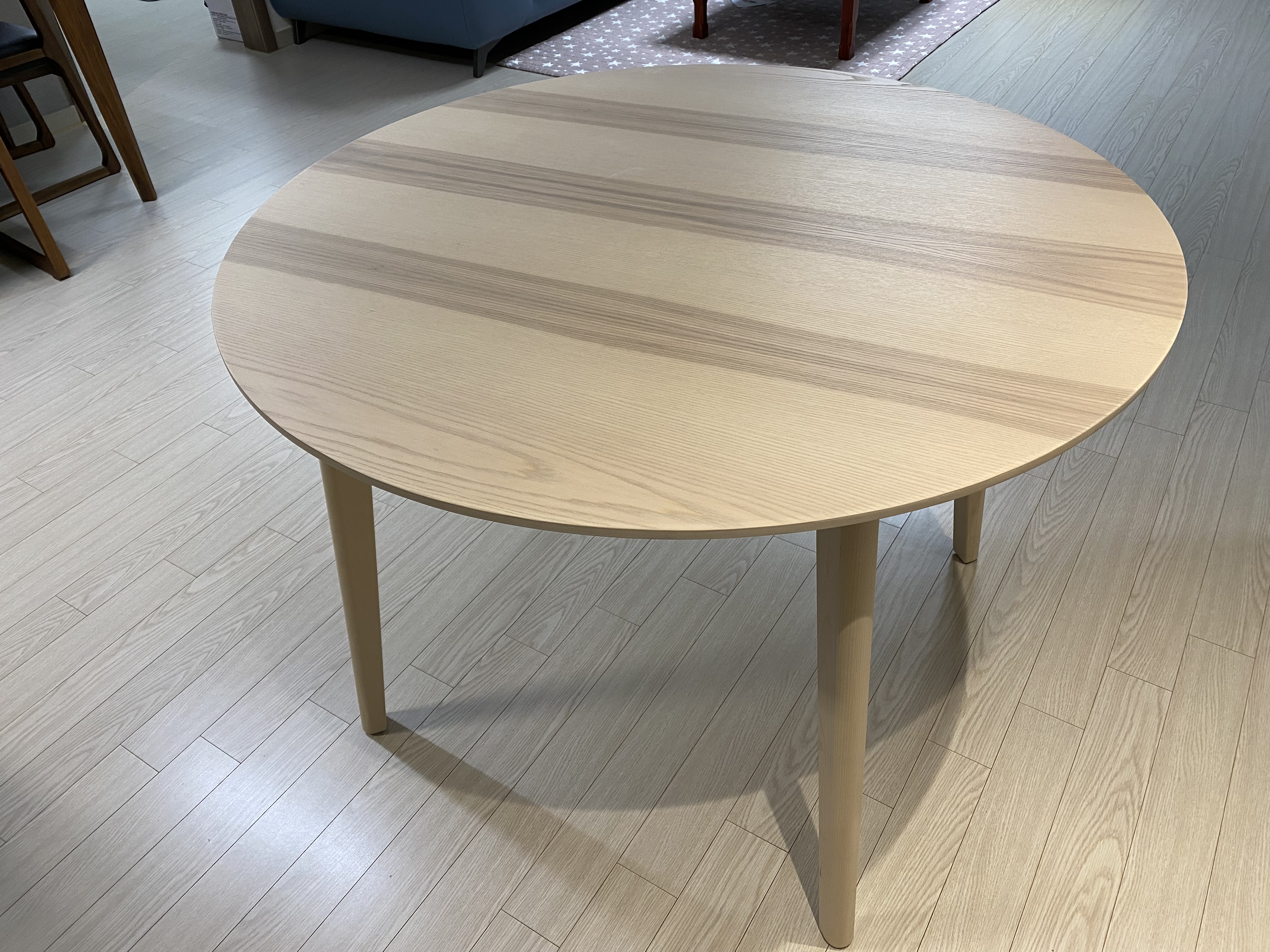 이케아 IKEA LISABO 리사보 물푸레무늬목 원형 테이블. 1년 동안 사용하고 있는데 너무 만족스럽습니다. 그래서 길이 2m짜리 리사보 테이블을 하나 더 구매했습니다. 아이들과 앉아서 공부할 용도로 구매했는데 이것도 조만간에 후기를 올리도록 하겠습니다. 밝은 색 둥근 테이블을 찾고 있던 분에게 이케아 리사보를 추천하고 싶네요.