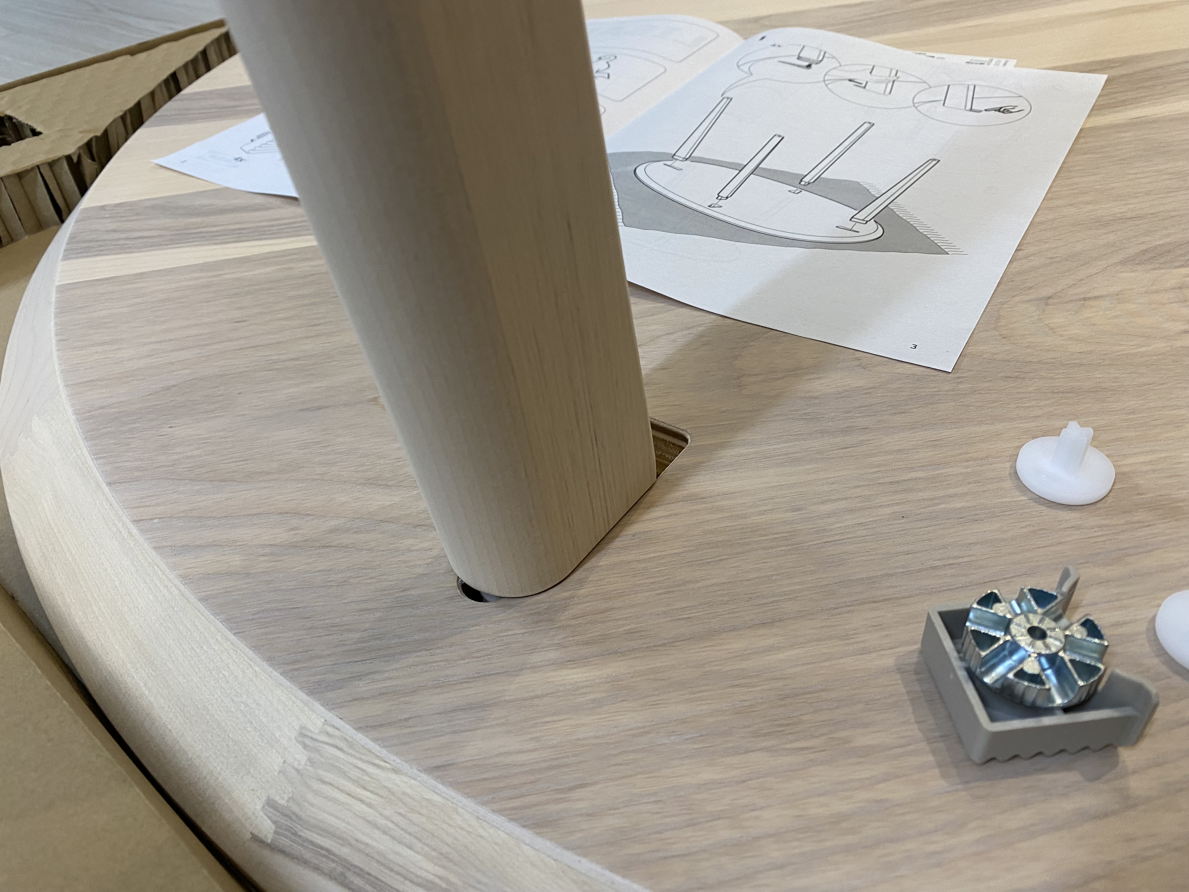 이 리사보 원형 테이블은 진짜 진짜 조립하기가 편합니다. 위 사진에 보이는 고정부품만 돌려주면 끝.