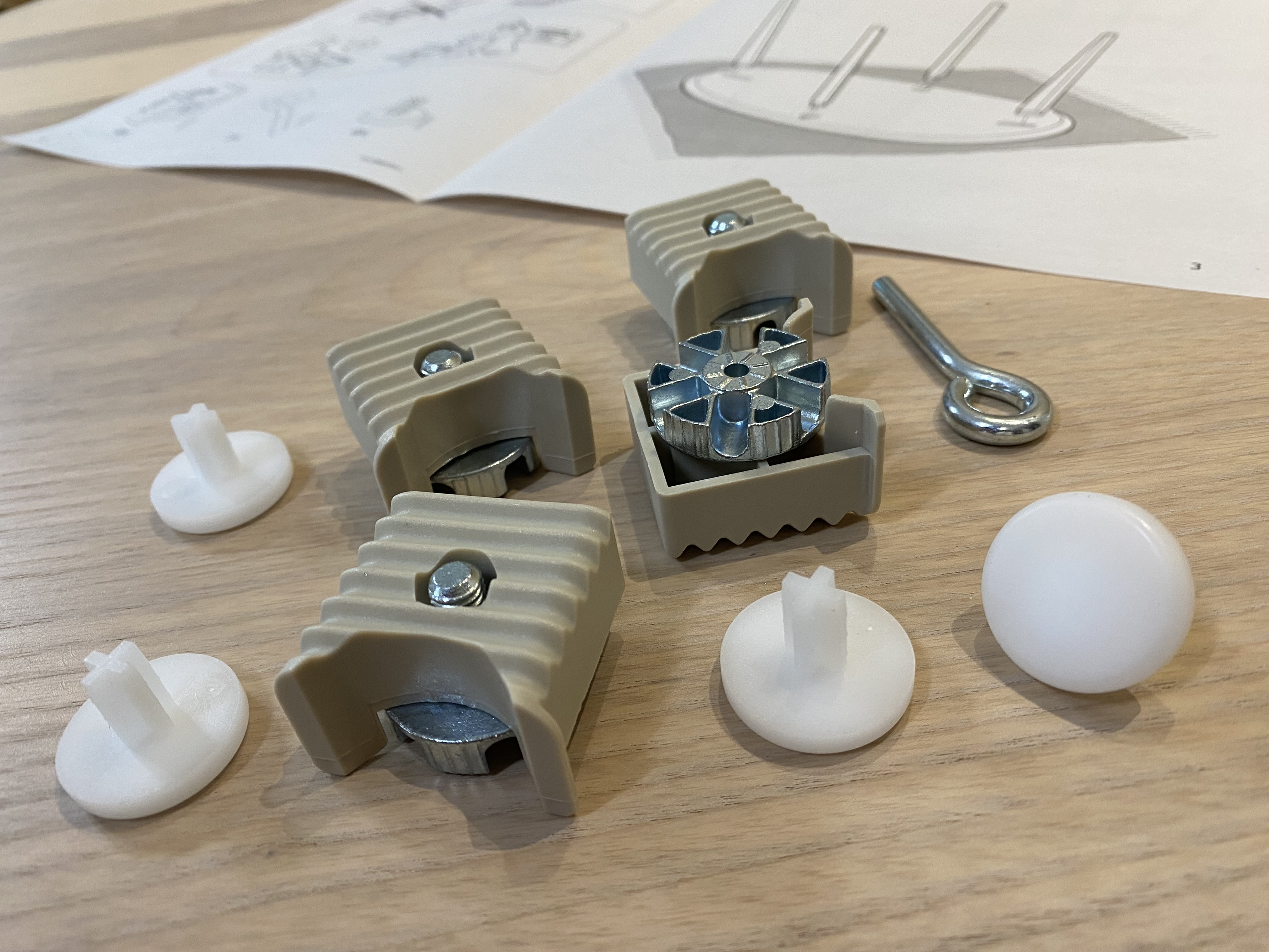 4개의 다리 고정 부품과 바닥보호 플라스틱 4개만 장착하면 조립 끝.