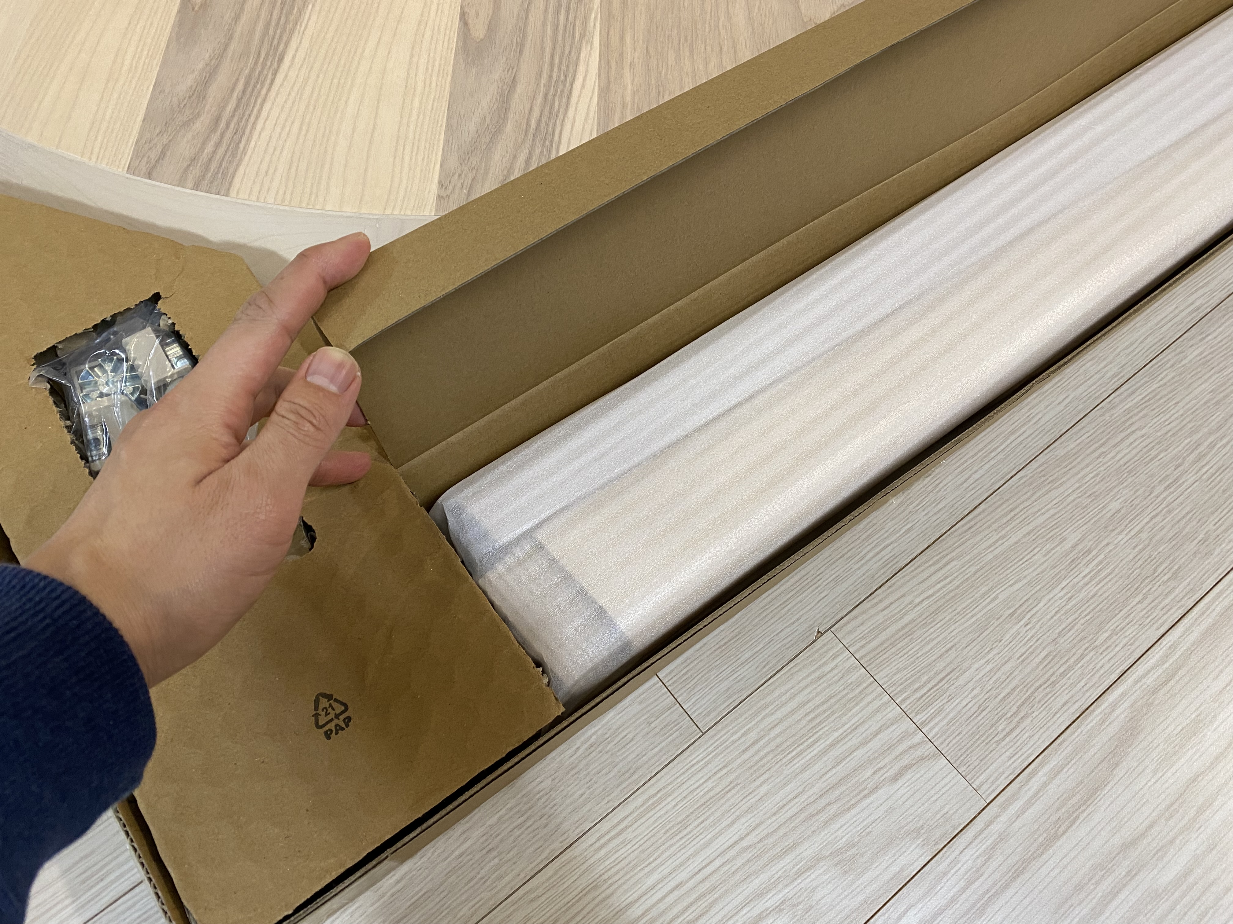 리사보 테이블 다리가 아주 야무지게 포장되어 있네요.