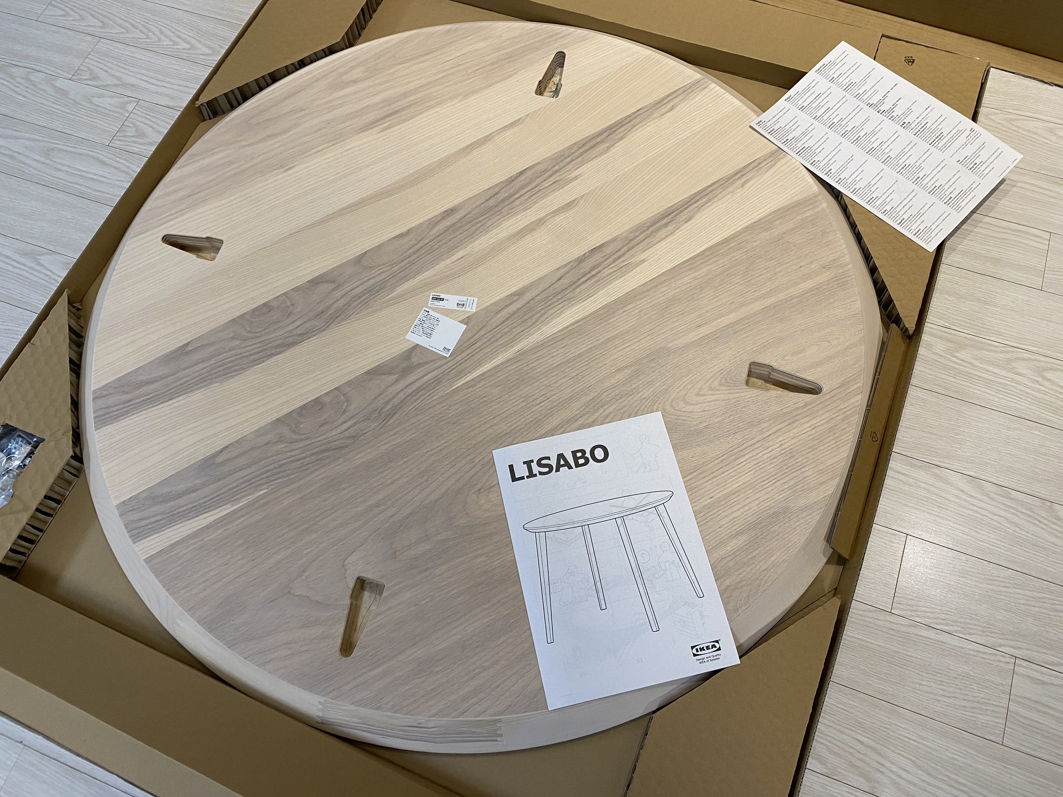 짜잔 이게 바로 이케아 LISABO 리사보 물푸레무늬목 원형 테이블. 다 만들고 보니 진짜 괜찮네요. 가격이 249,000원인데 비싸다면 비싸고 싸다면 싼 가격이라 생각합니다. 저는 가격대비 괜찮게 느껴집니다.