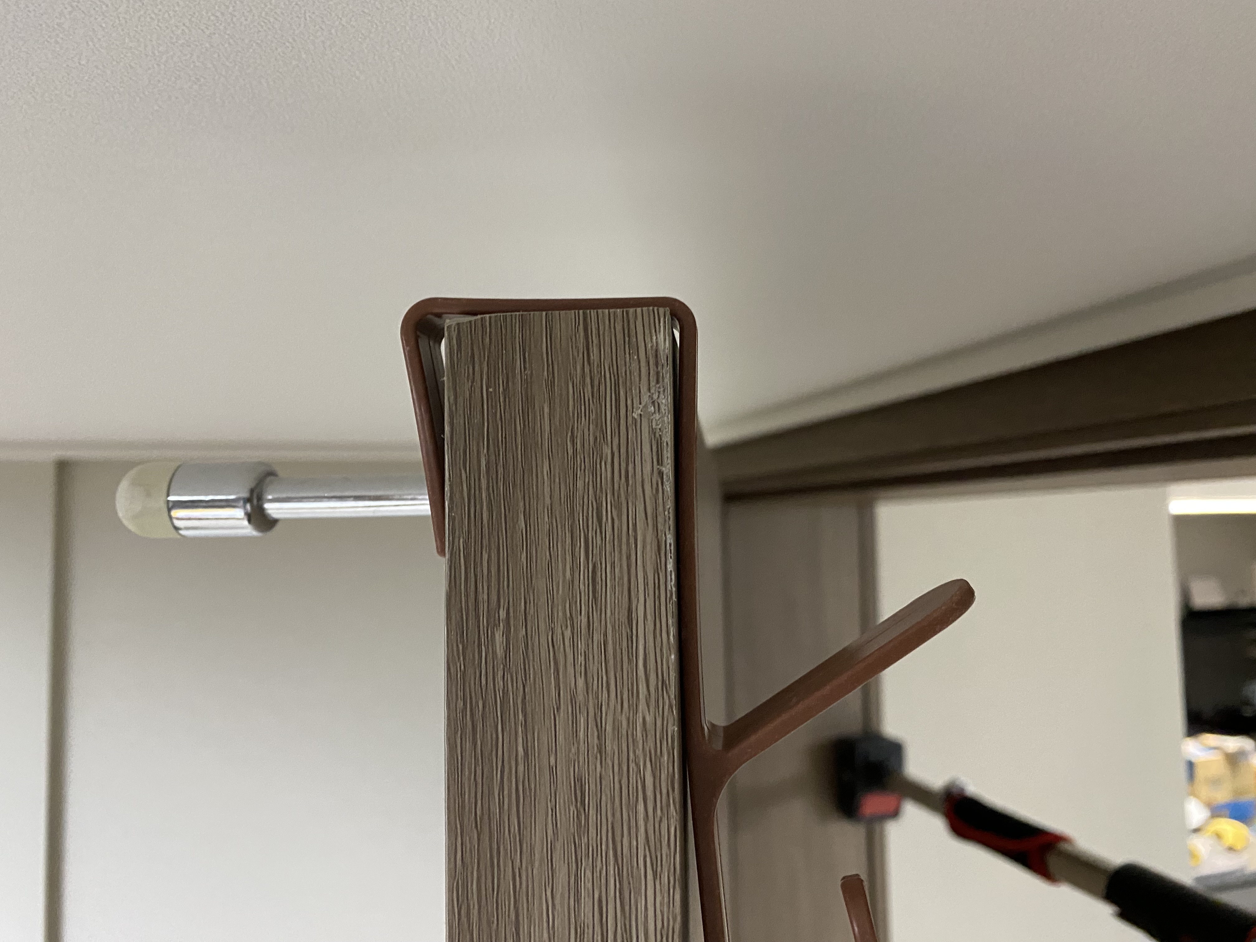 플라스틱 도어 후크가 휘어져있어도 이렇게 옷을 걸면 괜찮습니다. 천천히 펴지겠지 생각했는데 생각보다 안 펴지네요.