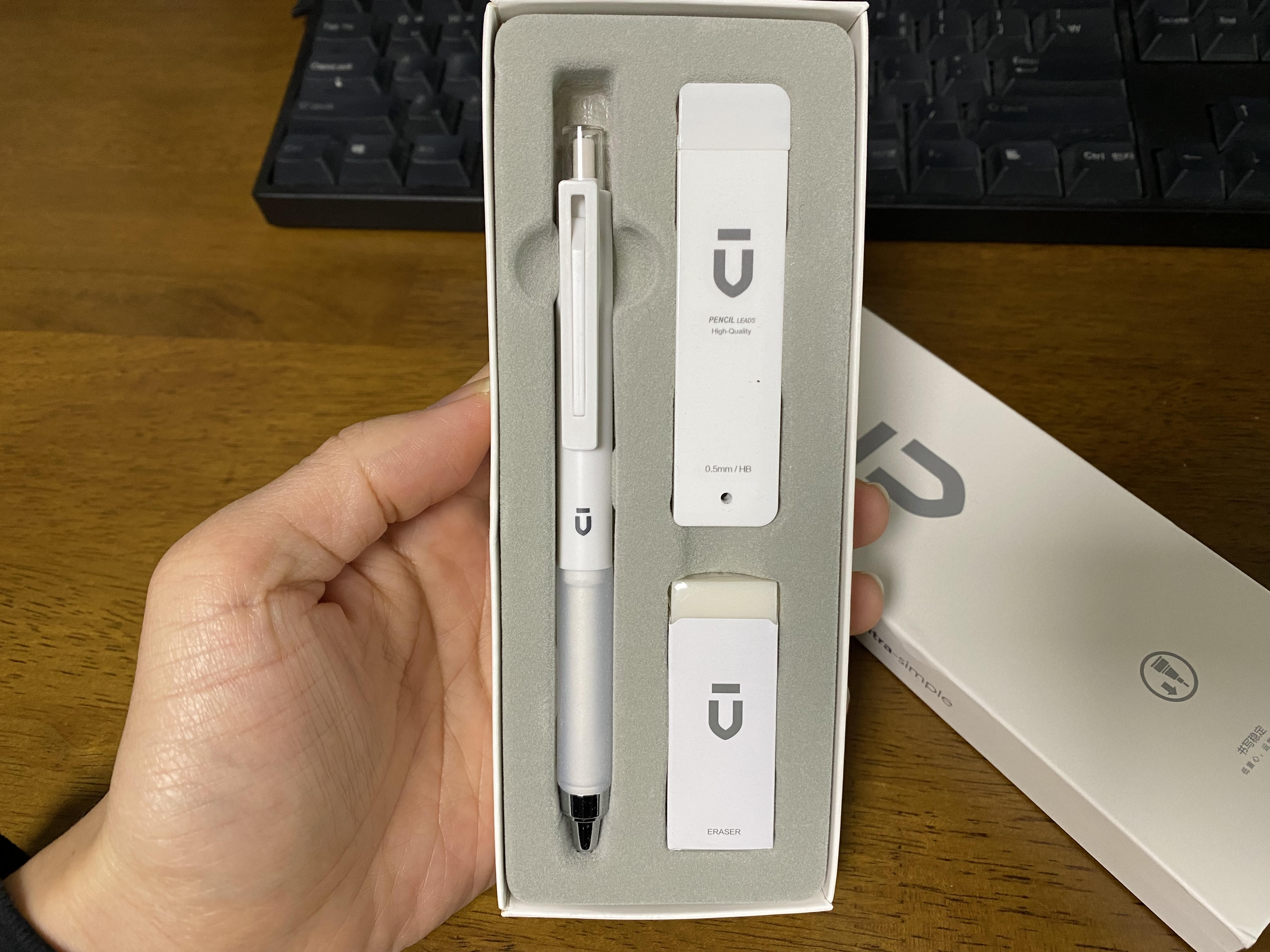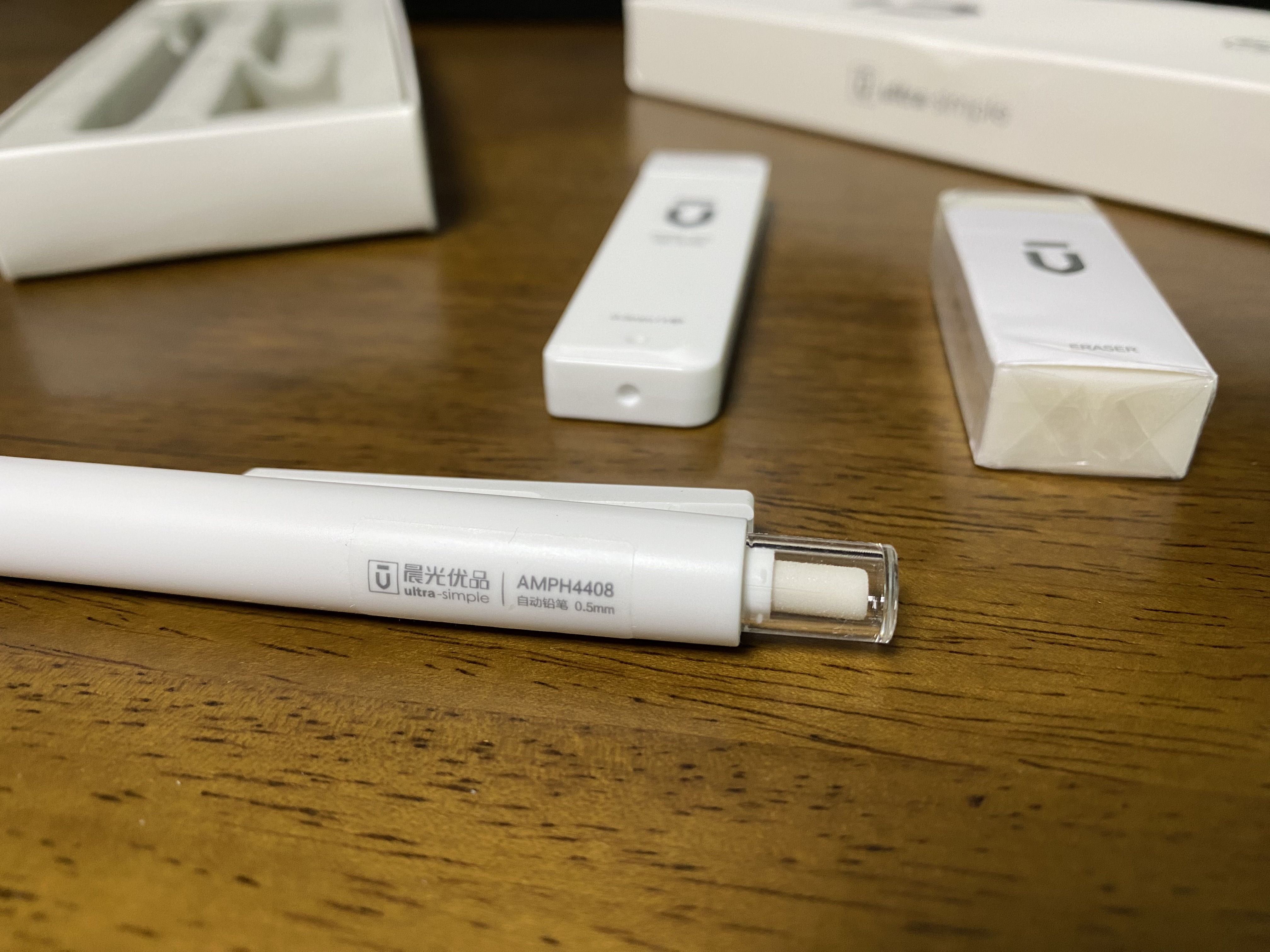 샤프, 샤프심, 지우개가 포함된 세트입니다. 박스 포장도 그렇고 깔끔한 디자인을 보여주네요.