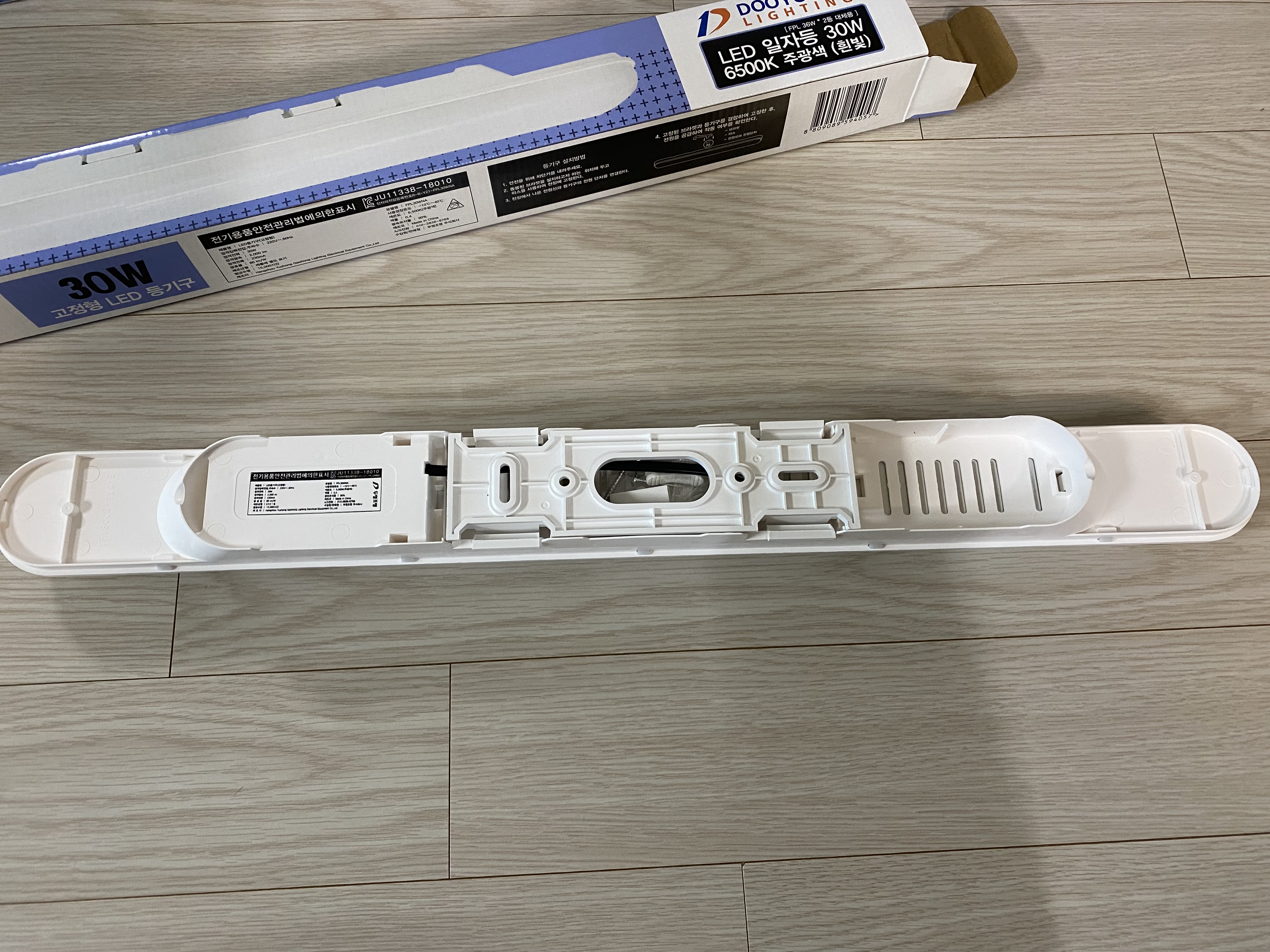 두영 LED 일자등 30W를 개봉한 모습입니다. LED등 디자인은 다 비슷비슷합니다.