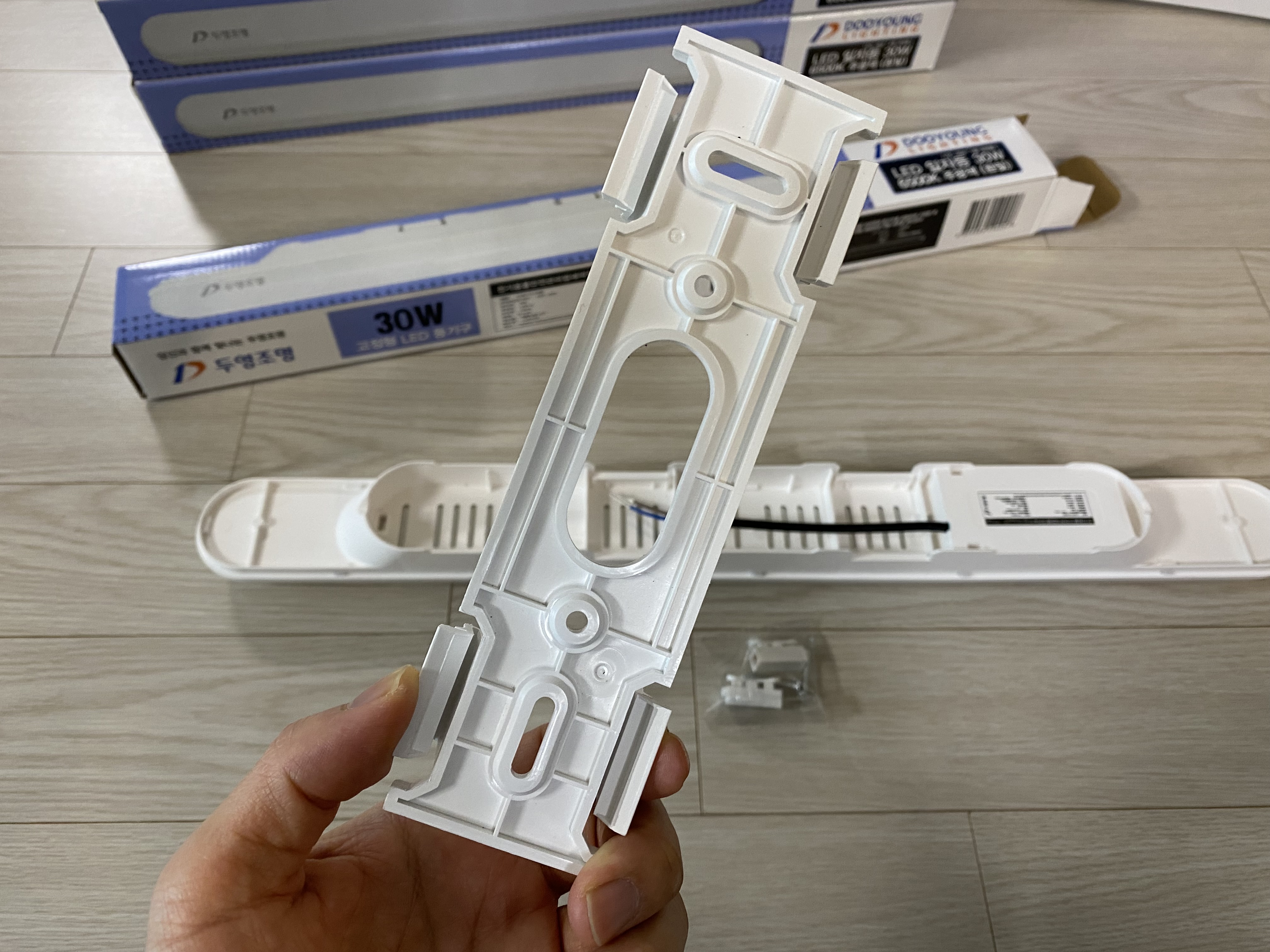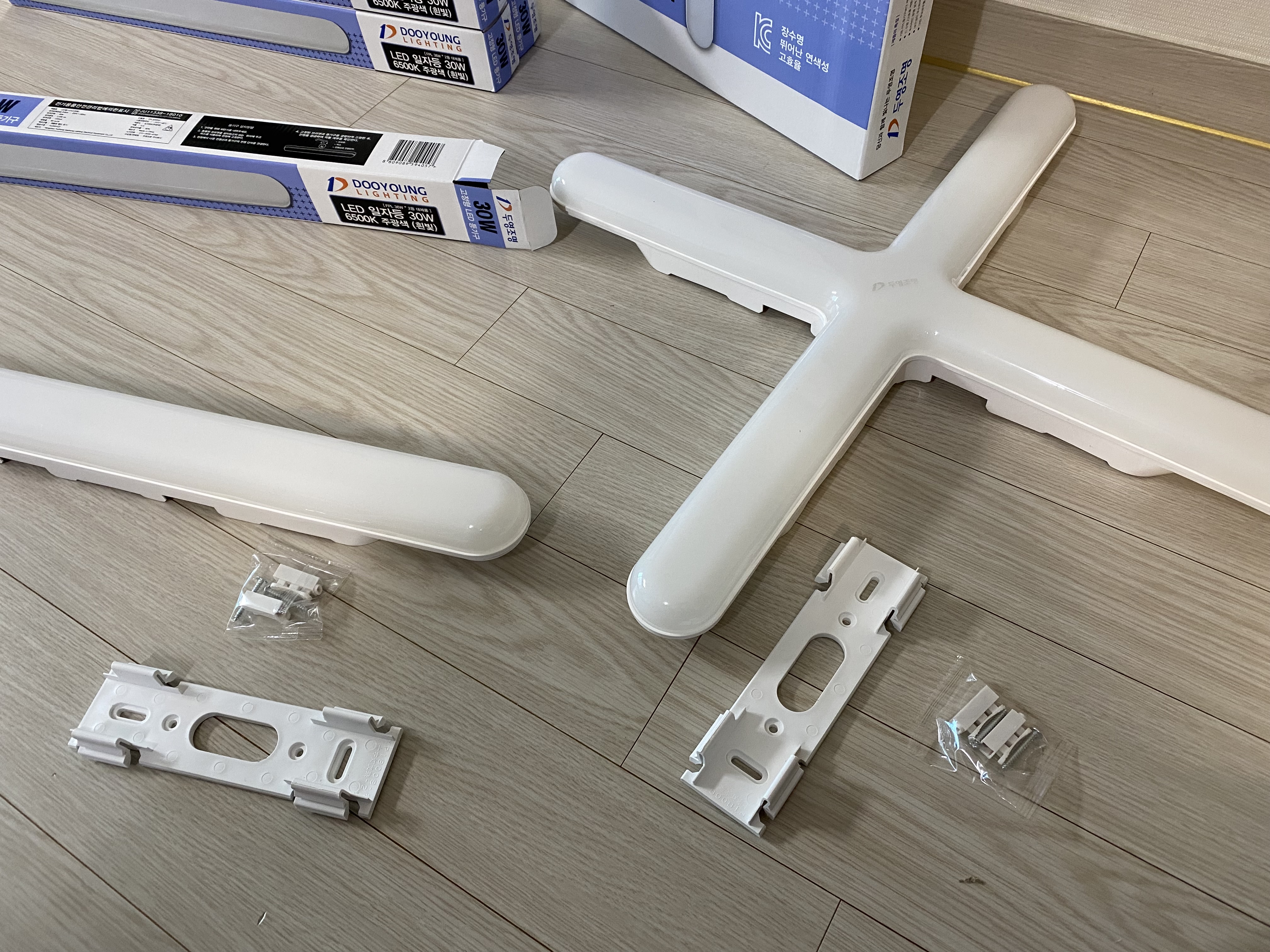 두영 LED 일자등 30W, 두영 LED 십자등 55W. 1년 정도 설치해서 사용 중인데 밝기도 적당하고 고장 없이 잘 사용하고 있습니다. 대기업 제품이 아니라서 망설일 필요는 없을 것 같네요. 기존 오래된 형광등을 교체하는 용도로 괜찮은 것 같습니다. 혹시나 나중에 고장 날 것을 생각해서 1~2개 정도 더 구매할 것은 추천합니다. 배송비 아깝잖아요.