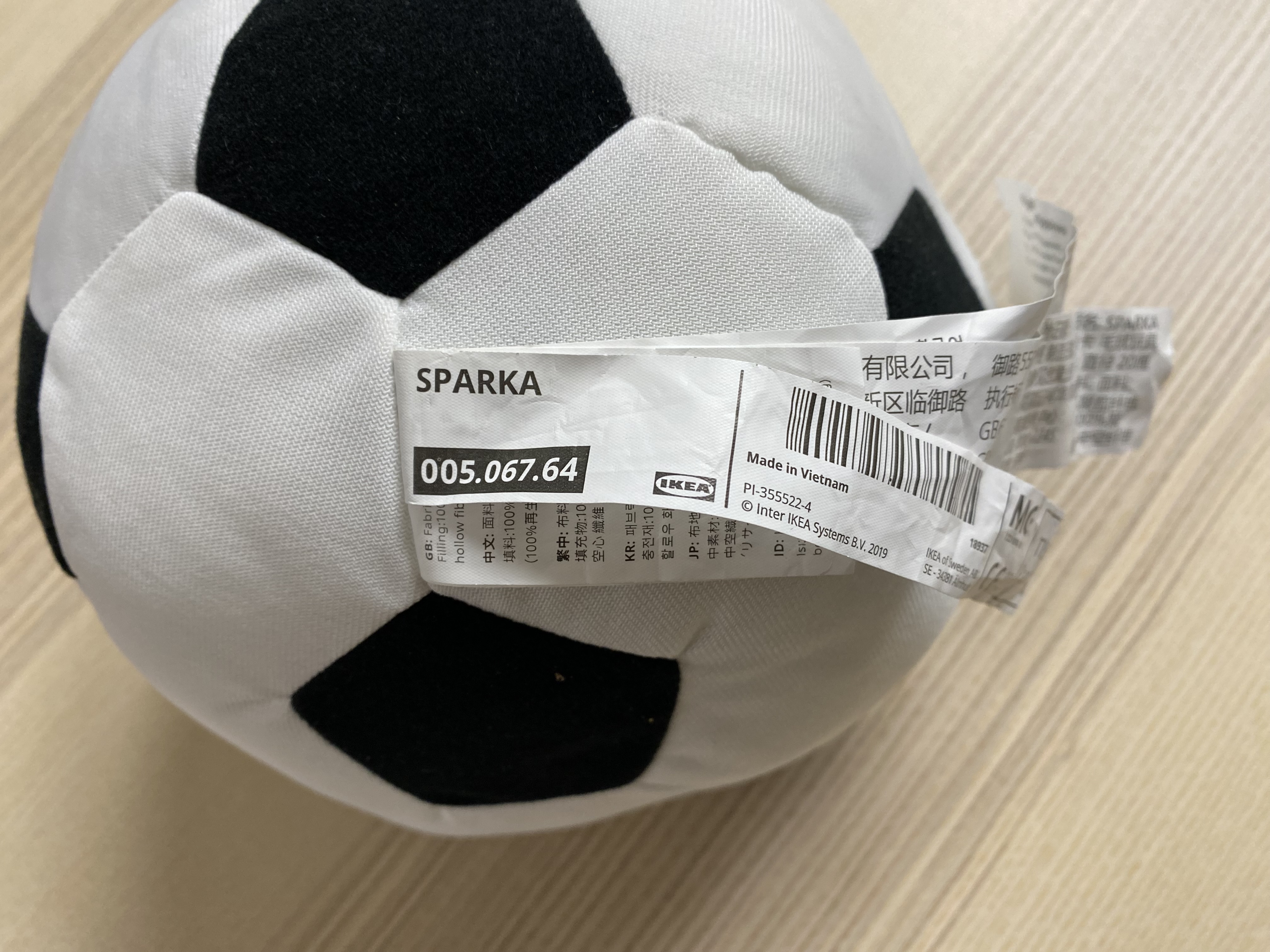 정확하게 IKEA SPARKA 005.067.64 제품. 이케아에서 아이들 장난감을 사면 이런 상표가 엄청 크게 부착되어 있는 경우가 있는데 사용할 때는 그냥 가위로 자르고 쓰면 됩니다.