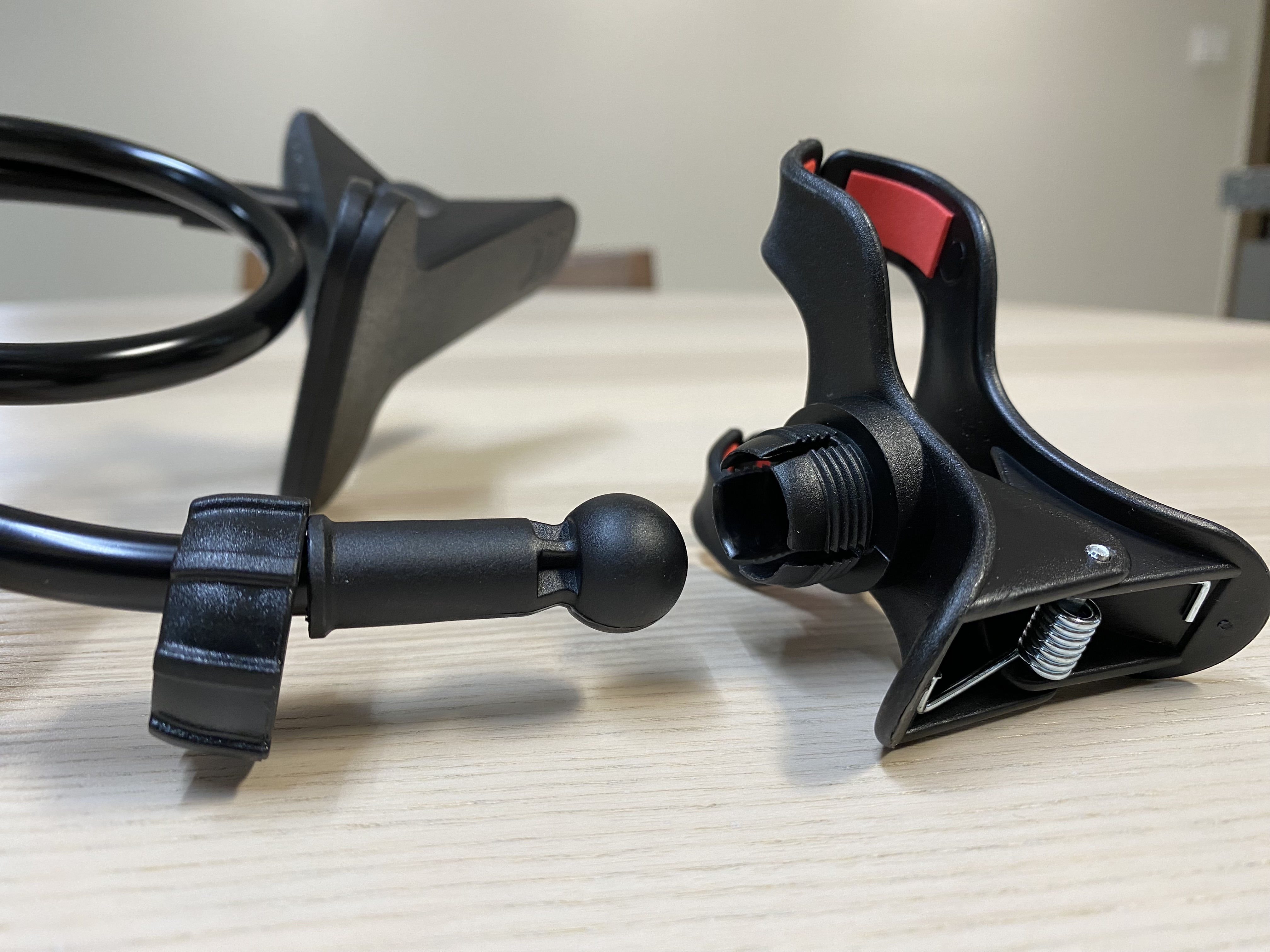 스마트폰을 고정시키는 집게의 모습입니다. 여기에 있는 빨간 부분도 고무가 아니라 스펀지같네요. 근데 이건 좀 참을만합니다.