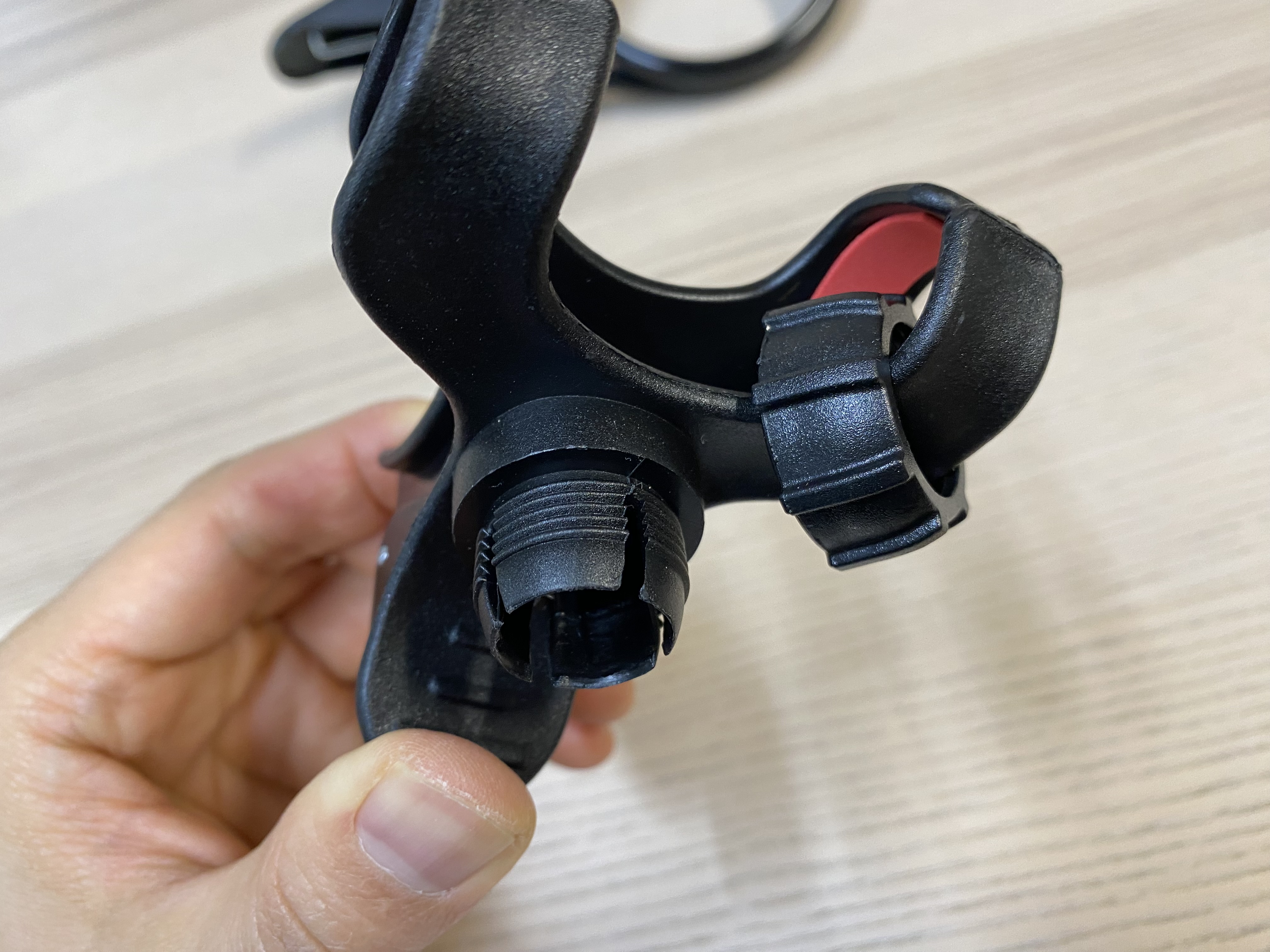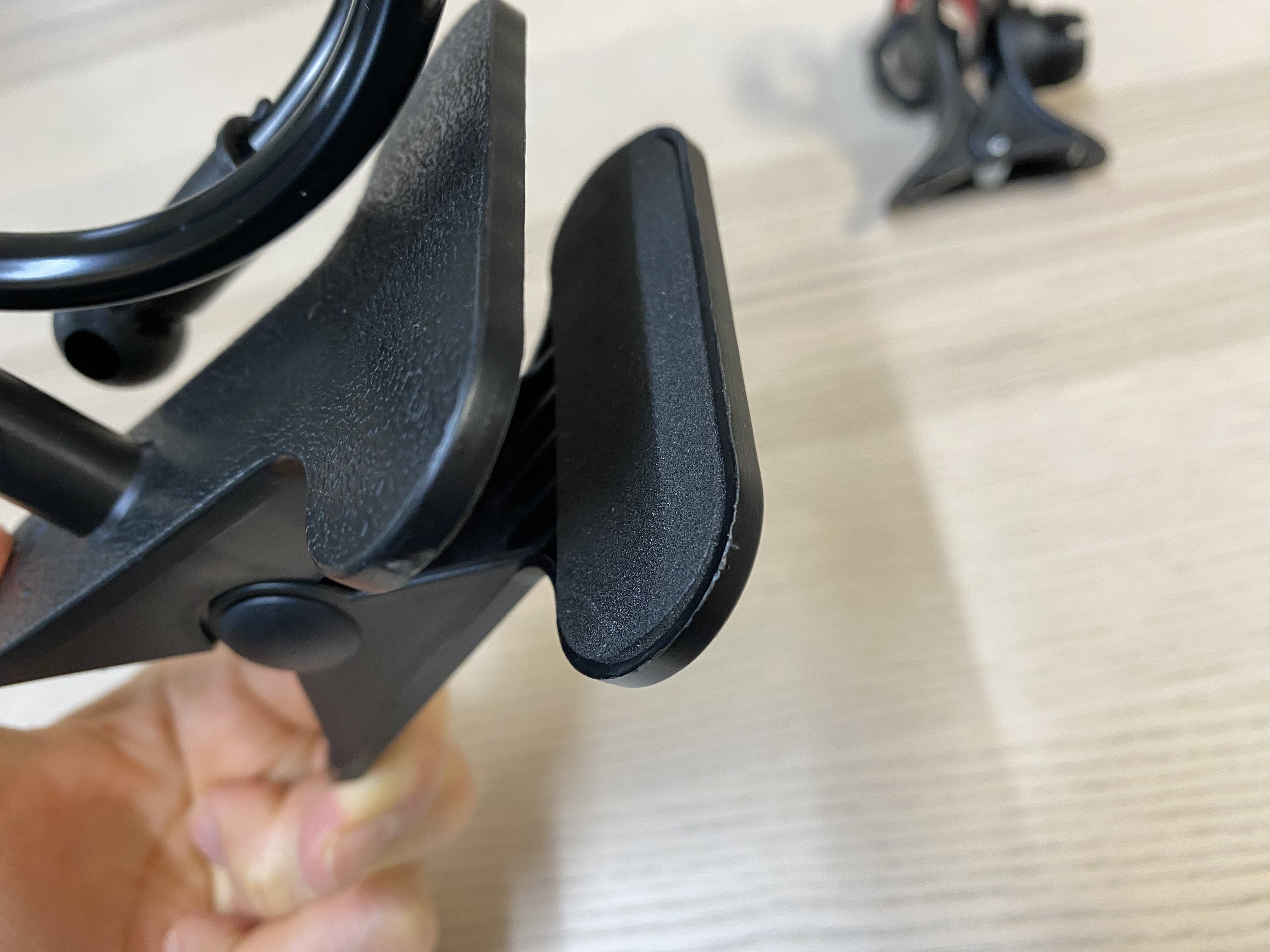 스마트폰을 고정시키는 집게의 모습입니다. 여기에 있는 빨간 부분도 고무가 아니라 스펀지같네요. 근데 이건 좀 참을만합니다.