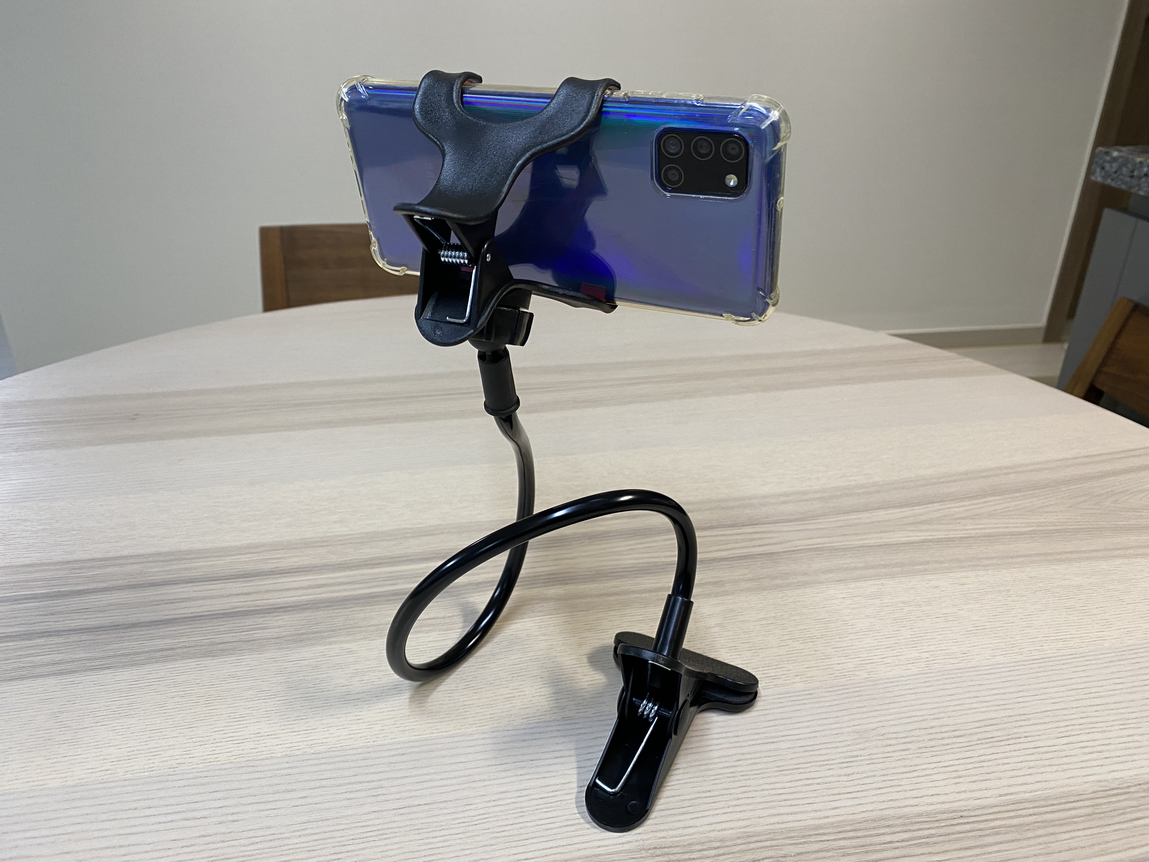 2000원짜리 알리익스프레스 스마트폰 자바라 거치대. 보통 알리에서 이런 제품을 사면 가성비가 좋은 편인데 이 제품은 마감처리도 별로고 저렴한 플라스틱에서 나는 매캐한 냄새도 심한 제품입니다. 가격 말고는 장점이 없는 제품입니다. 다른 건 다 참아도 집게의 고정 능력은 극복을 못할 것 같습니다. 잘 보고 구매하세요.
