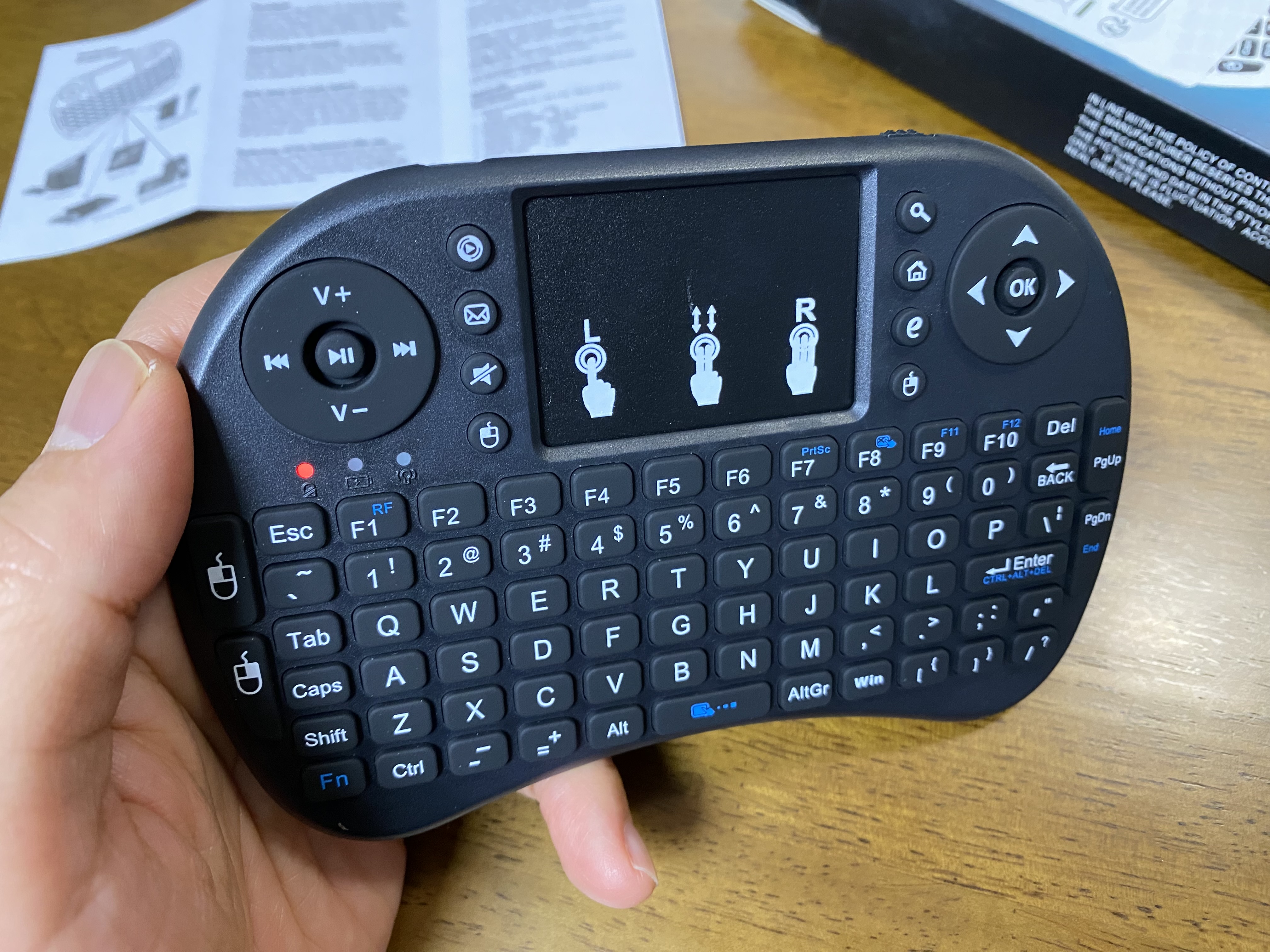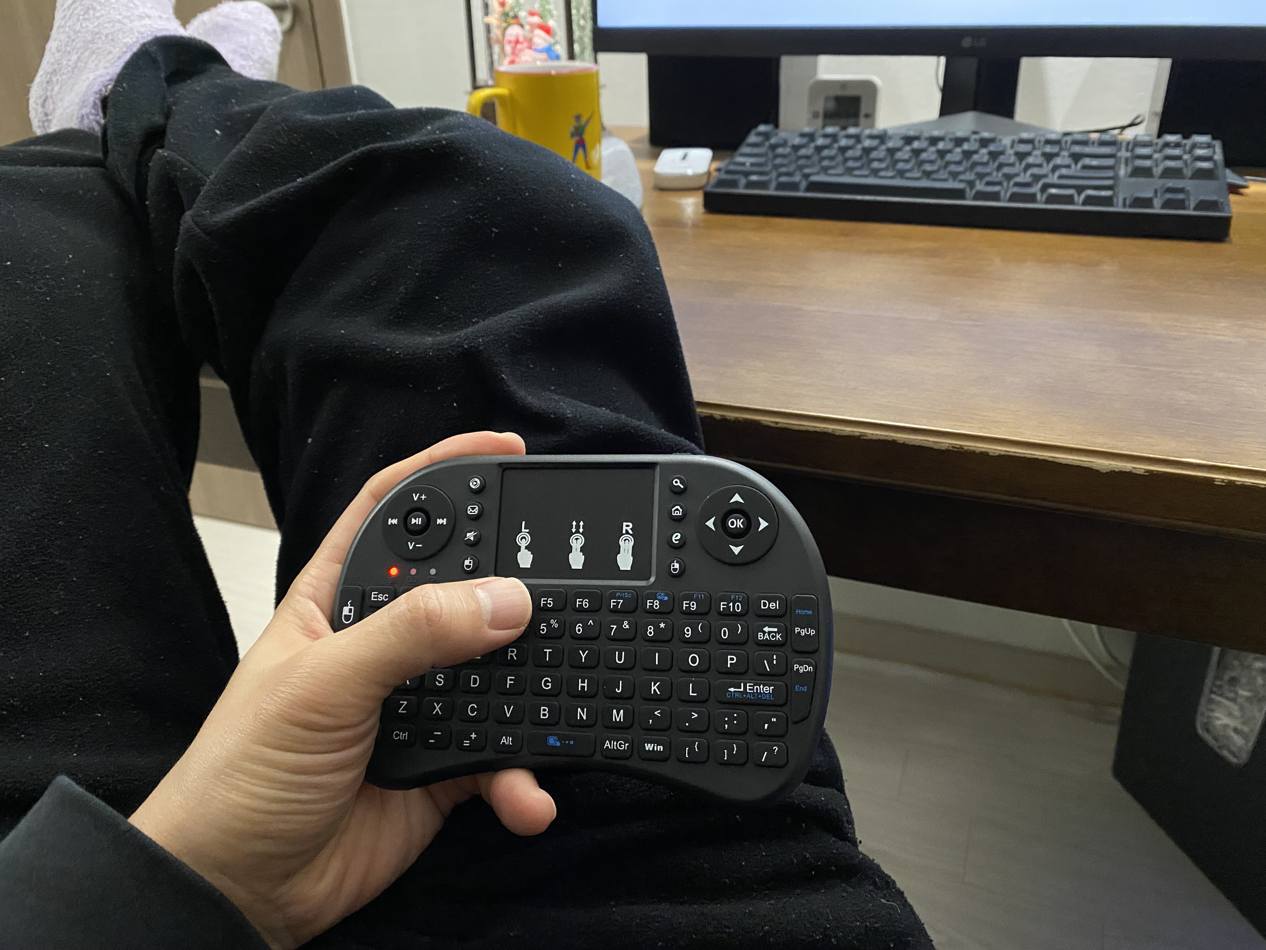 작지만 알리익스프레스 미니 무선 키보드로 PC를 완벽하게 컨트롤 할 수 있습니다. 컴퓨터 마우스, 키보드 기능을 다 할 수 있지만 아주 쾌적한 것은 아닙니다. 작으니까요. 마우스 포인트 동작이나 휠도 가능합니다. 알리에서 'I8 미니 무선 키보드 2.4G 에어 마우스 원격 터치패드, 안드로이드 TV 박스, PC 스마트 TV용'이라고 팔고 있는 제품입니다.
