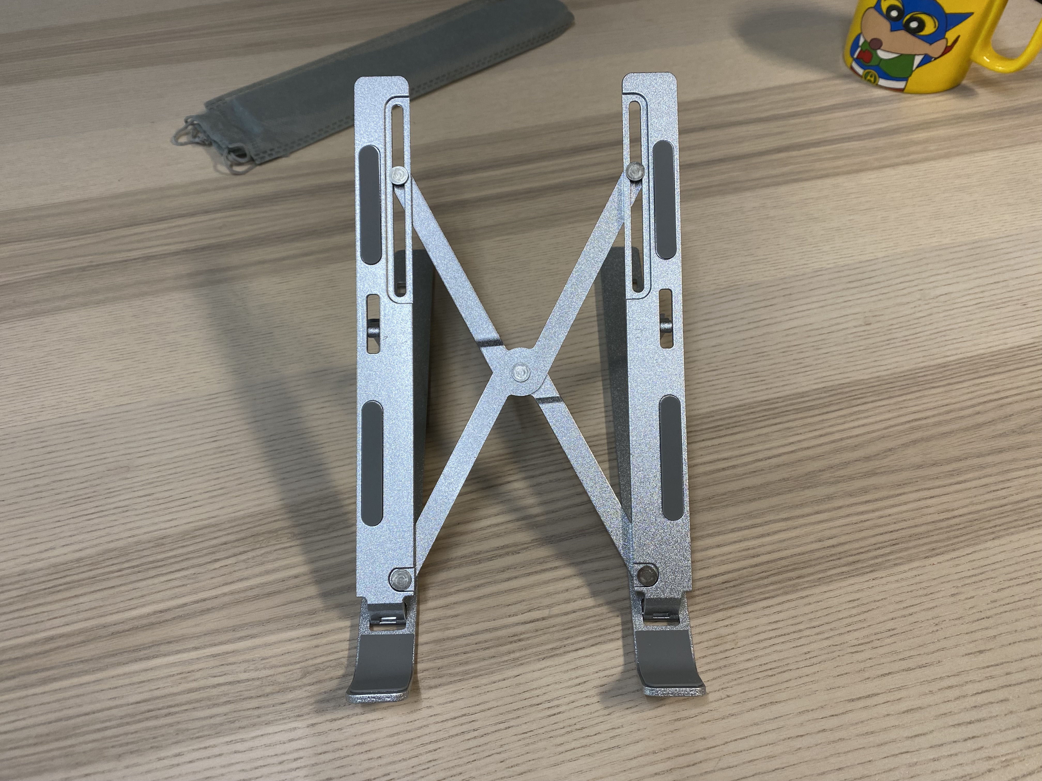 알리 휴대용 알루미늄 노트북 스탠드의 모습입니다. 휴대용이라 접었다 폈다 할 수 있습니다. 아무리 휴대용이라고는 하지만 금속으로 된 제품이라 약간의 무게는 있습니다. 다만 금속치고는 가볍다 생각합니다.
