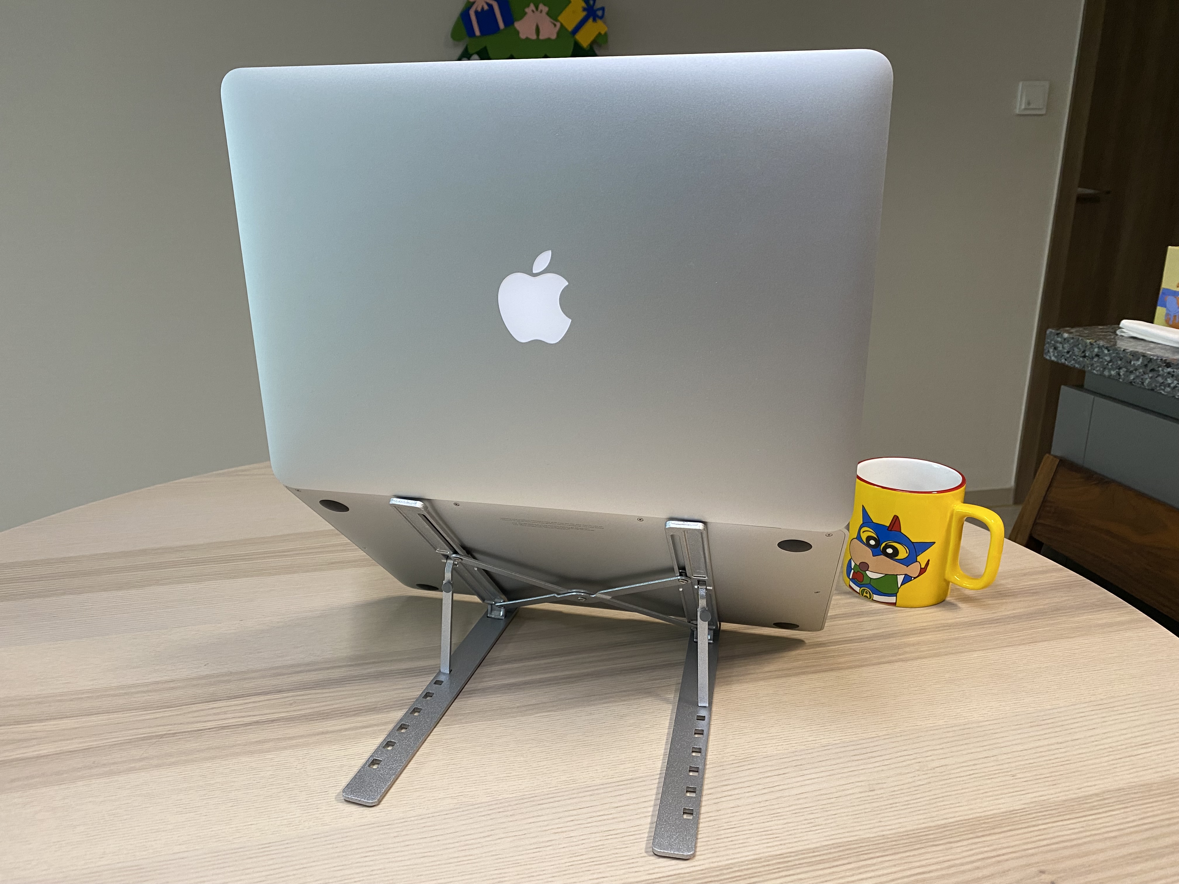 맥북에서 13인치를 알리 휴대용 노트북 스탠드에 거치한 모습입니다. 괜찮네요.