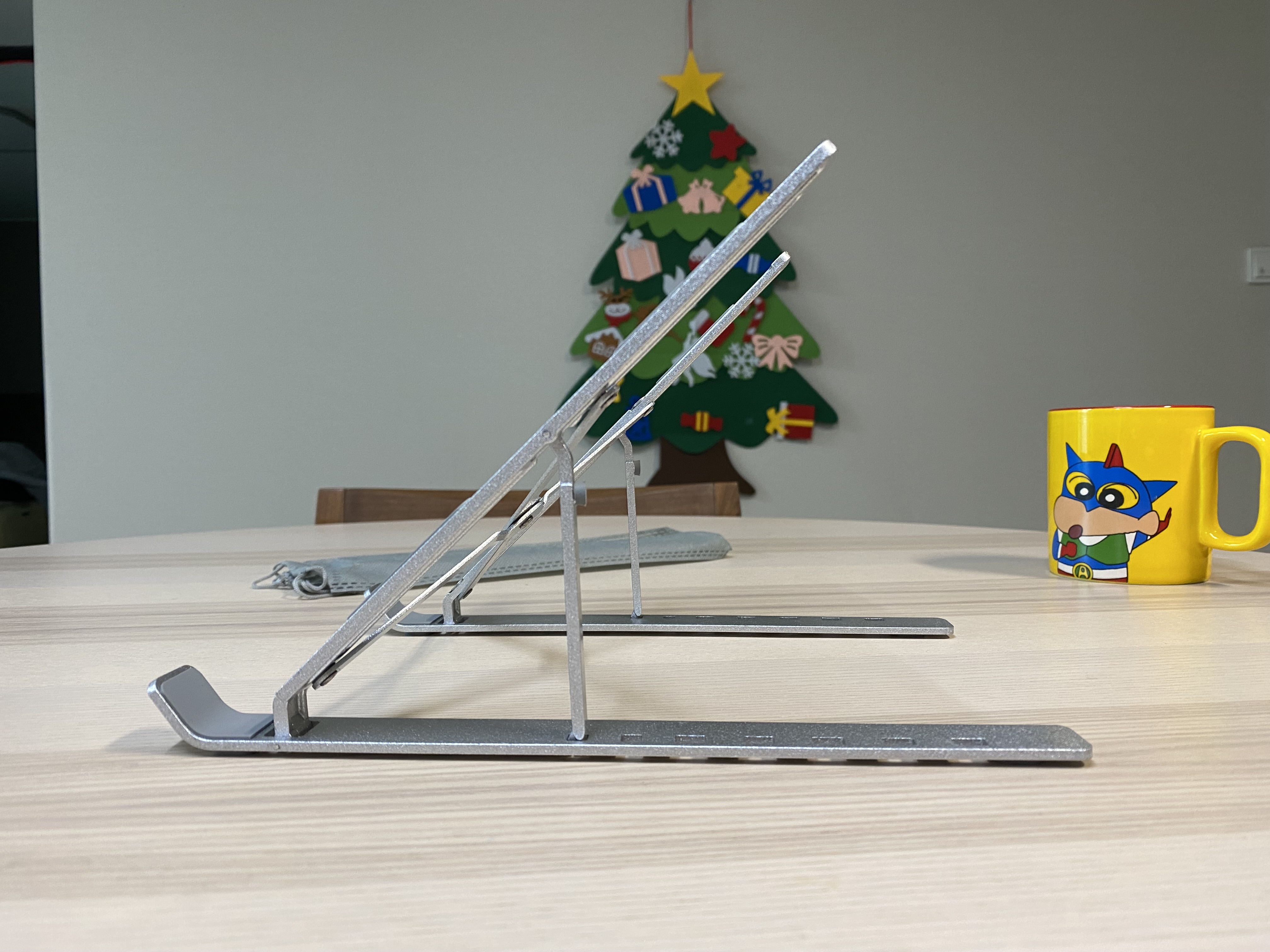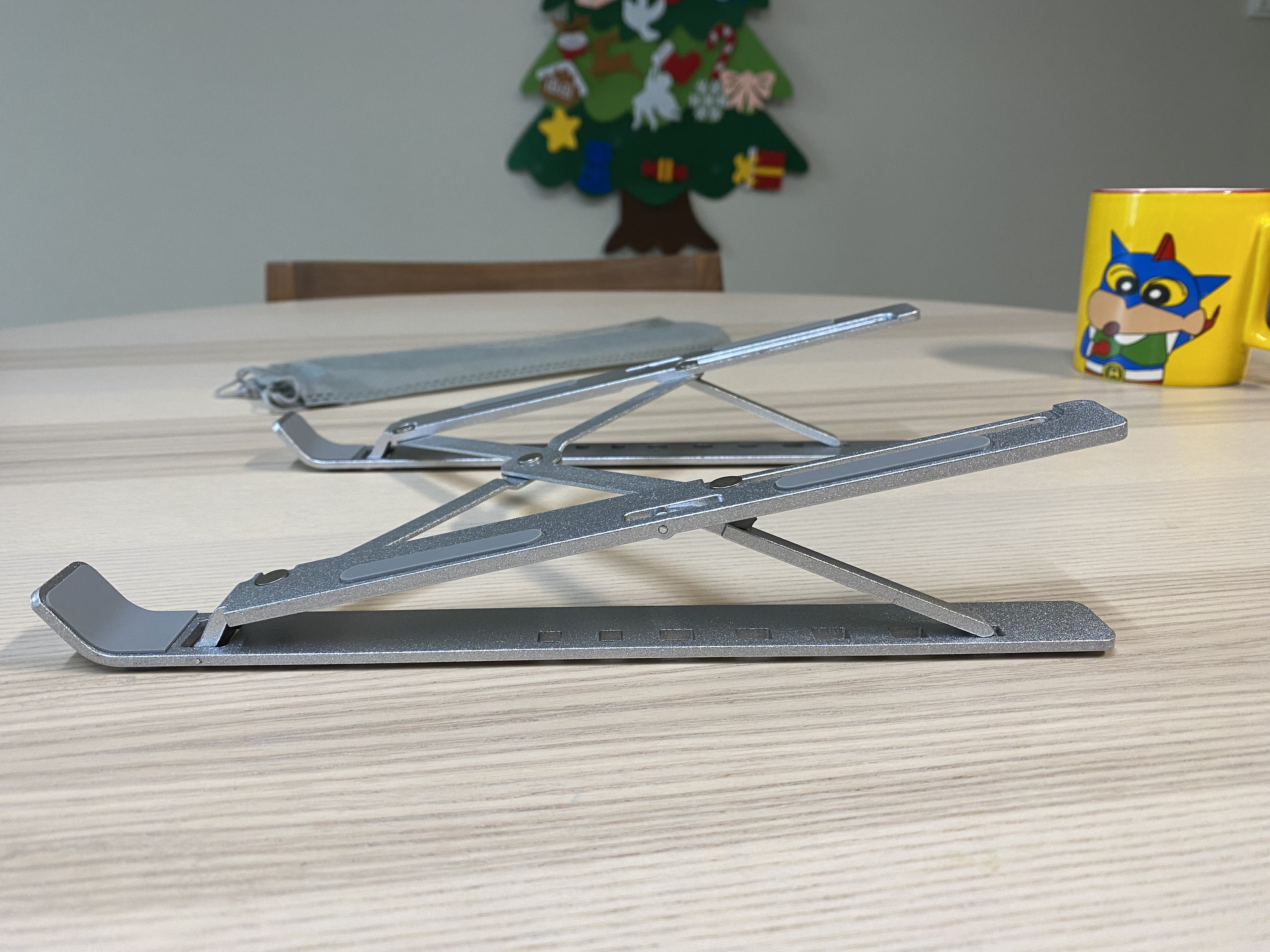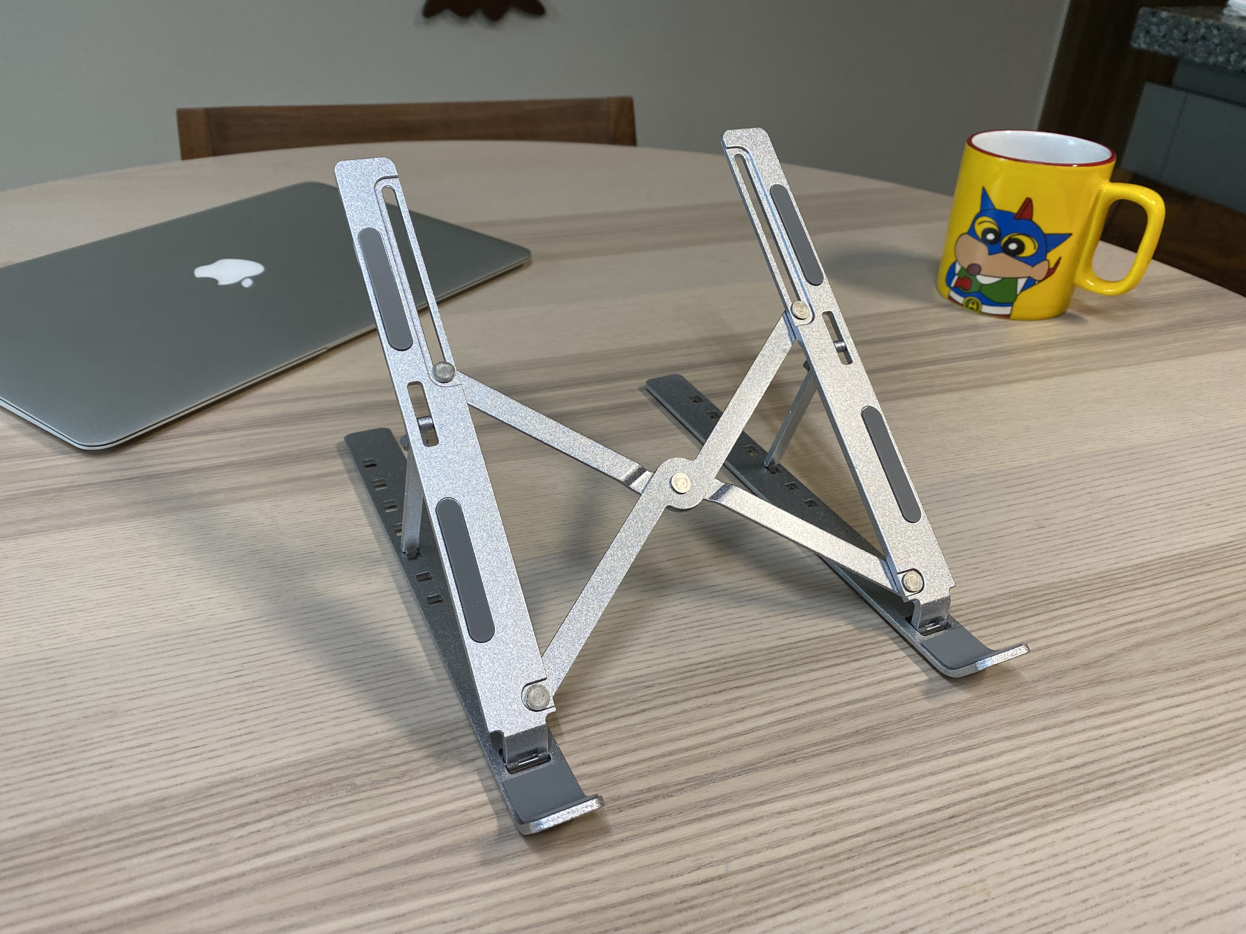 알리익스프레스 휴대용 알루미늄 노트북 스탠드. 3000원에 이정도 퀄리티의 알리미늄 거치대를 살 수 있다니 신기하네요. 마감처리나 약간의 뒤틀림이 있지만 사용하는데 큰 문제가 되지 않는 수준입니다. 노트북을 장시간 사용하거나 거북목이 걱정되는 분에게 추천합니다. 구조가 단순하고 튼튼한 제품이라 장시간 오래 사용할 수 있을 것 같습니다.