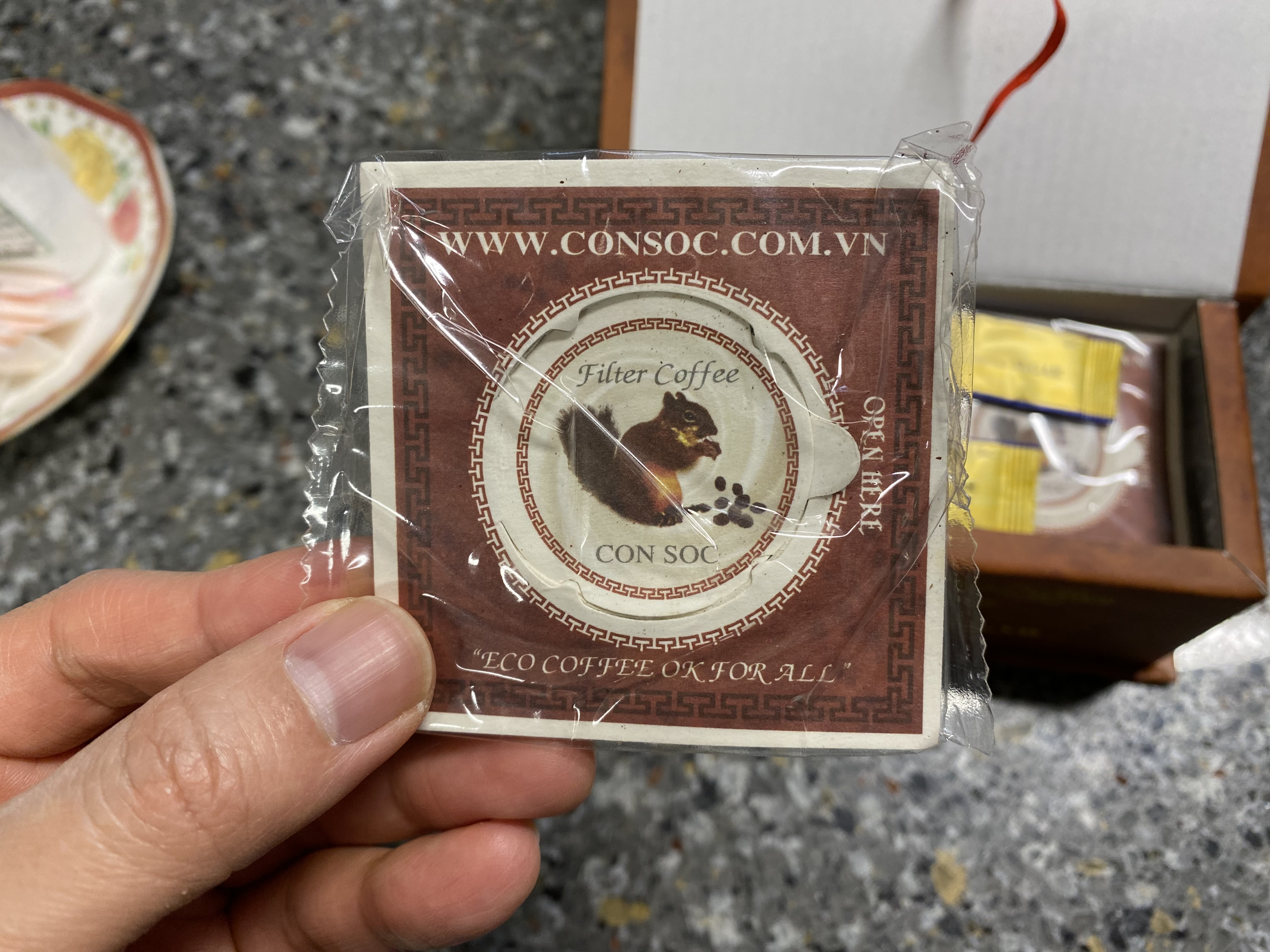 베트남 콘삭 다람쥐똥 드립 커피를 개봉한 모습입니다.