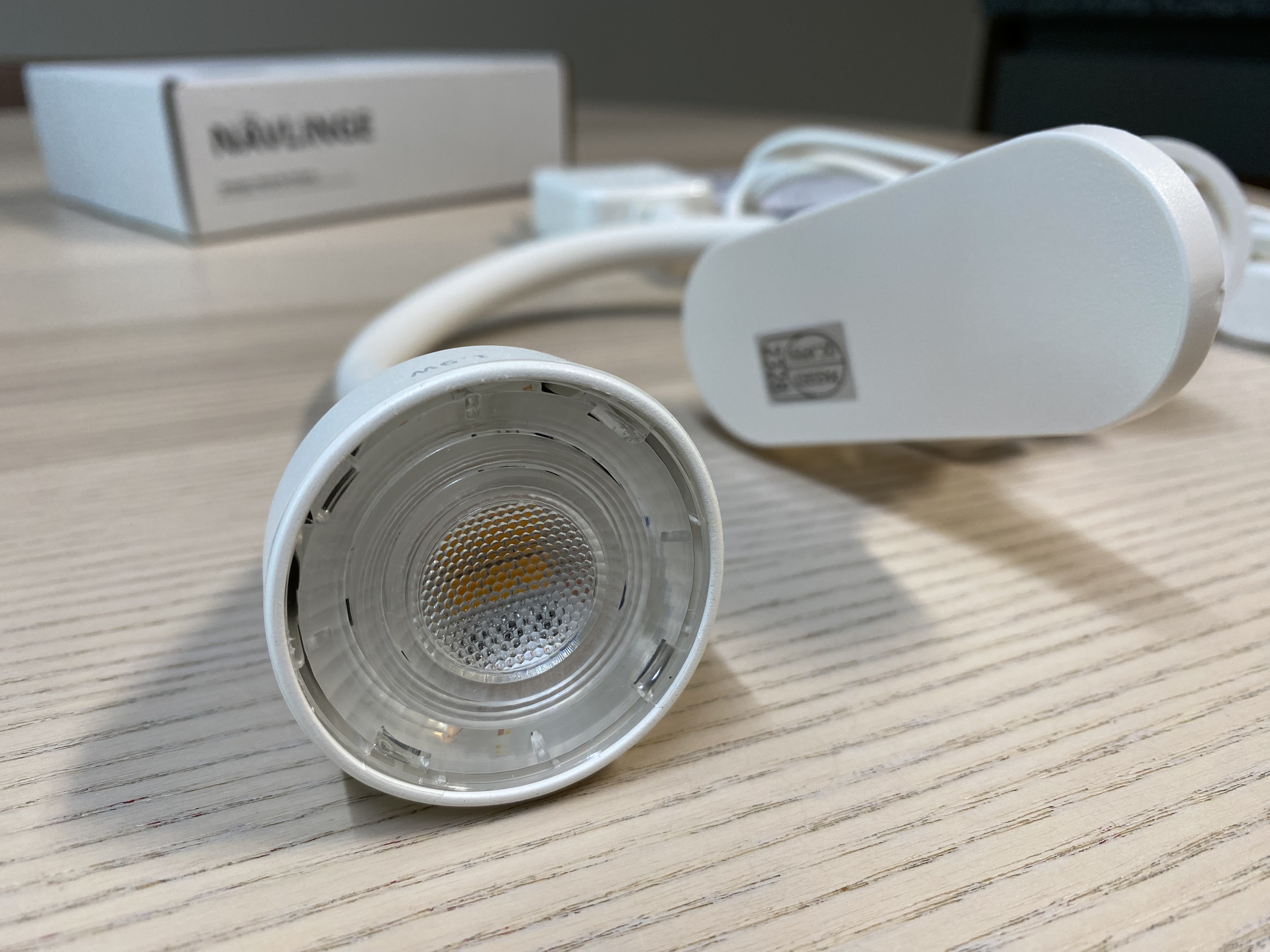 LED 조명이 작아보이지만 생각보다 밝은 빛을 냅니다. 따뜻한 백색(2700K)이며 220 루멘을 방출해서 22W 백열전구가 방출하는 빛과 비슷하다고 이케아 사이트에 적혀있네요.