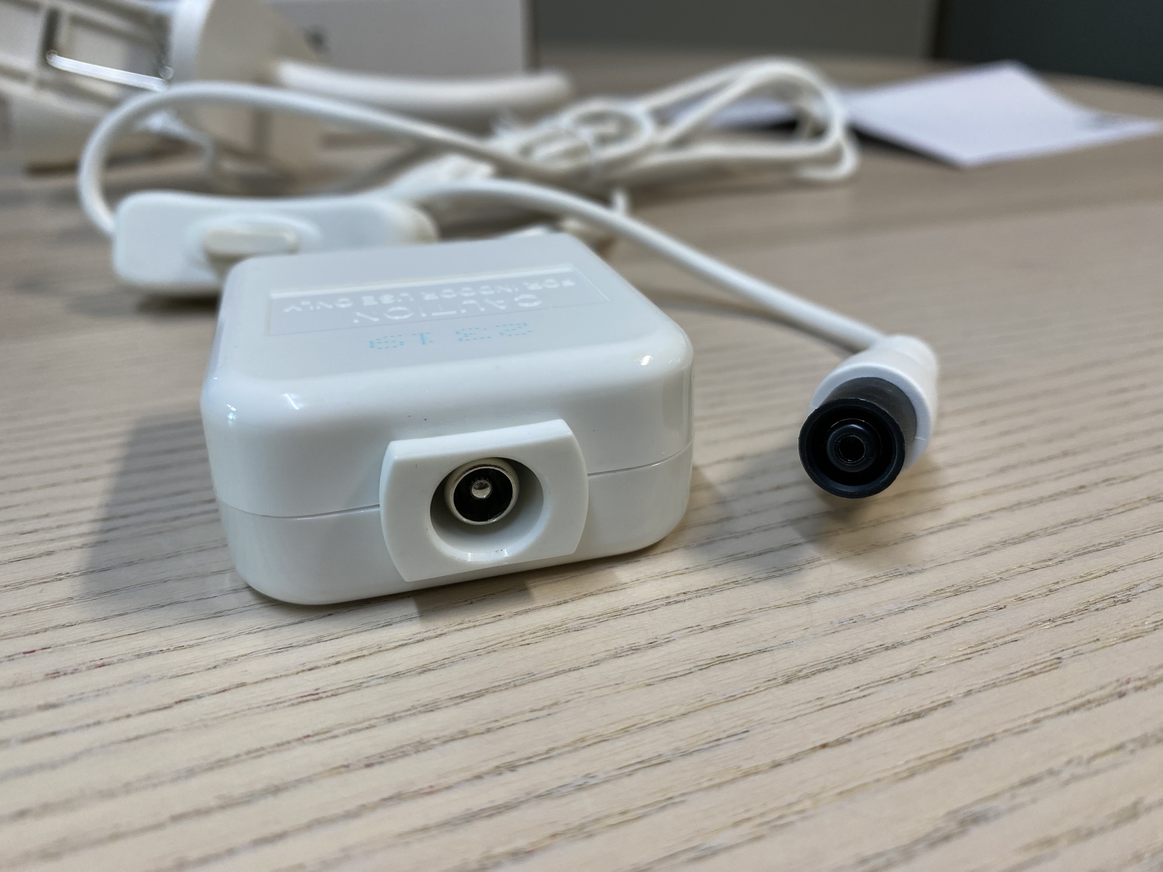 전원 연결 부분. 코드 길이는 2미터, 전기는 1.9W를 먹습니다.