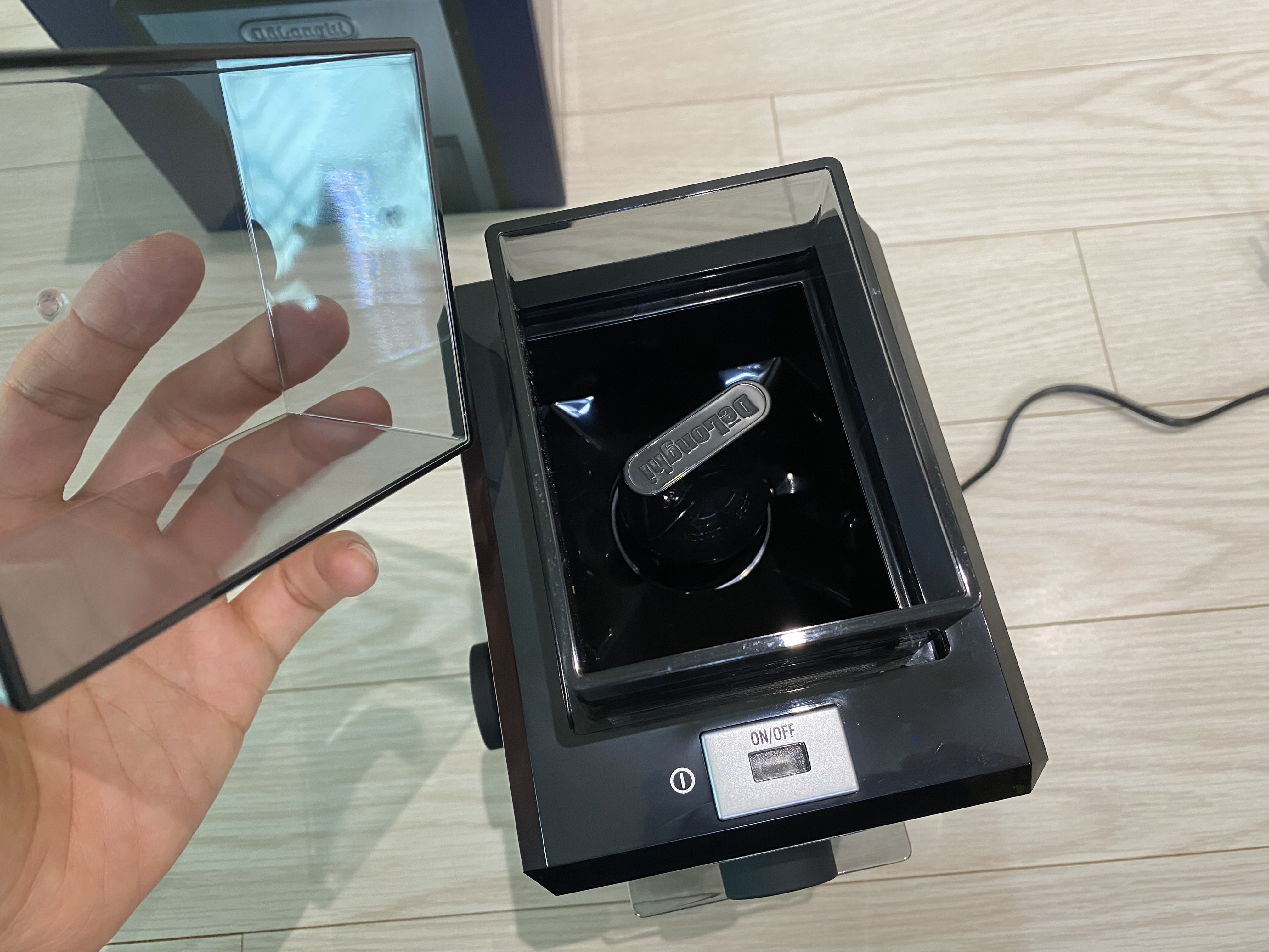 그라인더 중간에 있는 부분은 탈부착이 가능합니다. 나름 깨끗하게 청소할 수 있는 구조네요. 참고로 이 드롱기 그라인더는 맷돌방식 버 그라인딩 시스템을 사용합니다.