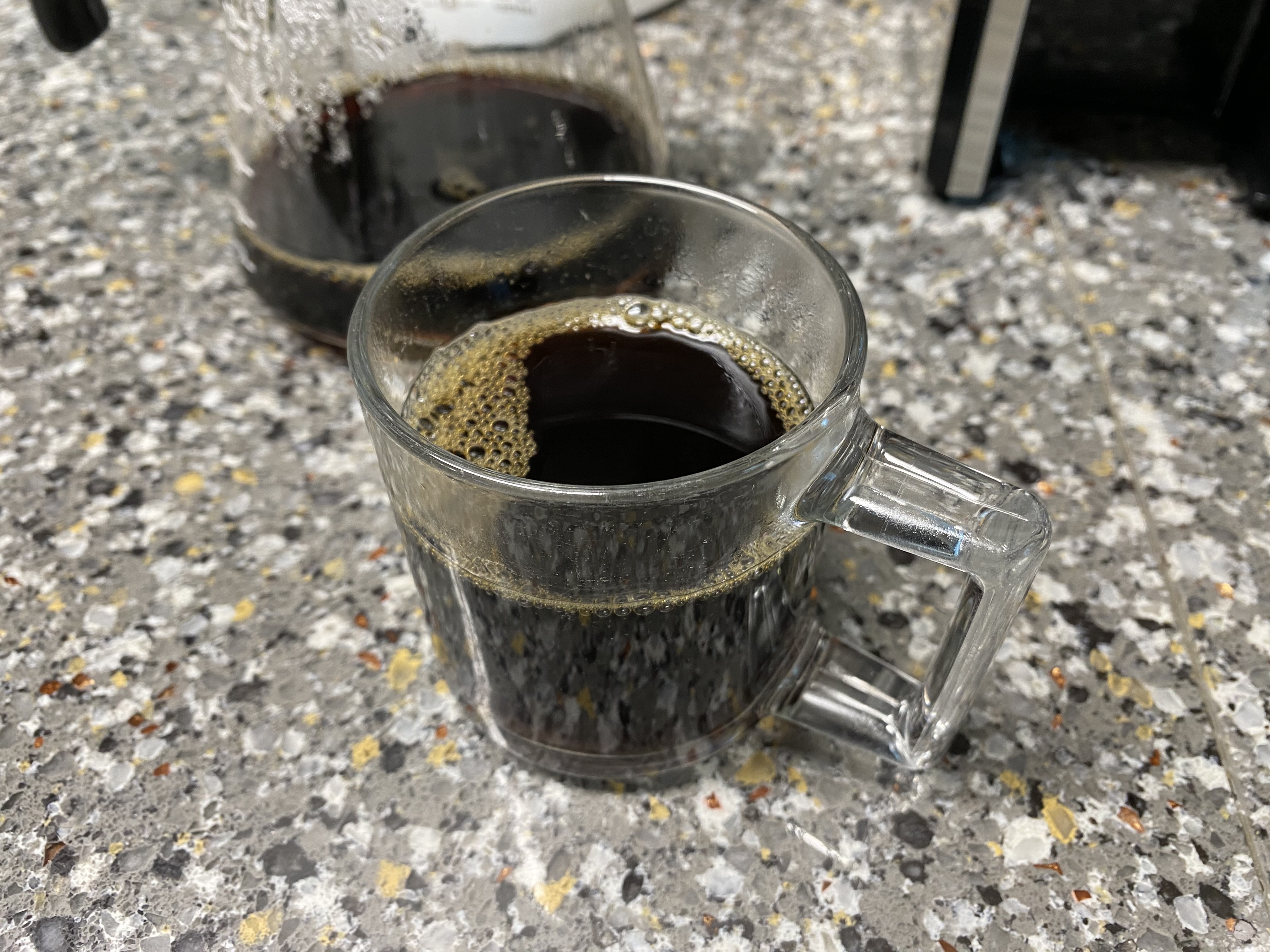 드립이 완료된 커피. 바리스타가 아니라서 커피를 잘 모르지만 그래도 자주 내려먹으본 경험상 드립 횟수는 3회 정도가 적당하다고 생각합니다. 커피가 아깝다고 계속 드립 해서 양을 늘리지 마세요. 나중에는 쓴맛, 카페인만 엄청 나오기 때문에 커피맛이 별로입니다. 차라리 3회 정도 추출하고 물을 타서 양을 늘리는 게 좋습니다.