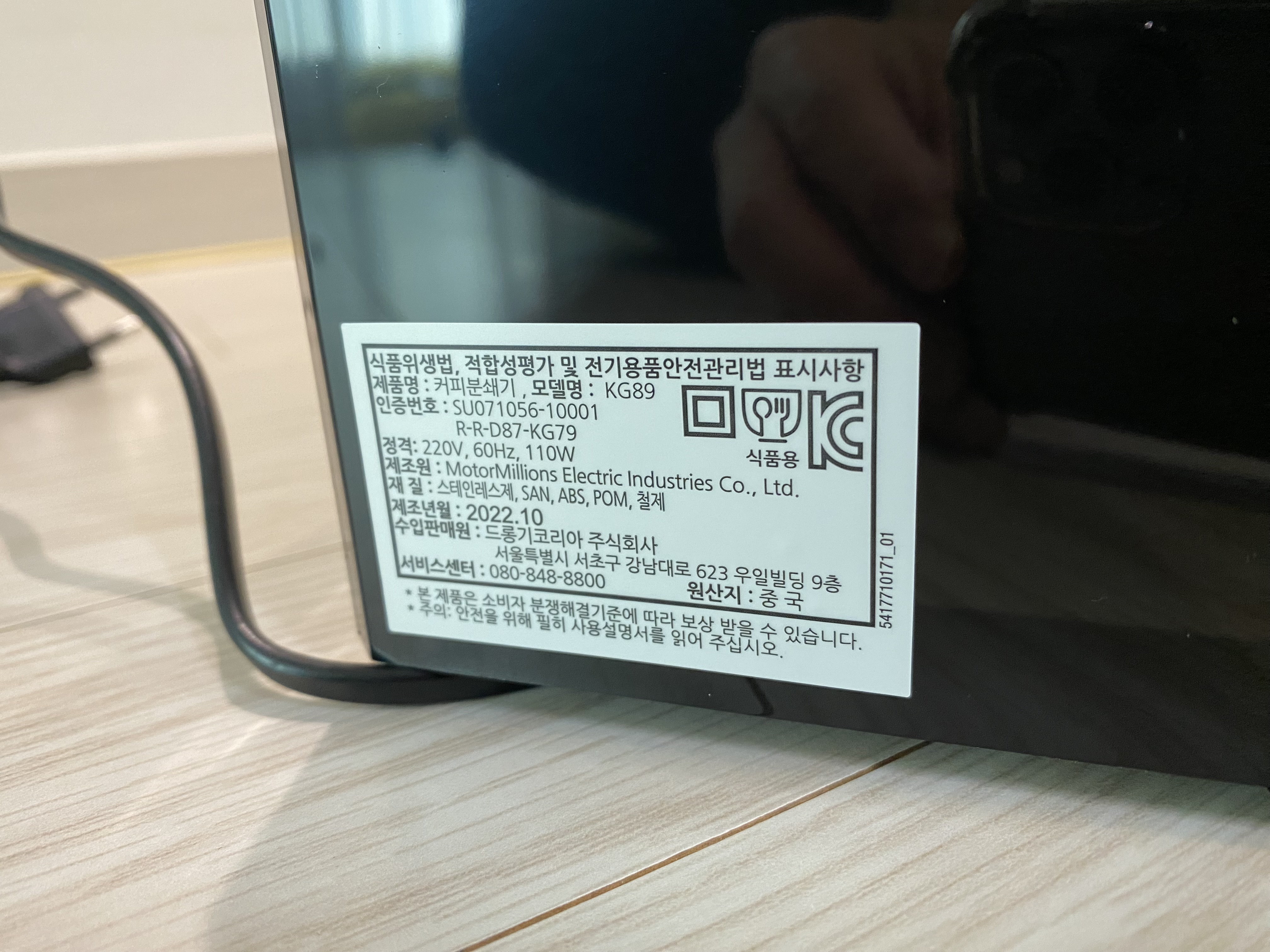 드롱기 전동 커피 그라인더 KG89 바닥은 이렇게 생겼습니다. 전선을 돌려서 선처리를 할 수 있게 되어있습니다.