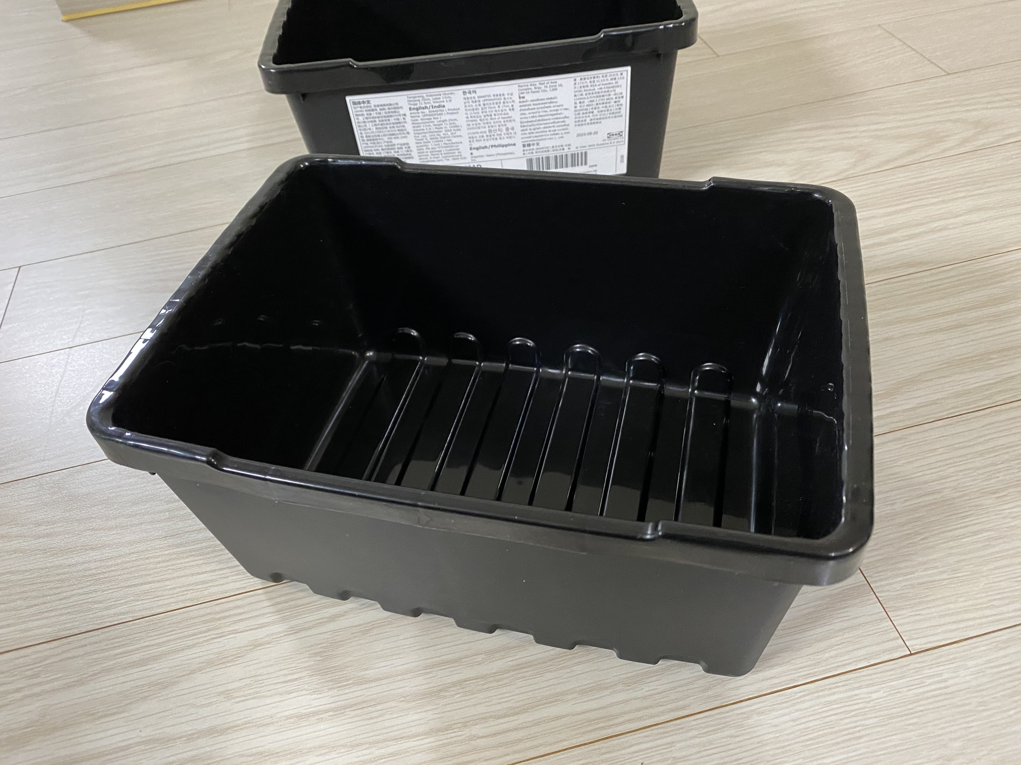 이케아 웁스노프사드 수납상자는 생각보다 작고 가볍고 얇습니다. 음식 배달을 시킬 때 오는 용기보다는 조금 크지만 비슷한 느낌의 제품입니다.