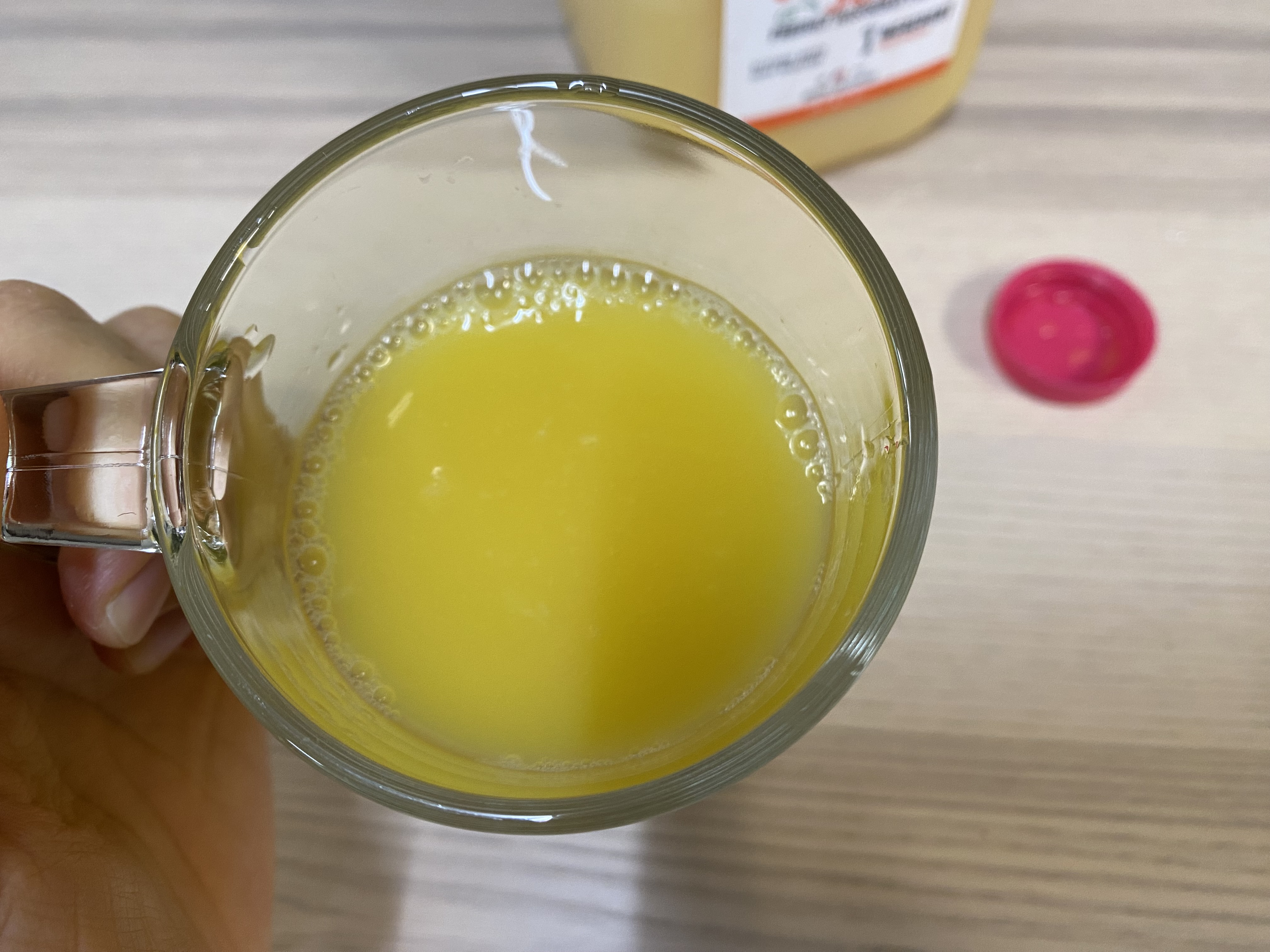 오렌지가 과육이 들어있어서 흔들어 마시는 게 좋을 것 같네요.
